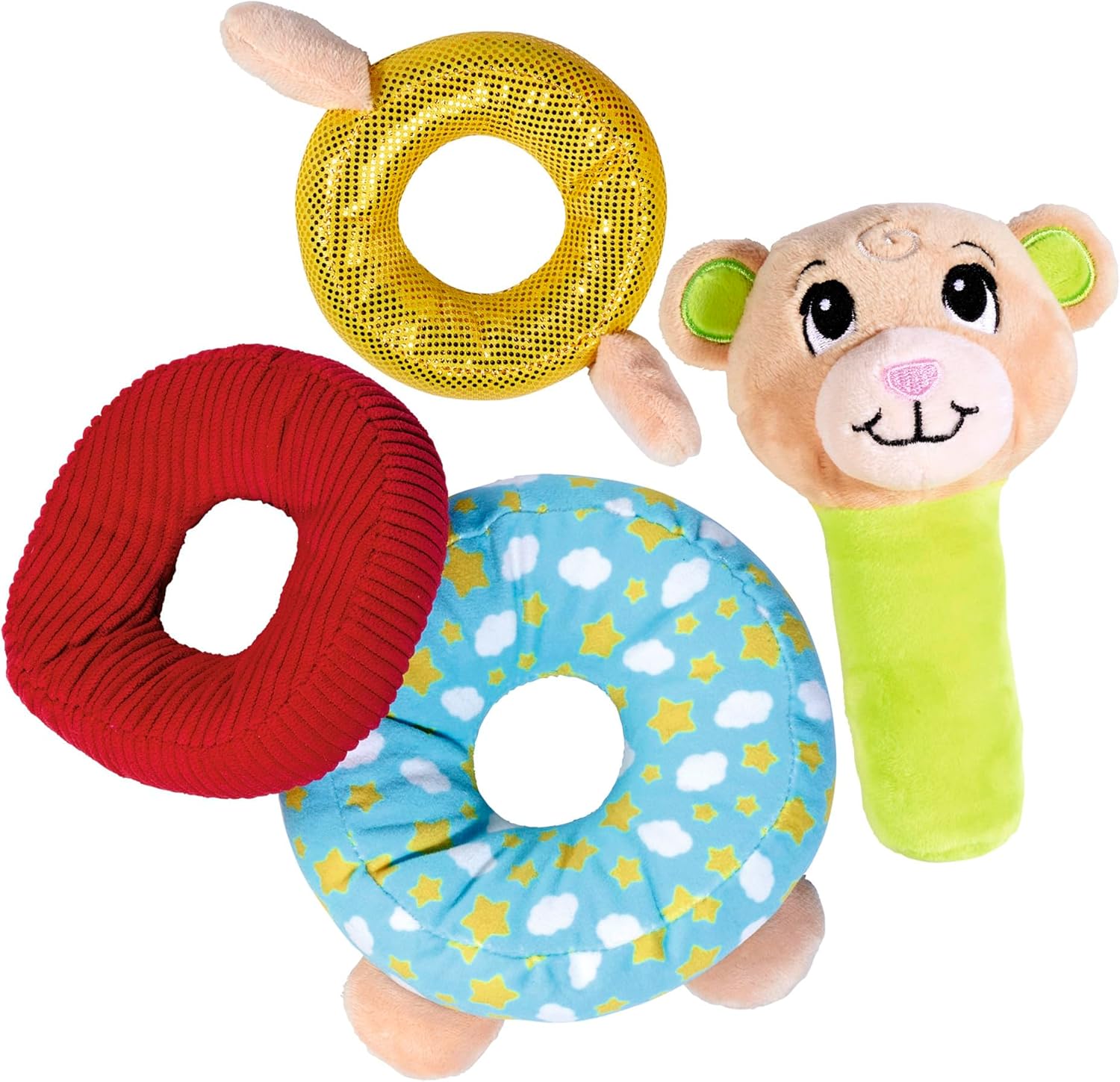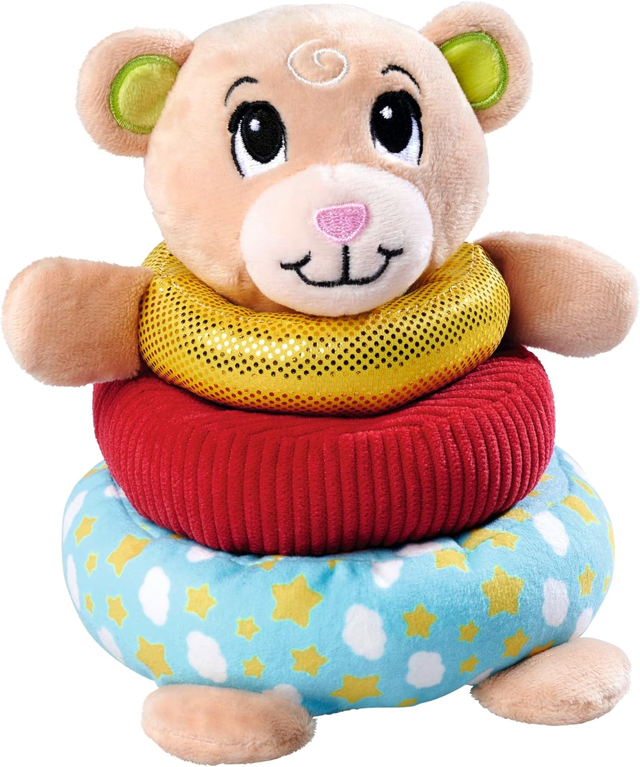 Orso impilabile: il grazioso anello impilabile Teddy è composto da tre morbidi anelli di peluche e un bastone da afferrare. Gli anelli possono essere impilati dai più piccoli e inseriti sul campanello