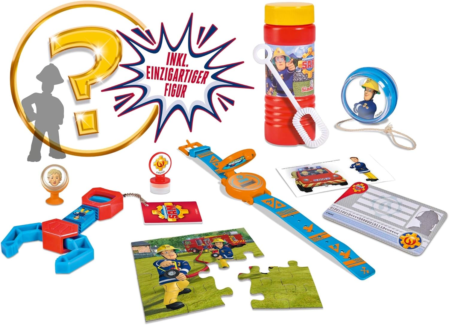 Sam - Scatola a sorpresa – La confezione contiene 10 diverse sorprese per bambini, tutte dotate di fantastici motivi Sam il pompiere Contenuto della confezione: nella scatola si trova un orologio digitale con funzione, bolle di sapone, uno yoyo, un timbro, un puzzle, un martello, un adesivo, una carta d'identità e un personaggio a sorpresa Personaggio speciale a sorpresa: tra i 10 articoli si trova un personaggio a sorpresa unico, disponibile solo in questa scatola Perfetto come regalo: la scatola a sorpresa è adatta per bambini a partire dai 3 anni ed è il regalo perfetto per tutti i fan del pompiere Sam Simba - Grande divertimento con gli elefanti! Al centro dello sviluppo del prodotto c'è l'entusiasmo dei bambini. Per ragazzi e ragazze, piccoli e grandi. I bambini devono divertirsi e essere incoraggiati