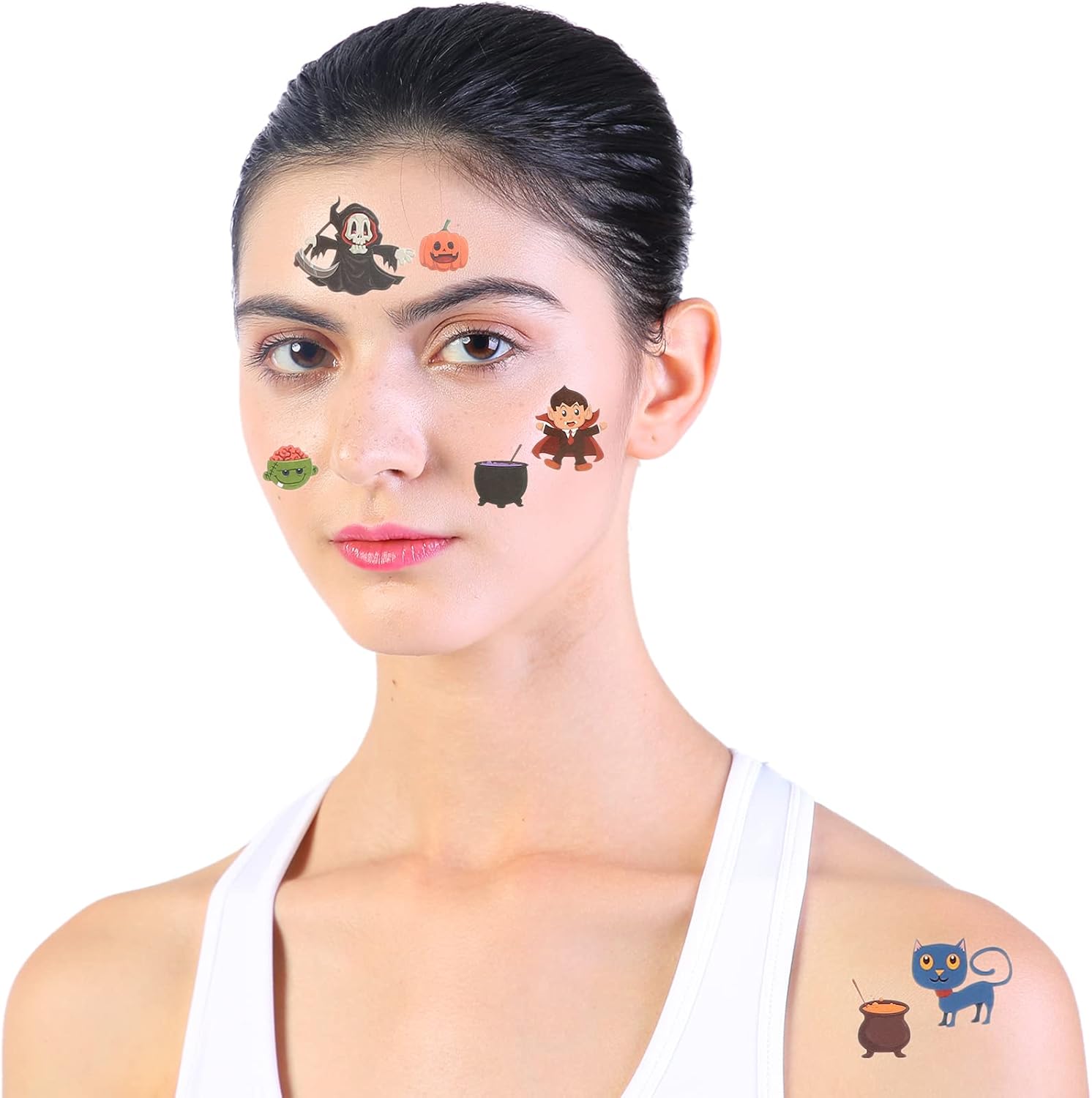 Schema squisito: i modelli di cartoni animati a tema Halloween come zucche e fantasmi, nel complesso sembra carini e squisiti, attirano l'attenzione delle persone. Adatto alla festa: ti porta e tatuaggi realistici per Halloween, gioco di ruolo e altre feste di trucco di imitazione. Facile rimuovere: usa l'olio per bambini, il trucco, la pulizia dell'olio o lo sfregamento per rimuoverlo facilmente, portarti comodità. Buon materiale: realizzato in materiale, sicuro e, non può essere usato con fiducia. Persone applicabili: 10 fogli di adesivi sono disponibili per l'uso, possono essere bloccati su viso e corpo, adatti per adulti, bambini, ragazzi e ragazze.