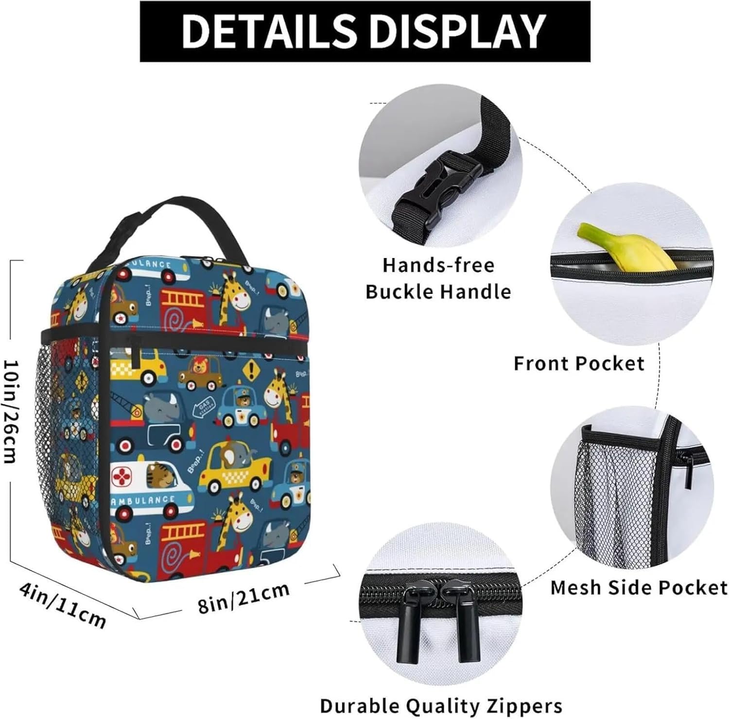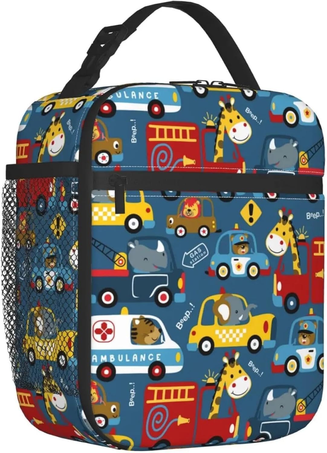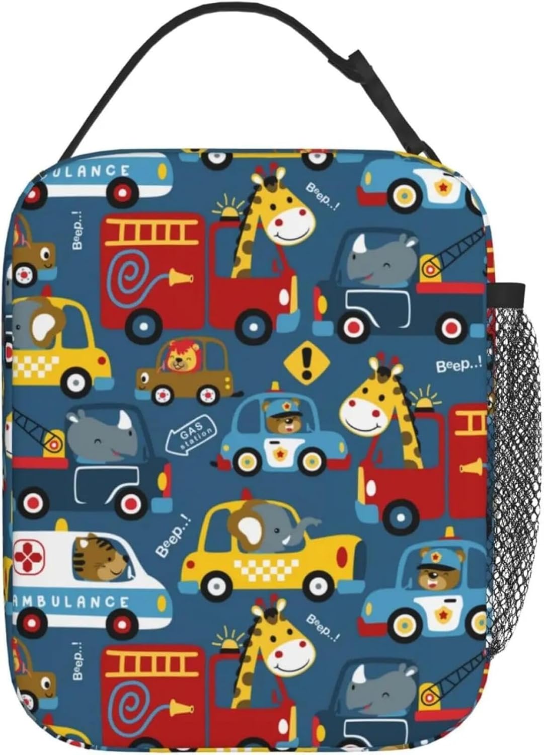 Simpatico Animale e Veicolo - Borsa per Il Pranzo isolata Stampata, Divertente Borsa Termica per i pranzi scolastici dei Bambini e l'asilo Nido
