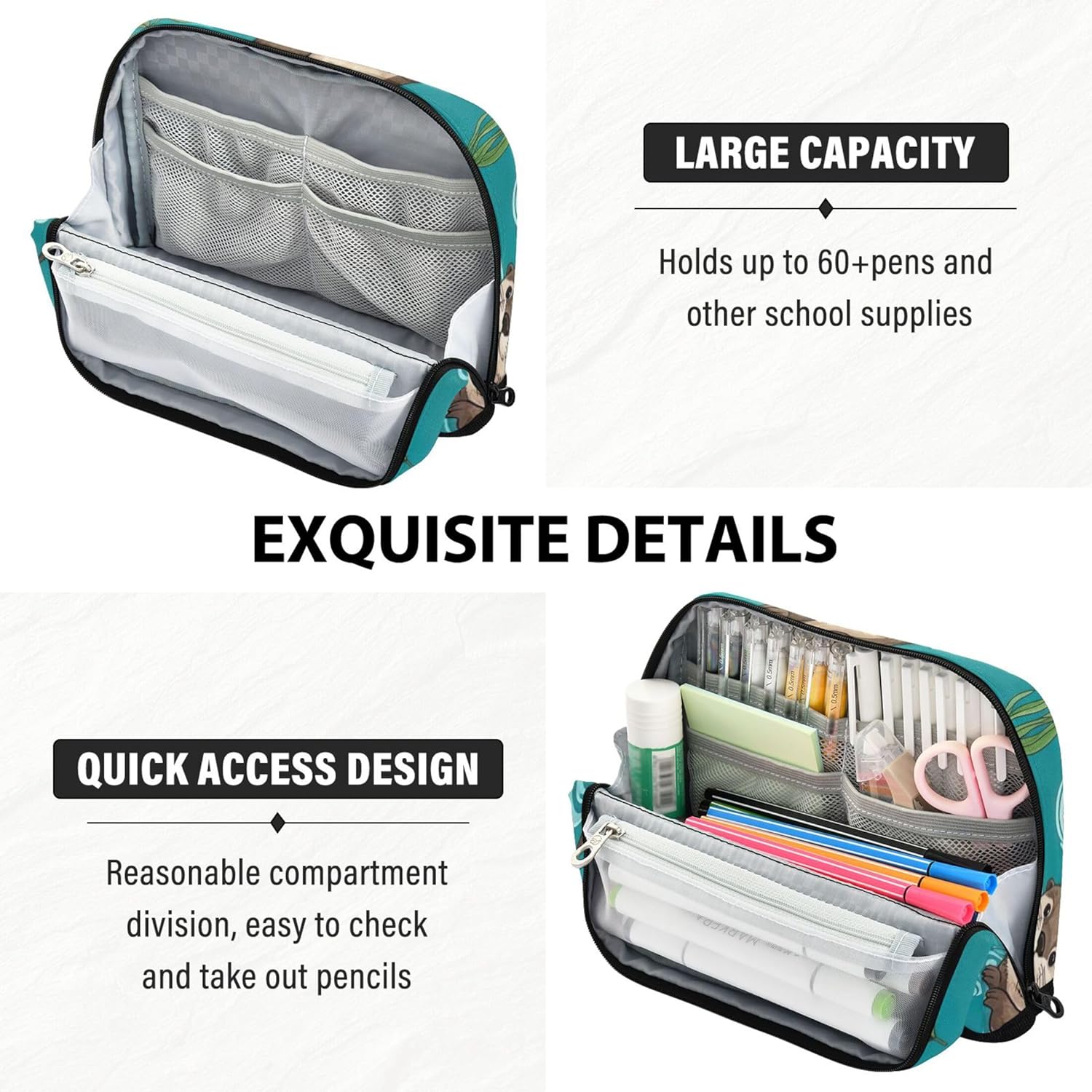 Design intelligente della struttura: l'organizer per matite si trasforma in un supporto con chiusura magnetica quando piegato, offrendo una visione chiara e un facile accesso alle tue forniture Materiale di alta qualità: realizzato in resistente tessuto di nylon, l'astuccio è resistente ai graffi, facile da pulire e costruito per resistere all'usura quotidiana Organizer tutto in uno: che si tratti di matite, temperamatite o foglietti adesivi, l'astuccio per ragazze ha scomparti per gestirli tutti, evitando il disordine e mantenendo le cose ordinate Opzione di archiviazione universale: con il suo design elegante e adattabile, le custodie da viaggio per matite servono come soluzione ideale per organizzare oggetti a casa, in ufficio o durante i viaggi Fallo tuo: l'astuccio rosa carino supporta tocchi personalizzati come nomi, messaggi o immagini, offrendo una scelta regalo creativa per compleanni, rientro a scuola o vacanze