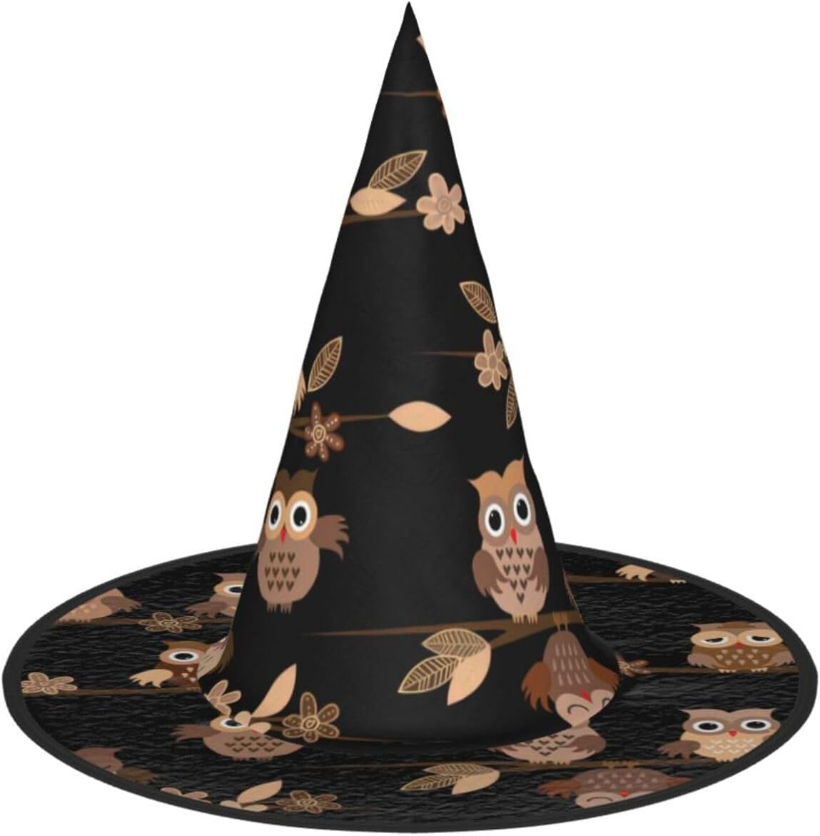 Simpatico cappello da mago marrone con stampa di gufi per adulti, carnevale, Halloween, feste, feste a tema, cosplay