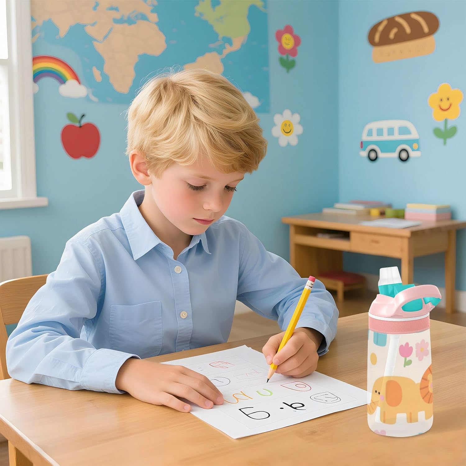 Materiali di qualità: la borraccia per bambini (16 x 7,5 cm) utilizza tritan e silicone alimentare. Ideale per pratica sportiva o picnic. Non adatta a bambini di età inferiore ai 3 anni Comoda da trasportare: con un ampio manico per mani piccole e un gancio sul coperchio, la borraccia per bambini può essere appesa agli zaini. I bambini non faranno fatica a trasportarla durante le gite sul campo o le attività post-scuola. Uso senza problemi con una sola mano: il design a becco d'anatra si adatta alle bocche dei bambini, con una copertura antipolvere. L'interruttore a pulsante della borraccia per bambini è facile da usare con 1 mano, anche quando giocano o corrono. Previene le perdite: il blocco a pulsante blocca l'apertura accidentale del becco d'anatra. Mantiene le bevande all'interno, proteggendo zaini e vestiti durante i pendolari o il gioco. Facile da pulire: tutte le parti della borraccia sportiva possono essere smontate per evitare l'accumulo di sporco. Pulire con detergente neutro e acqua calda.