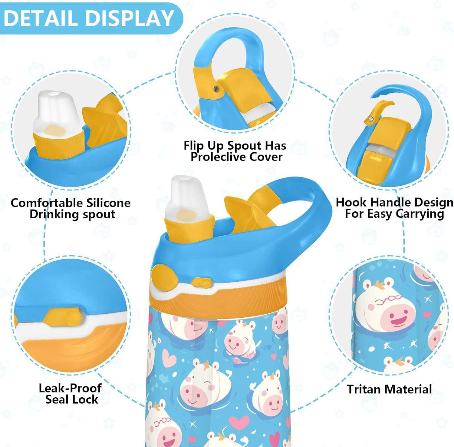 Materiali di qualità: la borraccia per bambini (16 x 7,5 cm) utilizza tritan e silicone alimentare. Ideale per pratica sportiva o picnic. Non adatta a bambini di età inferiore ai 3 anni Design portatile: l'ampio manico e il gancio del coperchio rendono la borraccia per bambini facile da trasportare. I bambini possono appenderlo alle loro borse, evitando il fastidio di cadere durante la ricreazione o i viaggi in autobus. Uso senza problemi con una sola mano: il design a becco d'anatra si adatta alle bocche dei bambini, con una copertura antipolvere. L'interruttore a pulsante della borraccia è facile da usare con una sola mano, anche quando giocano o corrono. Previene le perdite: il blocco a pulsante blocca l'apertura accidentale del becco d'anatra. Mantiene le bevande all'interno, proteggendo zaini e vestiti durante i pendolari o il gioco. Facile da pulire: tutte le parti della borraccia sono rimovibili per una pulizia accurata senza sporcare. Usa un detergente neutro e acqua calda: semplice per i genitori mantenere la pulizia per l'uso quotidiano.