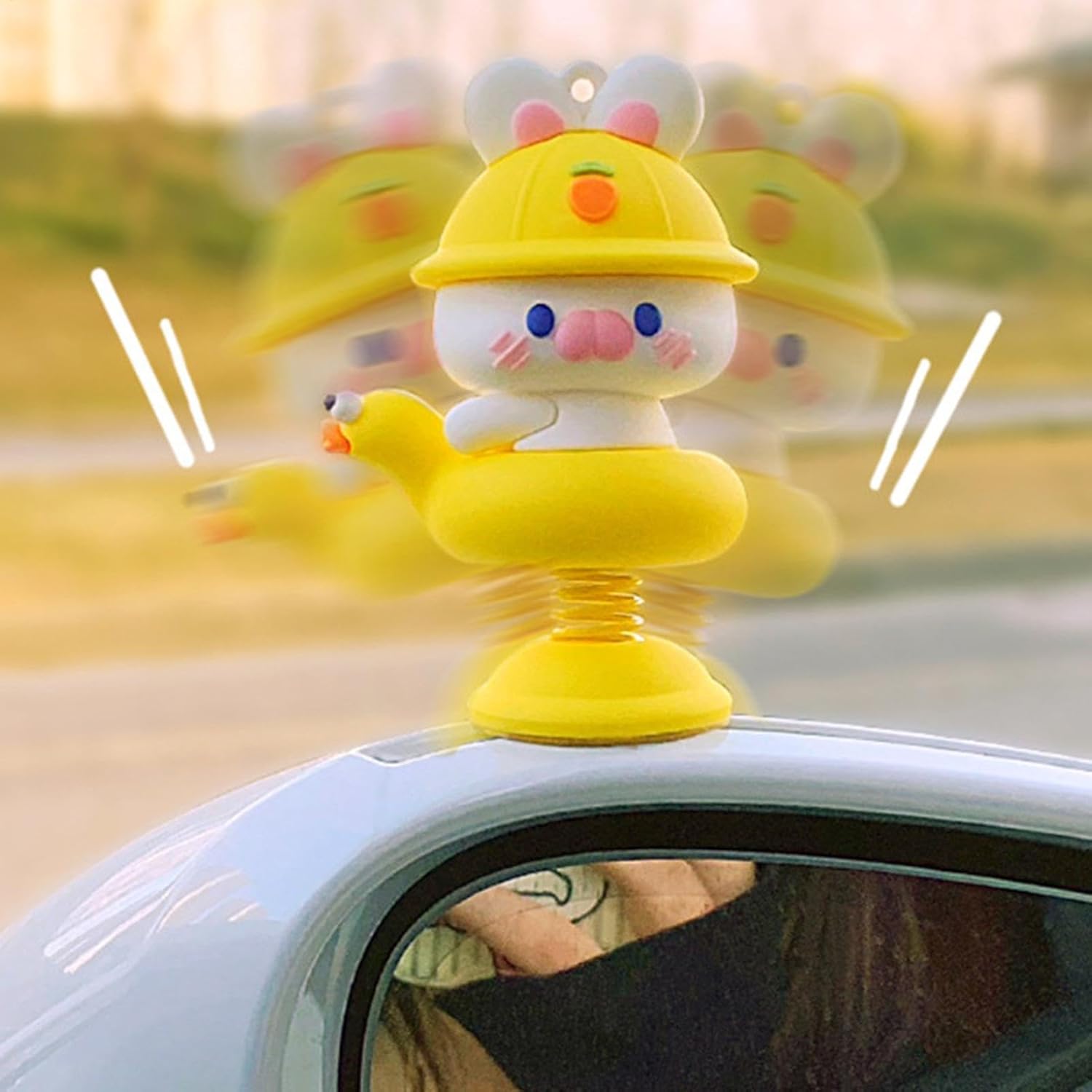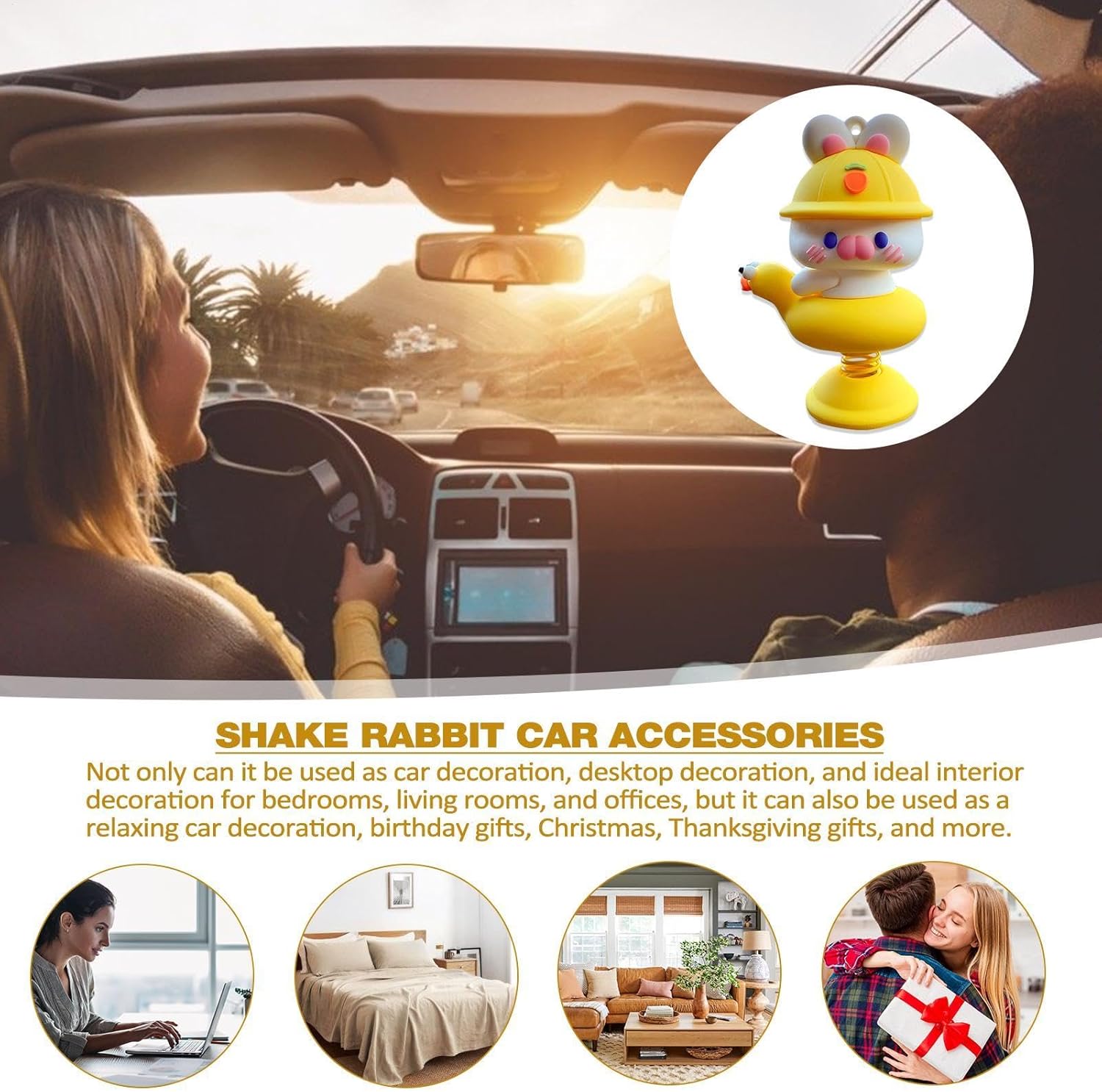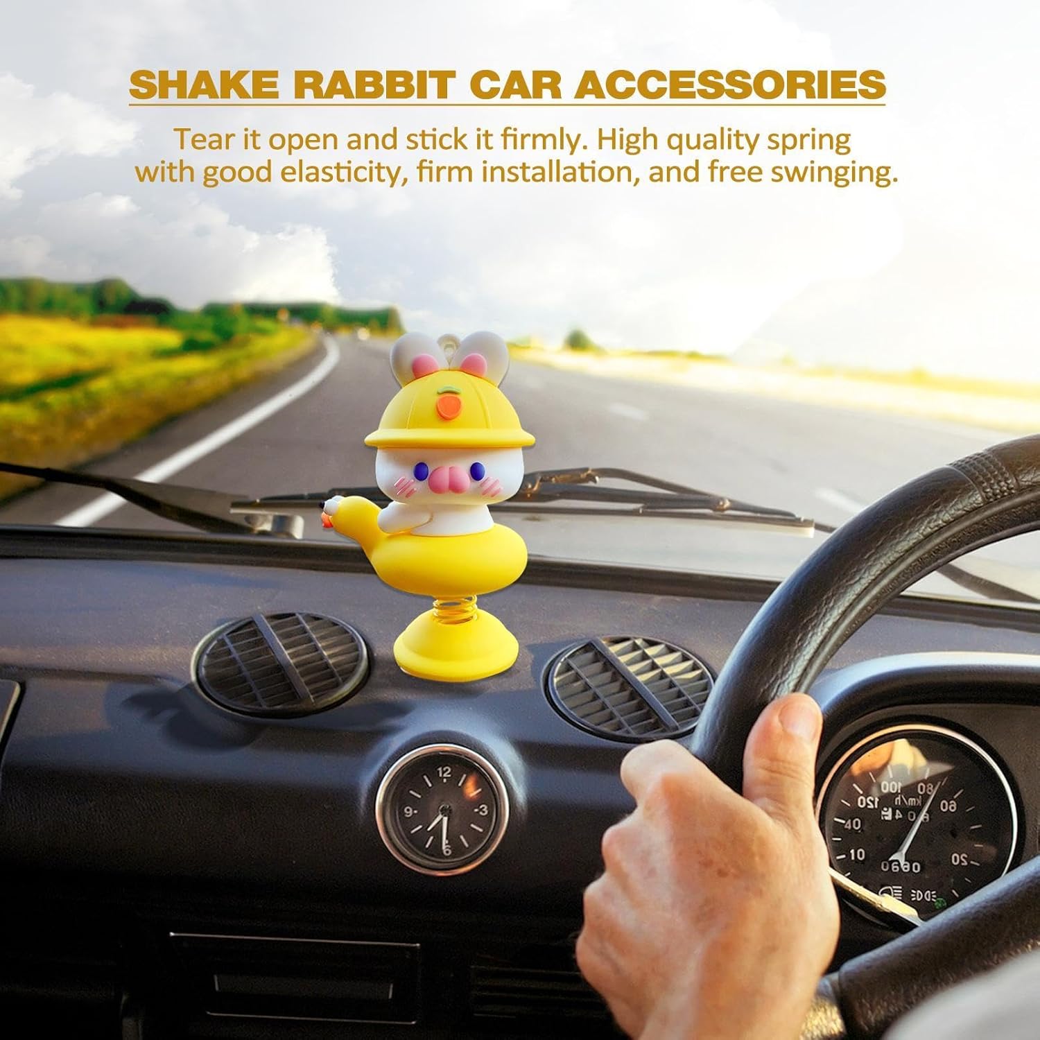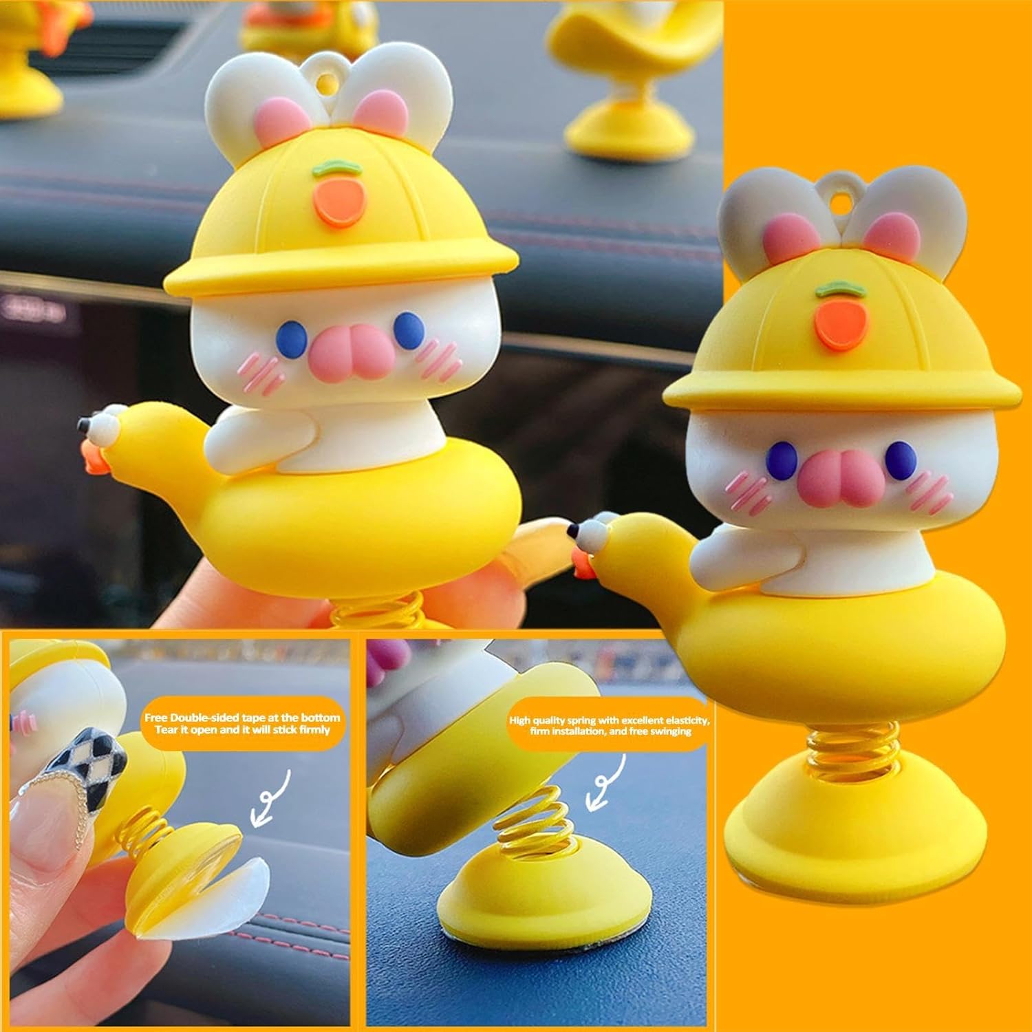 Simpatico design a coniglietto: caratterizzato da un simpatico design a coniglietto con un'espressione vivace, questo affascinante accessorio, dotato di un dispositivo a molla, oscilla giocosamente mentre l'auto accelera e gira, attirando l'attenzione e aumentando il divertimento interattivo Struttura robusta: realizzato in resina naturale, questo coniglietto scuotente per cruscotto dell'auto è robusto e sicuro, garantendo un uso duraturo senza rischio di danni e rotture Ampia gamma di usi: installa questo adorabile coniglietto che scuote l'auto sul cruscotto o su qualsiasi tavolo a casa per un tocco stravagante che migliora l'atmosfera e aggiunge un tocco giocoso all'ambiente circostante Posizionamento sicuro: il nastro biadesivo sul fondo assicura un'installazione sicura per il coniglietto che scuote la tua auto, rendendolo comodo e senza preoccupazioni da installare Regalo caro: questo coniglietto che scuote l'auto è una deliziosa sorpresa, creando i migliori ricordi come regalo pratico e premuroso per le vacanze per amici e familiari, inviando cure e benedizioni