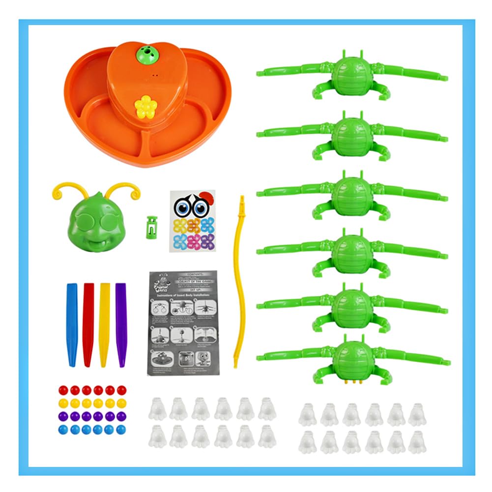 1. Realizzato in materiale ABS sicuro, non dannoso per i bambini durante il gioco. 2. Aspetto colorato progettato per attirare e coinvolgere facilmente i bambini. 3. Ottima opzione regalo che incoraggia il gioco interattivo tra bambini e adulti. 4. Forma di insetto progettata per essere carina e amichevole, non spaventosa per i giovani utenti. 5. Include una base stabile per un comodo gioco e visualizzazione da tavolo.