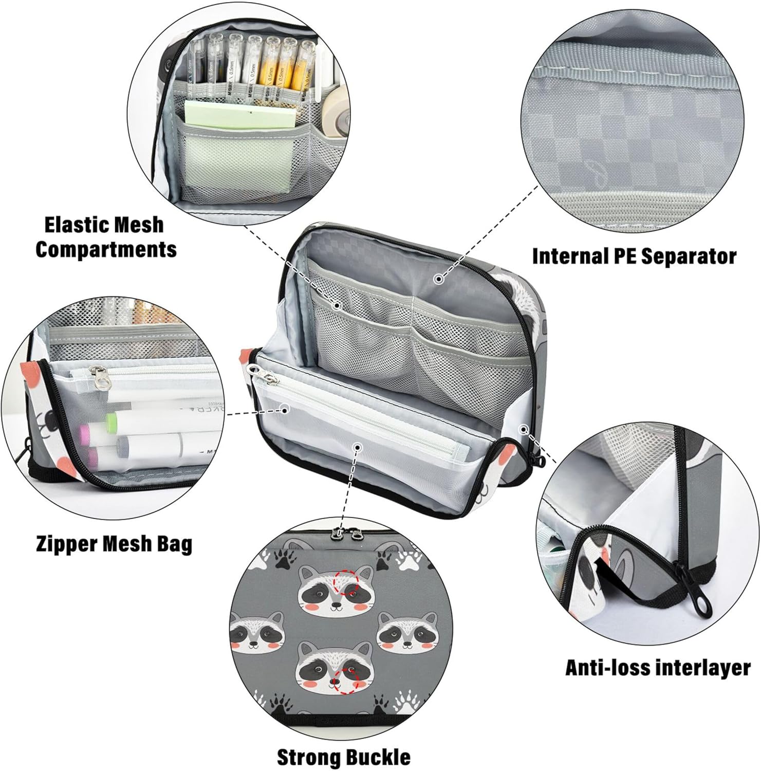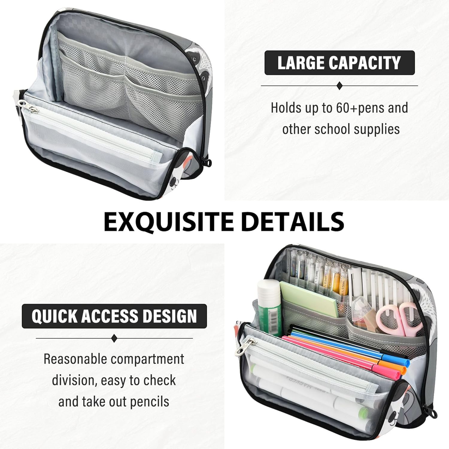 Pratico design autoportante: le borse per matite e giocattoli si convertono facilmente da una custodia con cerniera a un contenitore verticale da scrivania, aiutandoti a individuare rapidamente penne, strumenti o accessori a colpo d'occhio Resistente all'usura e lavabile: lo speciale astuccio presenta nylon di poliestere di alta qualità che resiste a graffi e macchie, offrendo allo stesso tempo un facile lavaggio a mano per una freschezza a lungo termine Massimo spazio di archiviazione: l'astuccio scolastico utilizza un layout interno intelligente con tasche multiple per contenere tutto, dagli strumenti di scrittura ai piccoli accessori in ordine Non solo per cancelleria: l'astuccio colorato è pronto per contenere materiale scolastico, oggetti essenziali da viaggio o prodotti di bellezza, adattandosi perfettamente a ogni stile di vita Regalo premuroso e utile: con motivi accattivanti e design personalizzato, i sacchetti organizer per matite diventano un regalo pratico ma sincero per qualsiasi età o stile di vita