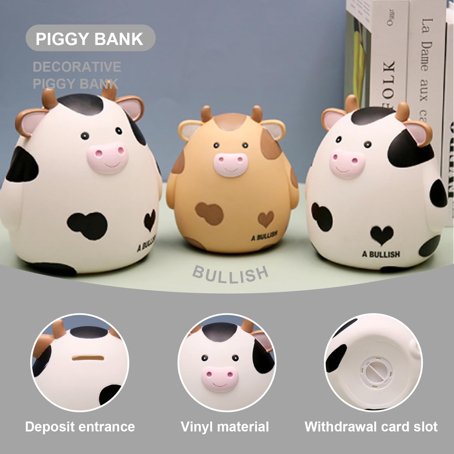 Le dimensioni del salvadanaio sono: lunghezza 16,5 cm larghezza 14,0 cm altezza 16,5 cm peso netto: 227 g, che corrisponde all'incirca alle dimensioni di una taglia piccola..tratta di un vero salvadanaio per contanti e monete, riutilizzabile e adatto ai bambini da tenere o portare via..È una dimensione ideale per bambini dai 3 ai 10 anni. I salvadanai per bambini possono aiutare i bambini a sviluppare l'abitudine di risparmiare denaro e insegnare loro a iniziare a risparmiare denaro il prima possibile. Questo salvadanaio per bambini è dotato di un'ampia fessura per i risparmi sul retro e di un tappo di plastica rimovibile nella parte inferiore, che può essere aperto senza danneggiarlo..Ruota il tappo per aprirlo e bloccarlo, consentendo ai bambini di accedere facilmente ai propri soldi o di conservarli in modo sicuro. Può essere utilizzato come compleanno di un bambino, Natale, Capodanno, festival, Pasqua, Ringraziamento, Halloween, ecc. Questo salvadanaio è realizzato in materiale di resina di alta qualità, sicuro, leggero e robusto..Può essere utilizzato sia da adulti che da bambini..Questo salvadanaio è infrangibile e ben fatto, il che lo rende un salvadanaio ideale per i bambini.
