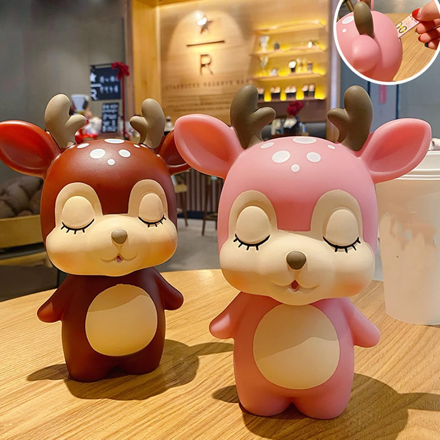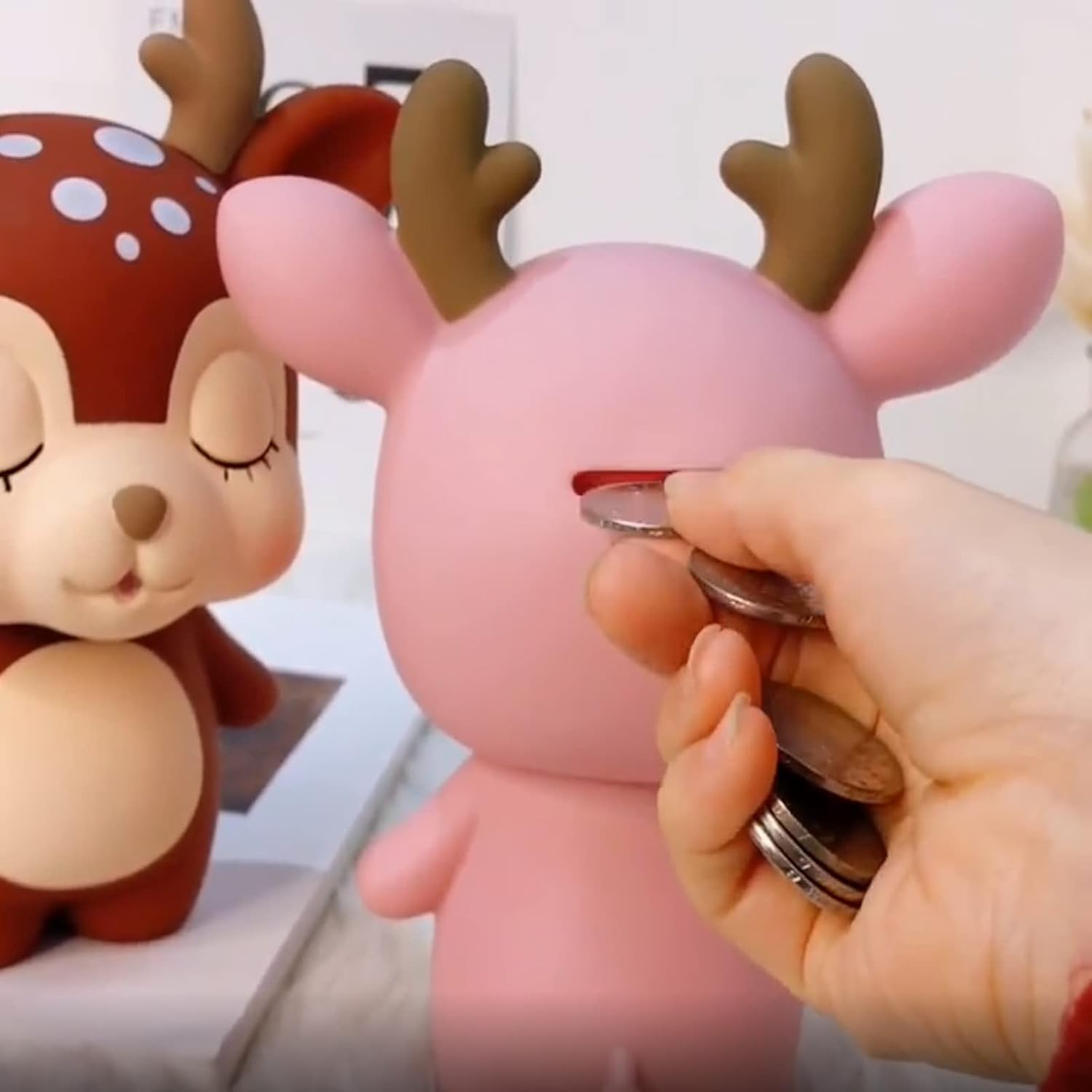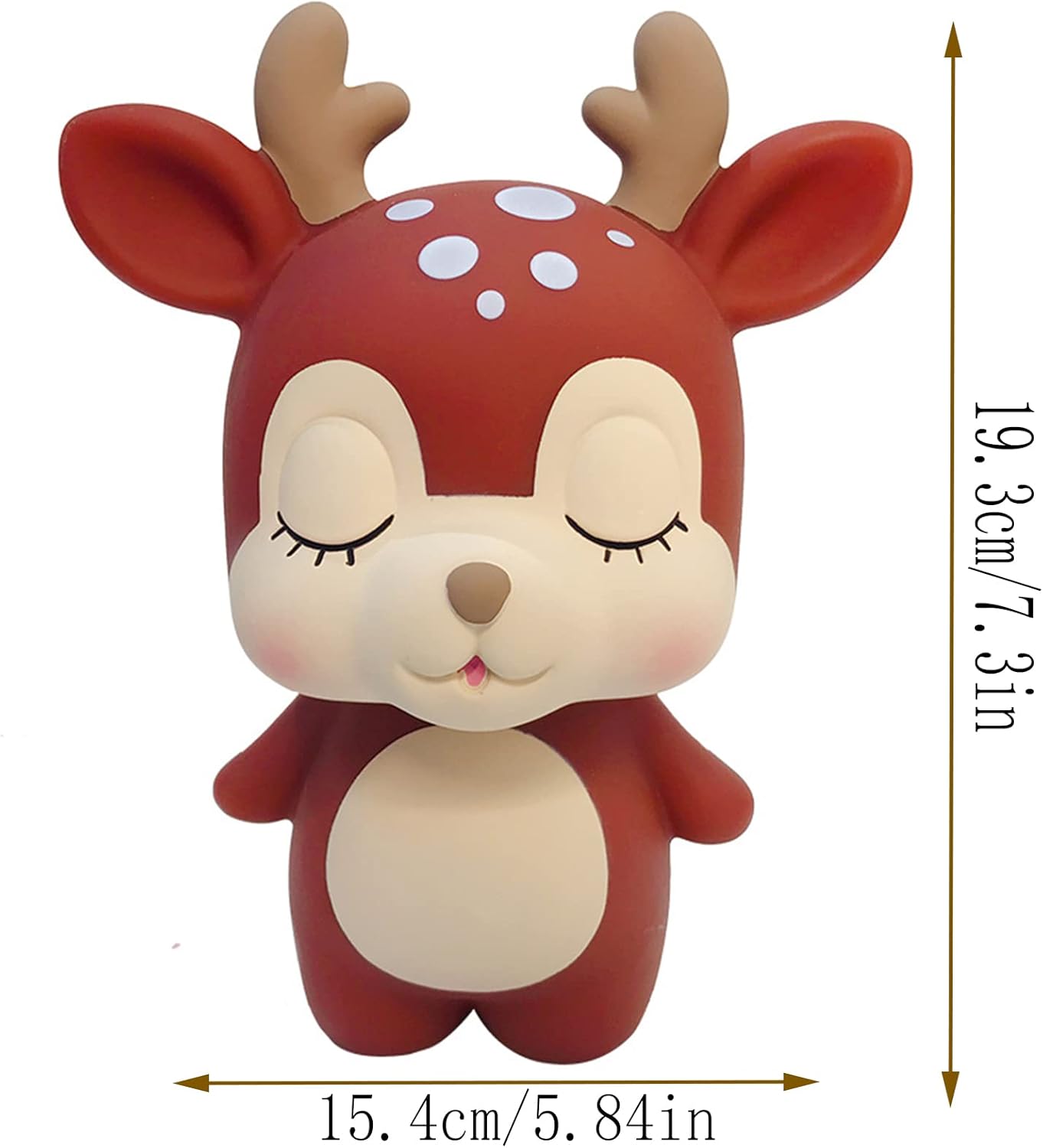 Bellissimo design dalla forma: realizzato con tecnica vinilica, morbido ed elastico, può essere utilizzato come souvenir classico durevole. Forte praticità: il design carino può far piacere molto ai bambini. Non può essere utilizzato solo per decorare la tua camera da letto, ma può anche essere utilizzato per conservare il resto per i bambini. La scelta di formare una buona abitudine: essere un ricco padre/madre di un bambino. Questo salvadanaio per bambini e bambine porterà ai bambini la gioia di risparmiare e i tuoi figli svilupperanno una buona abitudine di risparmiare e investire. Squisito salvadanaio: la superficie del salvadanaio è rivestita con vernice di gomma, che ha un buon tocco e nessun odore particolare. Il salvadanaio marrone a forma di cervo è bellissimo, quindi è un salvadanaio o una decorazione carina. La scelta migliore per i regali: regali per bambini e amici, posizionali come decorazioni per cervi a casa, le monete sono conservate nel salvadanaio, ma le banconote devono essere piegate prima di poter essere inserite.