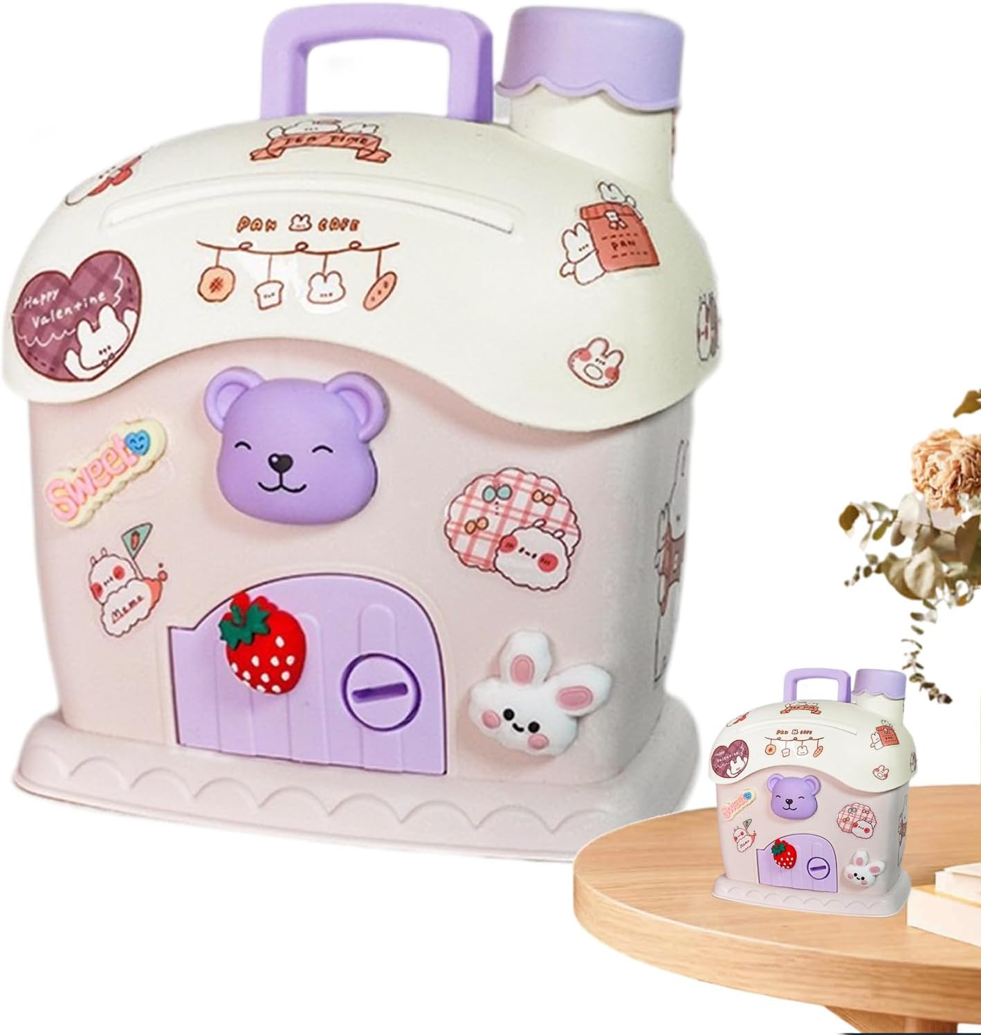 Incoraggia il risparmio: migliora la creatività del tuo bambino con 2 chiavi e un simpatico adesivo fornito con questo salvadanaio a casa. Lascia che si adeguino e assicurino i loro risparmi, insegnando loro la responsabilità finanziaria. Divertimento educativo: questo salvadanaio insegna ai bambini l'importanza di risparmiare attraverso un design giocoso. Favorisce le abitudini di risparmio per infondere responsabilità finanziaria, rendendolo uno strumento divertente e interattivo per l'educazione al risparmio. Facile da pulire: questo salvadanaio è stato creato per semplificarti la vita. Basta una rapida pulizia con un panno umido. Non è necessario risciacquare. Mantenilo come nuovo con il minimo sforzo. Versatile nell'uso: posiziona questo simpatico salvadanaio a forma di casa sulla tua libreria, tavolo o scrivania per una bella decorazione domestica. Non è solo colorato: aiuta anche a mantenere i tuoi risparmi sani e salvi, con un tocco di dolcezza in ogni goccia di moneta. Grande stoccaggio: risparmio senza sforzo con un interno spazioso, questo salvadanaio di casa protegge una somma sostanziale senza smontaggio. Prelevare fondi in modo rapido e sicuro.