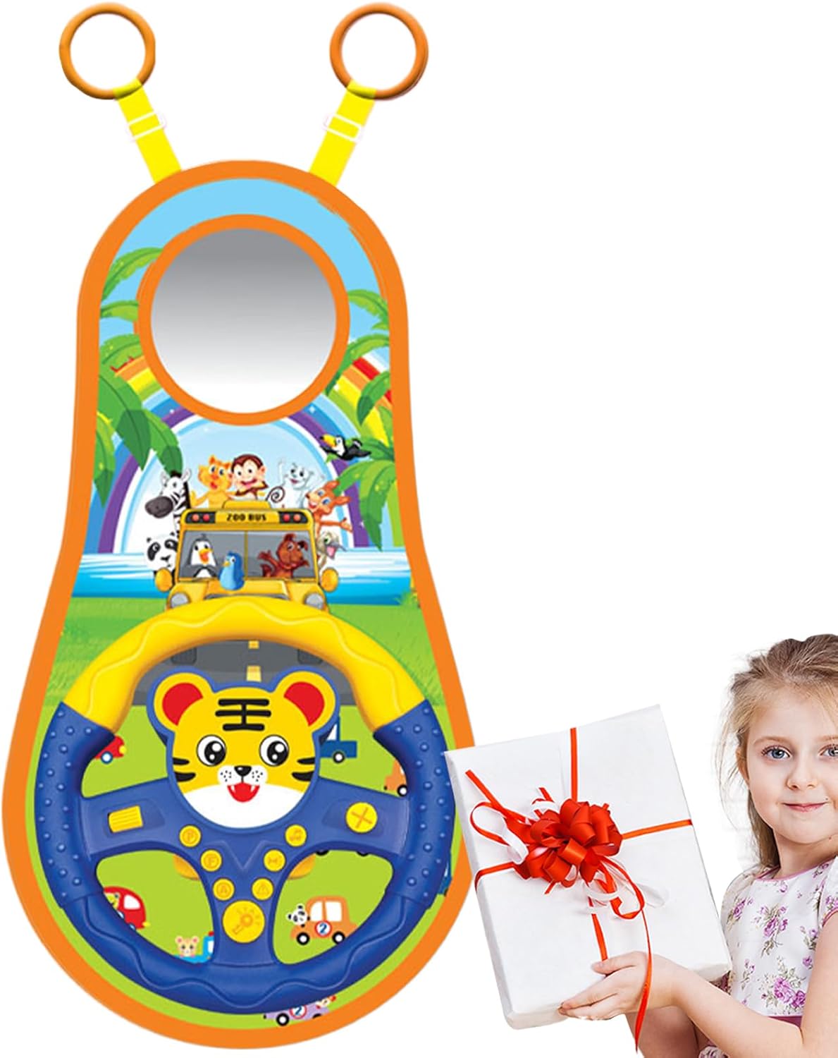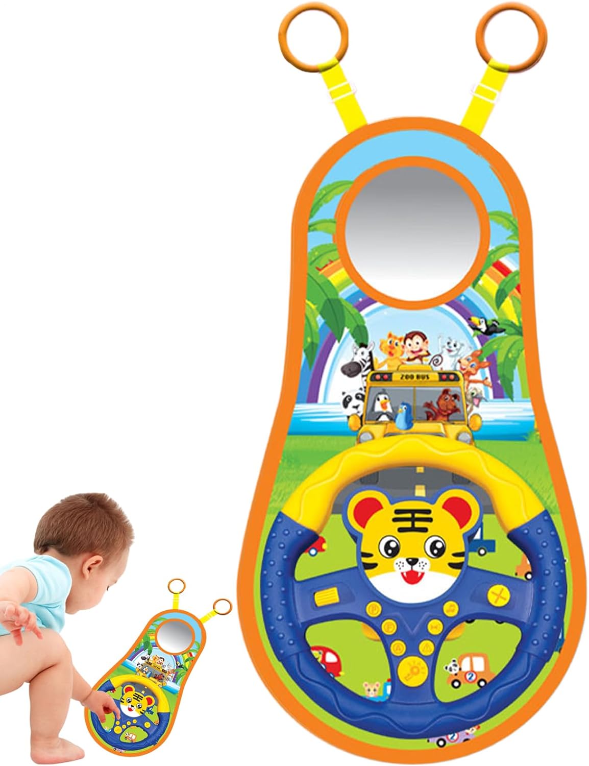 Educazione interattiva: trasforma i banali viaggi in auto in un'esperienza di apprendimento interattivo con il nostro giocattolo. Coinvolge figlio ed è divertente, rendendolo il giusto strumento educativo per apprendere le regole del traffico e le abilità di guida. Ti aspetta un'esperienza di apprendimento interattivo Intrattenimento e sicurezza per i bambini: con un design a cartone animato con bordi lisci per tenere al sicuro i bambini piccoli, la forma arrotondata e il materiale morbido consentono alle piccole mani di esplorare in sicurezza senza rischio di lesioni Facile da installare: goditi un comodo intrattenimento all'aperto per il bambino con il nostro giocattolo. L'installazione è un gioco da ragazzi grazie al semplice anello di montaggio e alla lunghezza della regolabile. Mantieni il bambino intrattenuto e impegnato con quei lunghi viaggi in macchina Suoni realistici attraenti: il nostro giocattolo al crea un'esperienza di guida realistica e coinvolgente per il bambino grazie a effetti sonori divertenti e una grafica . Lascia che esplorino la loro immaginazione e si godano ore di giocosità Vantaggio del funzionamento a batteria: lascia che il guidatore il divertimento della guida con un vivace giocattolo che è meraviglioso per qualsiasi viaggio in auto. Funziona a batteria per comodità e offre intrattenimento di lunga durata con tre batterie AA