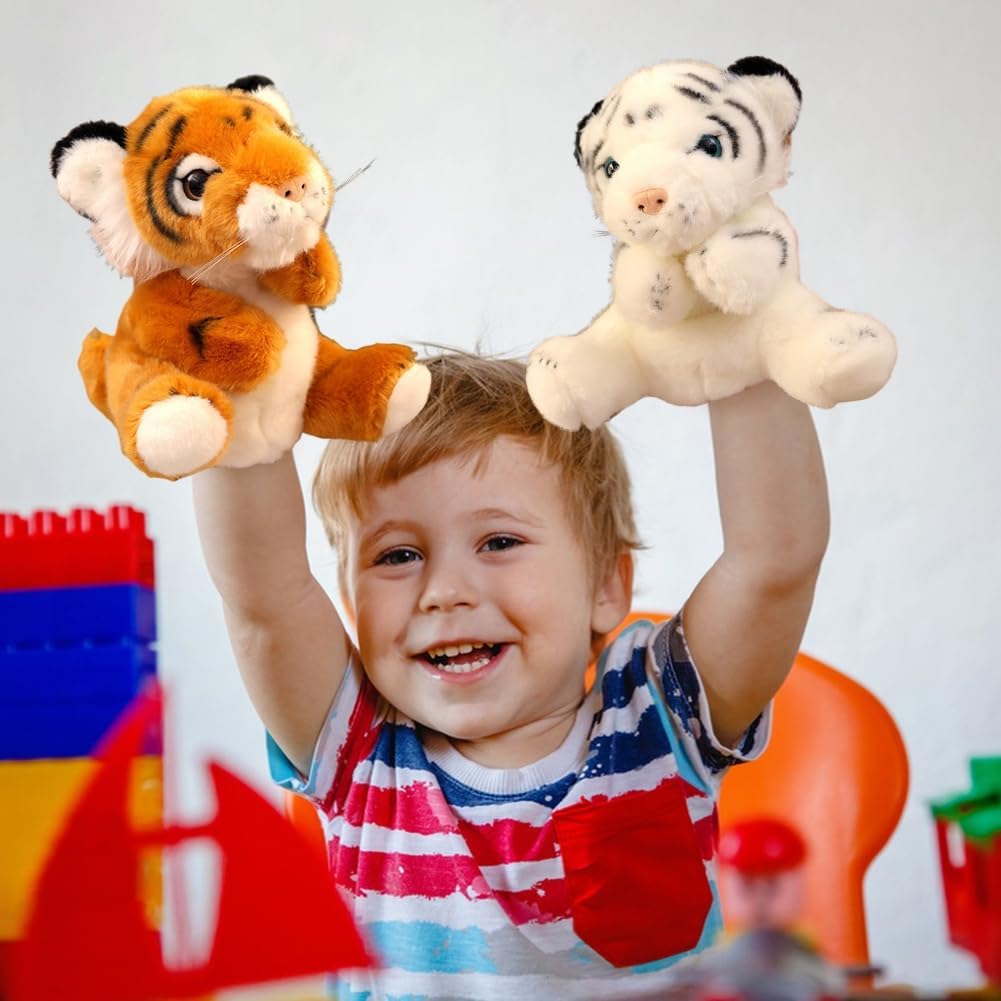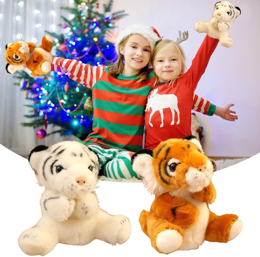 Design carino: l'adorabile design degli animali prende vita, rendendolo un irresistibile compagno di giochi per bambini e adulti Materiale di alta qualità: questa bambola è realizzata in peluche di alta qualità e cotone PP, per una sensazione morbida e coccolosa che garantisce sicurezza e comfort per tutte le età Giocattolo di interazione genitore-figlio: i pupazzi di animali sono realistici e vivaci, che possono facilmente attirare l'attenzione dei bambini e adatti per giochi di ruolo, narrazioni, ecc. I bambini possono giocare con la famiglia e gli amici per migliorare le loro relazioni Stili diversi: questo pupazzo di animali ha 2 design tra cui scegliere di, tigre bianca e tigre marrone, ideale sia per bambini che per adulti Ottima idea regalo: questo pupazzo animale è perfetto per compleanni, feste e occasioni speciali. Incoraggia il gioco fantasioso e migliora le capacità comunicative