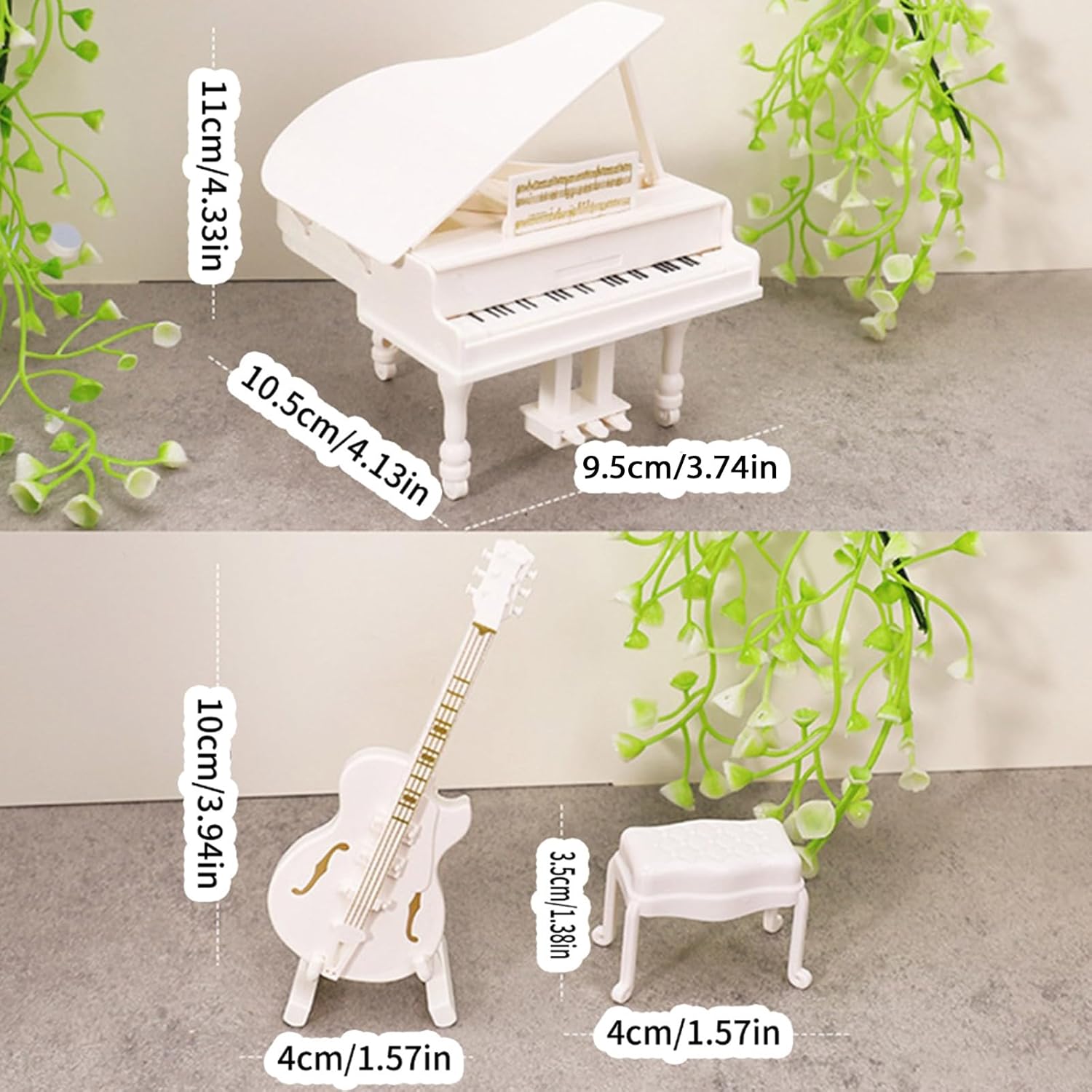 Uso selezionato Un'aggiunta senza tempo alla collezione di mobili per case delle bambole che combina artigianato artistico con materiali adatti ai bambini per ore di avventure a tema musicale Migliora le stanze delle case delle bambole, i diorami o lo spazio di gioco educativo con il design veritiero dello strumento musicale per la creatività interattiva Ideale per bambini e collezionisti che cercano oggetti di scena musicali in scala di simulazione per arricchire la narrazione o esporre nella scena in miniatura Pianoforte a coda e mobili in miniatura di squisita fattura con dettagli dettagliati, perfetti per migliorare il realismo delle case delle bambole e innescare giochi fantasiosi