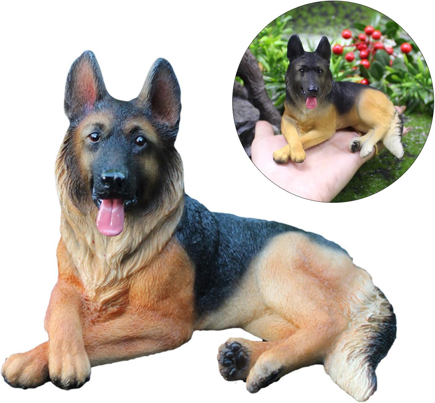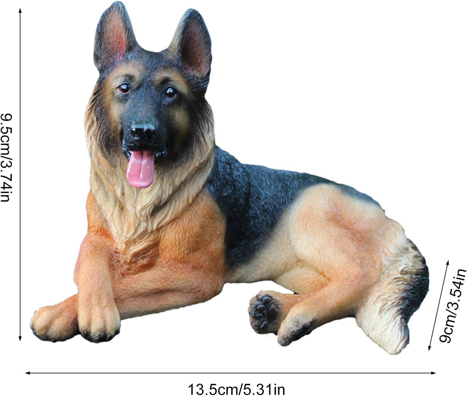 Ideale per gli amanti dei cani, degli animali, degli amanti della casa e dei collezionisti che desiderano aggiungere un tocco di realismo ed eleganza al proprio spazio. Questa statuina è ideale per migliorare l'ambiente di soggiorni, studi o uffici, aggiungendo calore e personalità ad ogni ambiente. Scopri il fascino realistico delle nostre figurine di pastore tedesco, che cattura meticolosamente le essenze fedeli ed è una delizia in ogni collezione. Questa figura è realizzata con resine di alta qualità e presenta intagli fatti a mano e vernice brillante che garantiscono durata e resistenza allo sbiadimento nel tempo. Questo modello di pastore tedesco funge da accattivante inizio di conversazione e si fonde perfettamente con vari stili di arredamento.