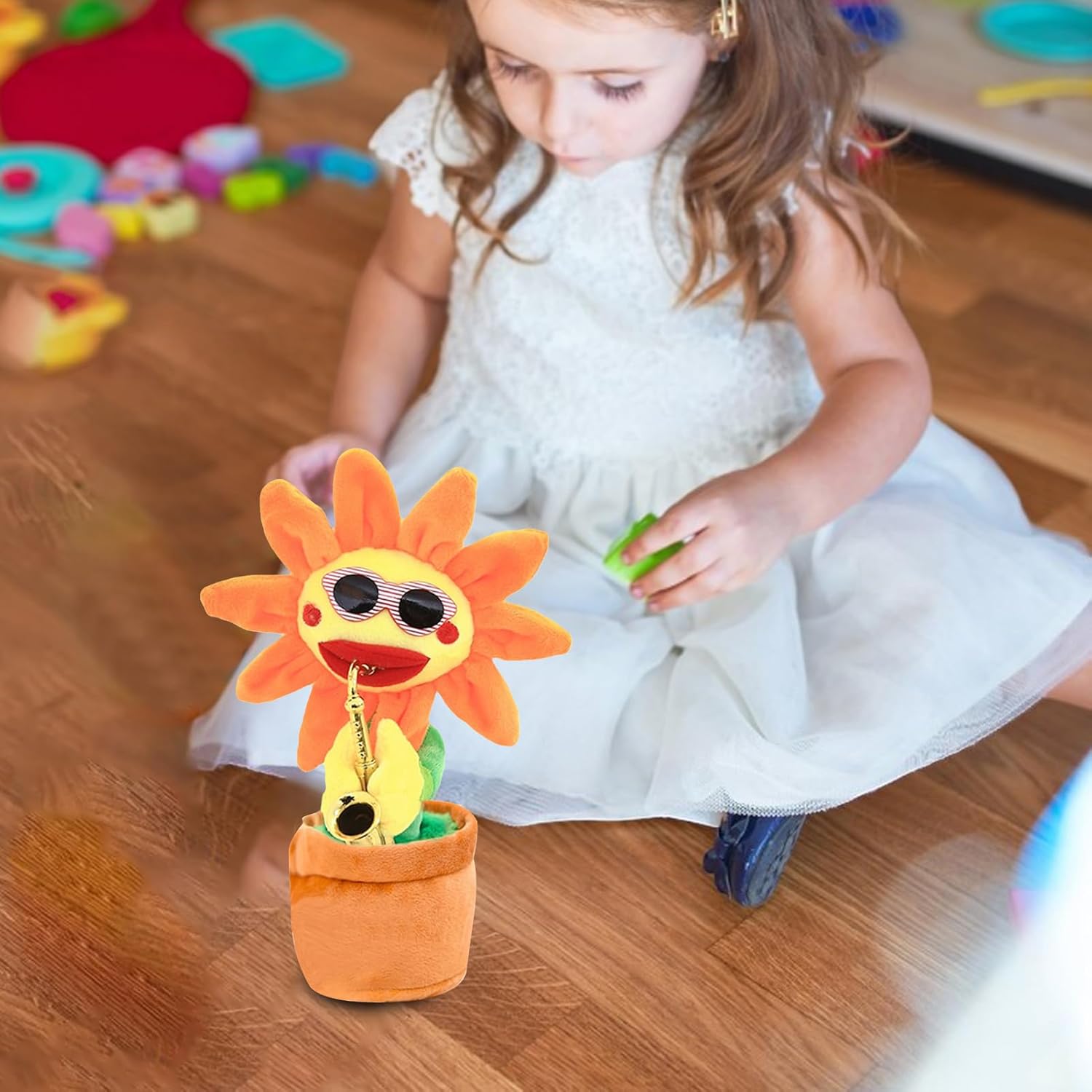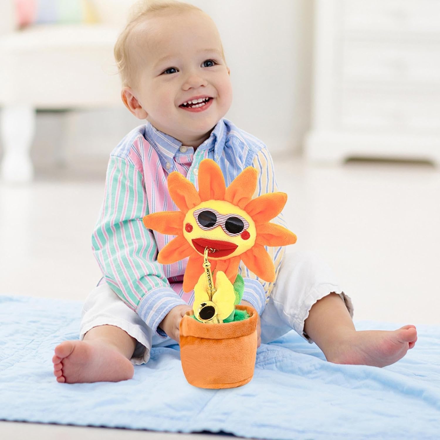 Eco-friendly Crafting: Our singing sunflower is carefully crafted with eco-friendly materials, giving it a smooth and enduring finish. The fine workmanship speaks to our commitment to quality and sustainability, ensuring a product that you can enjoy for . Child-friendly entertainment: The Singing Sunflower's rich body sounds and vivid movements serve as a great stimulus for children's curiosity, enticing and captivating their attention in no time. Easy to carry: This singing sunflower will brighten up your day with its cute and lively voice. It can sing different songs and dance along with the music. It is a perfect gift for kids and adults who love flowers and music. Wide usages: Surprise your loved with this entertaining singing sunflower. Can be displayed on a table, stored on a shelf or placed near the fireplace for added holiday cheer. Nice gift: With its fun and festive renditio," it's the perfect gift to give your loved . Spread joy and laughter this season by placing it under the tree and watching their faces light up!
