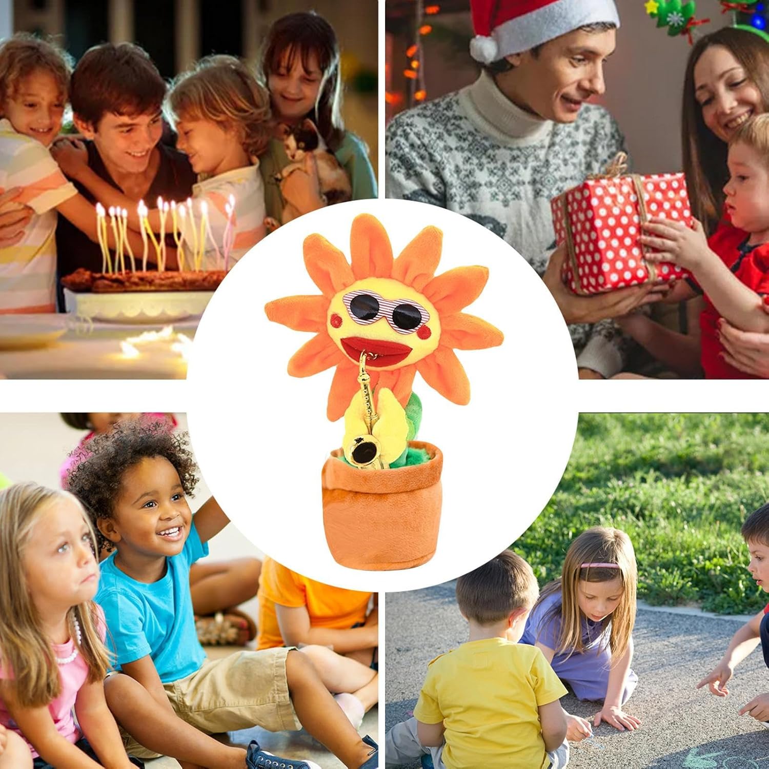 Materiali ecologici: il girasole cantante è realizzato con materiali ecologici lisci e durevoli, che garantiscono la lunga durata e la sicurezza del prodotto. Il fine lavoro aggiunge al fascino e alla qualità del girasole. Giocattolo innovativo: con i suoi movimenti vivaci e suoni vibranti, il nostro girasole canto cattura istantaneamente la curiosità e l'attenzione dei bambini per ore di divertimento. Facile da riporre: facile da mettere in borsa, questo girasole leggero e compatto è perfetto per fare picnic, feste e viaggi su strada. Goditi i suoi sintonizzatori cheerful wherever you go and spread joy with its lively dance moves. Molteplici usi: aumenta la tua decorazione per le vacanze con questa aggiunta unica. Può essere posizionato su un tavolo da pranzo, ripostigli, o near the fireplace per un tocco divertente e festivo. Il regalo perfetto per amare tutta la stagione. Regalo meraviglioso: questo girasole è un regalo perfetto per bambini, amici e familiari. It can sing and dance to the tune and bring joy and laughter to any Christmas celebration. Give it as a Christmas gift and watch their faces light up with delight.