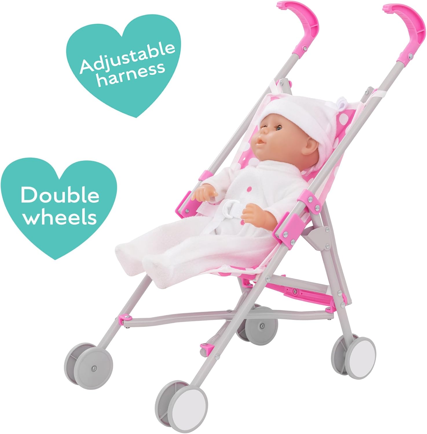 Passeggino singolo Dolly Tots: il passeggino perfetto per un divertimento senza fine. Scatena l'immaginazione del tuo bambino con il passeggino singolo Dolly Tots - il passeggino giocattolo definitivo per la sua bambola o bambola preferita. Che si tratti di passeggiare per il parco, intraprendere emozionanti avventure in passeggino da viaggio o divertirsi a casa con giochi di ruolo, questa carrozzina per ragazze e ragazzi rende il gioco di finta ancora più speciale. Progettato sia per bambini che per bambini, questo passeggino è più di un semplice giocattolo: è un regalo per bambini che accende gioia, nutre l'apprendimento e intrattiene il tuo piccolo per ore. Perfetto per bambini, 2 anni e bambini di tutte le età, questo passeggino è un must in ogni set di giocattoli! Compatto, leggero e facile da riporre Lottando con spazio limitato? Il passeggino singolo Dolly Tots è sapientemente progettato con una funzione di passeggino pieghevole a ombrello. Leggero e portatile, si piega in pochi secondi – ideale per entrare nel bagagliaio di un'auto, bagaglio a mano su un aereo ️, o un piccolo spazio di archiviazione. Con 4 ruote doppie , è pronto per gestire diversi terreni: pavimenti lisci, sentieri del giardino o viaggi all'aperto. Sia all'interno che all'aperto, questo passeggino leggero è il compagno di viaggio perfetto per bambini e bambini in viaggio Incoraggia la creatività con il gioco di finta Il gioco di ruolo è vitale per la crescita del tuo bambino ️. Questo passeggino incoraggia i più piccoli a esplorare il gioco dei genitori, prendendosi cura della loro bambola, bambola rinata, Annabell o Bibi. Dall'alimentazione con una bottiglia giocattolo , mettendoli in una culla, in una culla o in un lettino, o portandoli fuori nel loro passeggino o marsupio, i bambini possono godere di narrazione realistica e creatività. Sia che si stiano prendendo cura della loro bambola, piangere o anche di un minuscolo teletubbies o bambola di pezza - fingere di essere genitori insegna empatia, responsabilità e immaginazione. Perfetto sia per ragazze che per ragazzi, i fratelli possono condividere il divertimento. Caratteristiche e specifiche del prodotto Contenuto della confezione: 1 passeggino singolo Dolly Tots (bambola non inclusa) Altezza del manico: 53 cm – Dimensione perfetta per bambini piccoli Adatto per bambole: fino a 45 cm (ideale per Annabelle, Born, Babiie, e altro) Dimensioni compatte: 51,5 cm x 25 cm x 46,5 cm Facile da piegare: funzione ombrello per una rapida conservazione Età consigliata: 2 anni. Anni + – ideale per bambini e bambini Esplora la gamma di carrozzine e accessori Dolly Tots Entra nel magico mondo di carrozzine, passeggini e passeggini Dolly Tots . Dagli accessori per seggiolini auto giocattolo, passeggini gemelli, seggioloni, trasportatori, borse fasciatoio e carrelli della spesa, Dolly Tots rende il gioco indimenticabile. Conveniente, durevole e progettato con cura, Dolly Tots porta gioia a ogni piccolo genitore durante l'allenamento. Che si tratti di passeggiare per il giardino, prendersi cura di una bambola in una culla, una culla o un letto o giocare di ruolo con set da cucina, scooter o macchinine, il divertimento non finisce mai. Perché questo passeggino è un must have Il passeggino singolo Dolly Tots non è solo un giocattolo, è un tesoro dello sviluppo. Portatile, leggero e progettato per divertirsi, è perfetto per casa, corse scolastiche e vacanze Ideale per compleanni, Natale o qualsiasi occasione speciale: questo passeggino è un regalo meraviglioso per bambini, neonati, neonati e bambini. Abbinalo ad altri oggetti Dolly Tots come un passeggino doppio, culla, culla o accessori per carrozzina per il set completo da gioco. Scopri il gioco di bambole di nuova generazione Sia che tuo figlio sogna di essere una mamma o un papà, un genitore o un caregiver, o semplicemente ama camminare con la sua bambola, questo passeggino è l'abbinamento perfetto per la sua immaginazione. Adatto per bambini, 2 anni e bambini fino a 6 anni Ideale per bambole rinate, Annabell, Bibi, Baby Born, e molto altro ancora. Funziona come parte di set da gioco più grandi con seggioloni, culle, letti, passeggini e marsupi. Rendi magico il gioco del tuo piccolo: ordina il passeggino singolo Dolly Tots oggi e lascia che le avventure abbiano inizio!