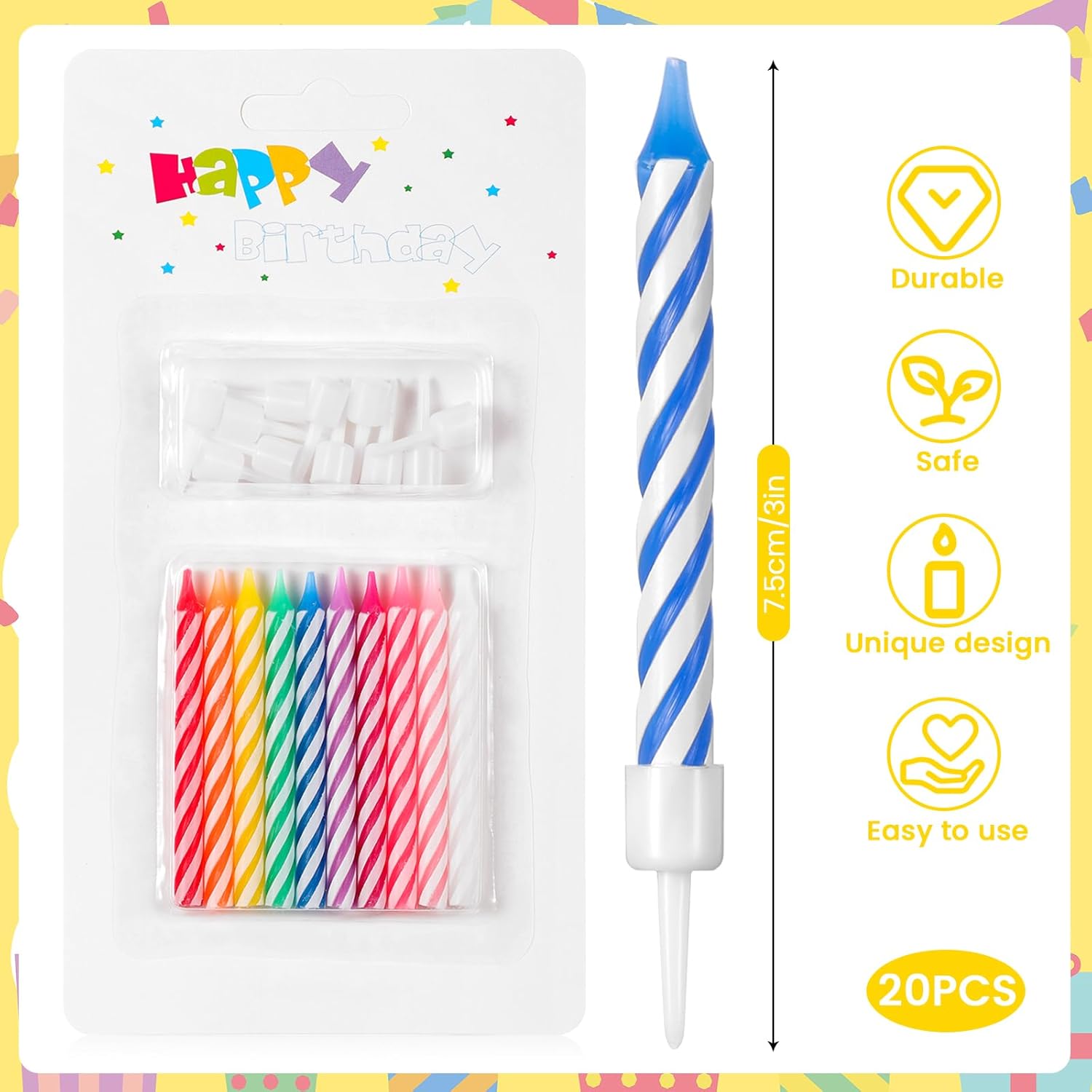 Assortimento colorato: il pacchetto di candeline di compleanno per torte comprende una varietà di colori: rosso, arancione, giallo, verde, blu, viola, rosa e bianco; Con 20 candele in totale, non solo ci sono abbastanza candele per soddisfare le tue esigenze di decorazione per una festa di compleanno, ma anche una scelta sufficiente di colori per abbinarsi al tema di qualsiasi celebrazione Materiale sicuro: le candeline per torta sono realizzate con una cera di qualità che garantisce stabilità e affidabilità; Puoi facilmente inserire il bastoncino inferiore della candela in una torta e accenderla senza preoccuparti che rilasci un odore sgradevole; Le candele sono progettate per garantire sicurezza e divertimento durante le tue celebrazioni speciali Dimensioni ideali per la decorazione di torte: ciascuna delle candele arcobaleno è alta circa 2,76 pollici/ 7 cm, il che le rende di buone dimensioni per adornare una torta di compleanno o cupcakes; La loro natura leggera garantisce che non interrompano il design delle tue torte splendidamente decorate Vivace design arcobaleno: con un affascinante design arcobaleno, queste colorate candeline di compleanno per torta possono attirare l'attenzione di tutti e migliorare il fascino di qualsiasi dessert; Puoi utilizzare queste bellissime candeline da sole o in combinazione con altre decorazioni per torte per rendere la tua festa più vivace e divertente Ampia gamma di applicazioni: queste candeline di compleanno non sono solo per le feste di compleanno; Il loro design versatile li rende ideali per la maggior parte dei tipi di celebrazioni come feste di compleanno per bambini, decorazioni per torte pasquali, decorazioni per cupcake e persino per decorare brownies