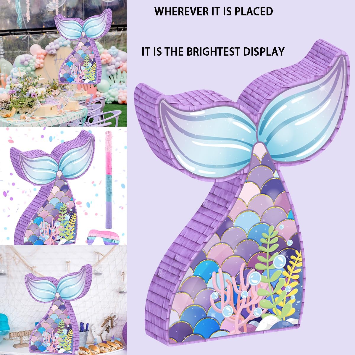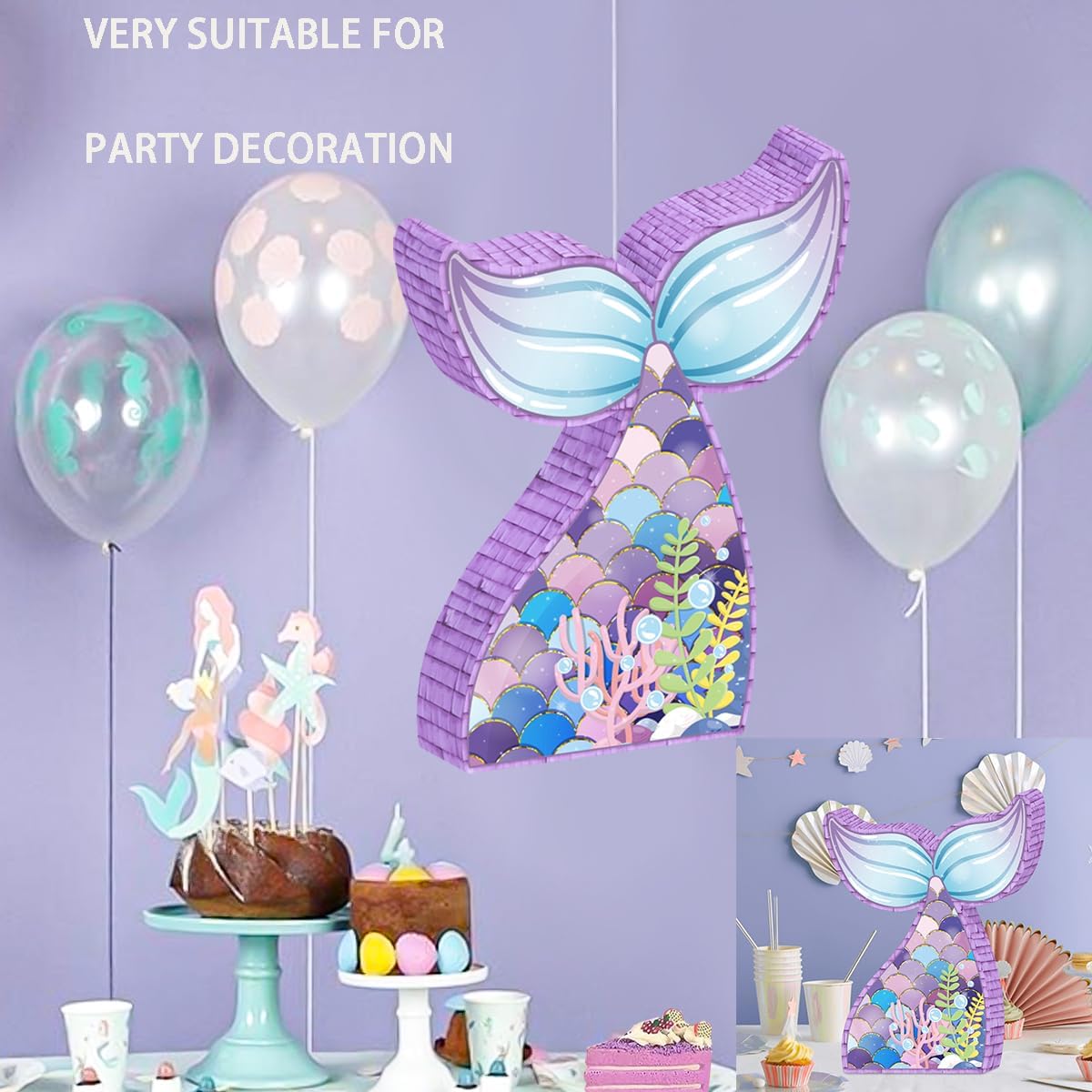 💘【Piñata Mermaid】Incorpora questa pignatta a forma di coda di sirena nelle tue decorazioni di compleanno a tema sirena per creare un tema perfettamente coordinato per la tua festa a tema sirena e stupire i tuoi ospiti. 💘【Dimensioni adatte】Ogni pignatta a forma di sirena misura circa 16,14'' x 12,40'' x 2,95'', che è abbastanza grande da contenere caramelle, regali, dessert, bigiotteria, cioccolatini o coriandoli, con fori pre-fatti e un robusto anello di sospensione nella parte superiore, puoi appenderla ovunque 💘【Materiali di alta qualità】La pignatta di compleanno a forma di sirena è realizzata in carta ondulata, con carta a nappe all'esterno e un bellissimo motivo sul davanti, e gli adesivi delicati la rendono più vivida, portando attività divertenti a te e ai tuoi amici 💘【Divertenti giochi per feste a forma di sirena】Puoi mettere caramelle o piccoli regali nella pignatta rosa, lasciare che la tua bambina indossi una maschera per gli occhi e colpire la pignatta con un bastone secondo le istruzioni degli ospiti fino a quando il giocatore non riceve il regalo, pieno di sorprese e divertimento 💘【Ampia applicazione】Questo La squisita pignatta a forma di sirena è un gioco divertente adatto sia per interni che per esterni, e i colori scintillanti donano più bellezza e vitalità alla festa, adatta per decorazioni di compleanno a forma di sirena per bambini di 3-12 anni, divertenti giochi estivi all'aperto in giardino per la famiglia, gli amici, bomboniere per feste a forma di sirena per ragazze.