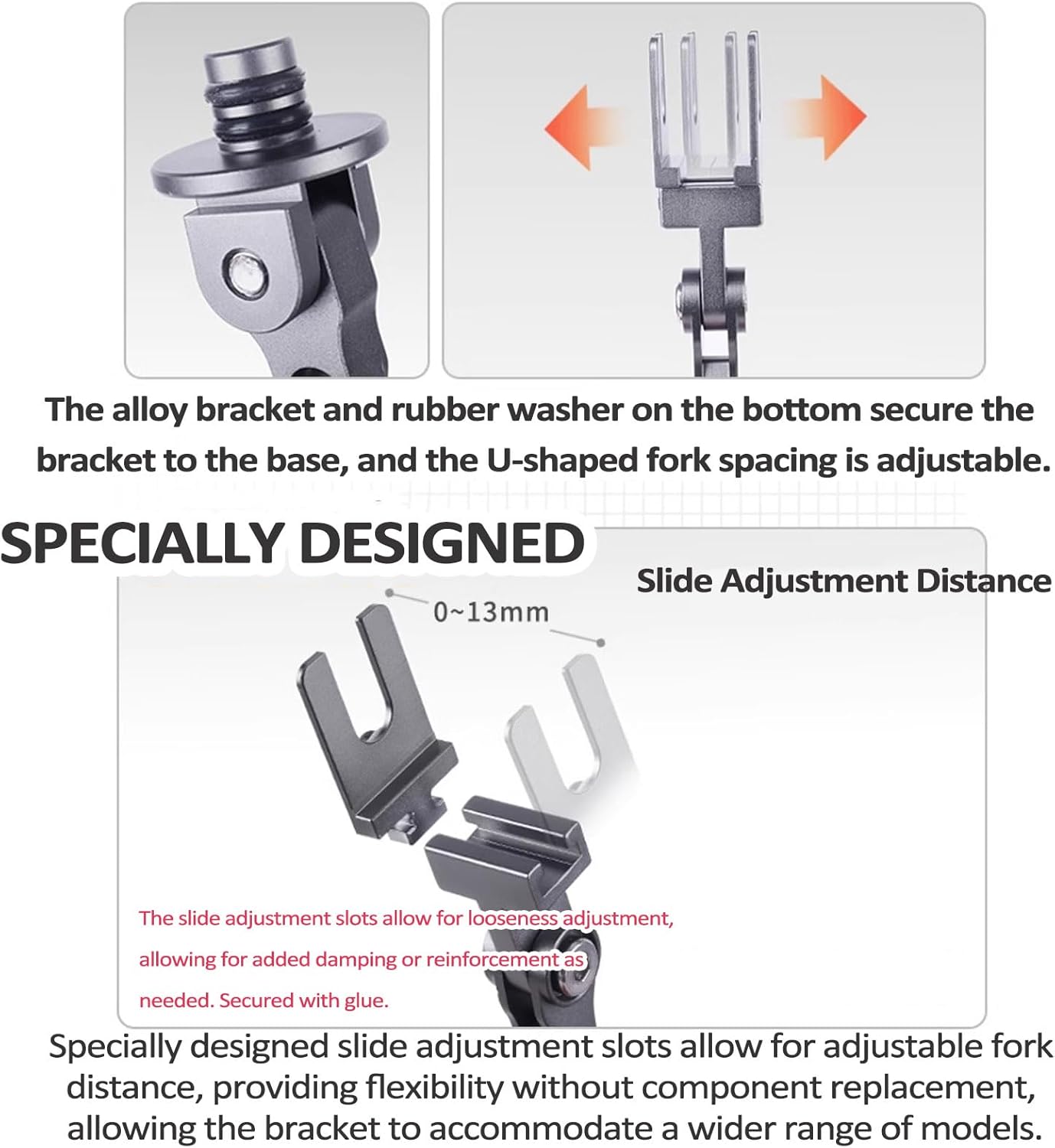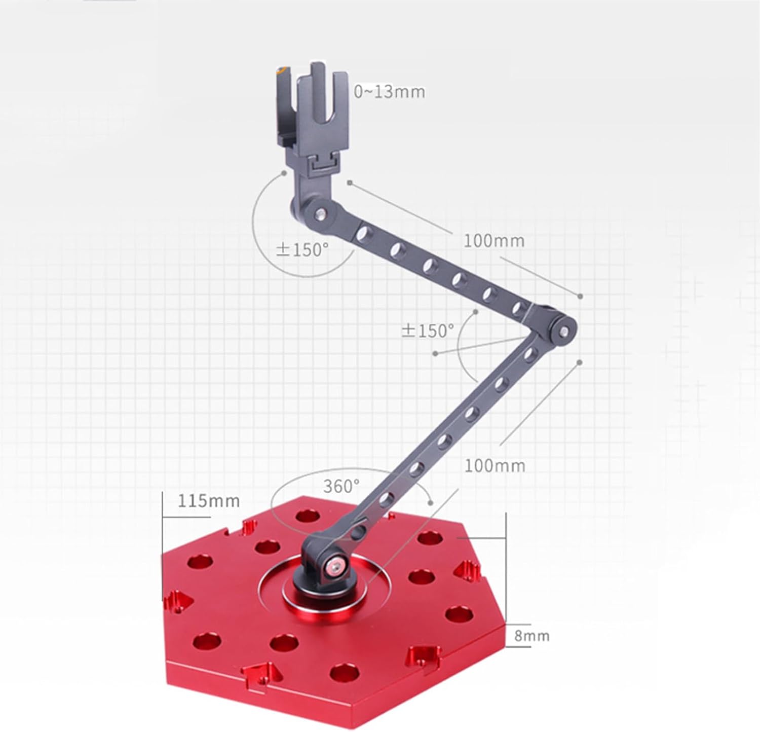 【Supporto in metallo】: realizzato in metallo lavorato a CNC, offre maggiore capacità di carico, stabilità e durata per un'esposizione stabile e attraente dei tuoi modelli. L'altezza e l'angolazione del supporto sono regolabili, facilitando il montaggio e lo smontaggio. Può essere combinato ed espanso per una presentazione più vivace. 【Base in lega】 La base in metallo monopezzo è stabile, portante ed espandibile. Una guarnizione in gomma sul fondo assicura che il supporto sia saldamente fissato alla base e il giunto può essere regolato con un cacciavite esagonale. 【Fori di inserimento multipli】 La base ha più fori identici, che consentono di regolare la posizione del supporto in base alle proprie esigenze. Puoi anche utilizzare più supporti su una base. Il giunto metallico incluso consente di collegare più supporti in modo continuo, semplificando la combinazione dei modelli e la visualizzazione in scene diverse. 【Supporto per spina】: regolabile a 140°, con un robusto bullone a martello in lega di alluminio e varie angolazioni. La guarnizione in gomma sul fondo assicura che il supporto sia saldamente fissato alla base, garantendo stabilità ed elevata capacità di carico per movimenti spettacolari del modello. 【Supporto a forcella a forma di U】 Fessure regolabili con distanza della forcella da 0 a 13 mm. Flessibile e adattabile ad un'ampia gamma di modelli senza la necessità di sostituire componenti. Le fessure consentono una regolazione ampia, fornendo ulteriore ammortizzazione o rinforzo. Attaccare con la colla.