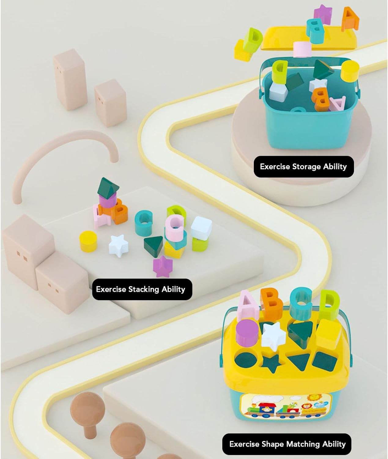 [COLORI VIBRANTI]: stimola i sensi del tuo bambino con colori vivaci che migliorano la percezione visiva e le capacità cognitive. [DESIGN ADATTO AI BAMBINI]: progettato con cura per adattarsi alle mani piccole, promuovendo lo sviluppo delle capacità motorie. [AIUTO PER L'ISTRUZIONE PRECOCE]: suscita curiosità e promuovi l'amore per l'apprendimento con attività interattive pratiche. [MATERIALI SICURI]: realizzati in materiale ABS e PP con bordi arrotondati manipolazione e un divertimento duraturo. [APPRENDIMENTO VERSATILE]: più che un semplice giocattolo, insegna colori, forme e dimensioni sviluppando abilità e pazienza.