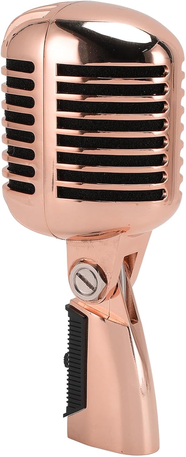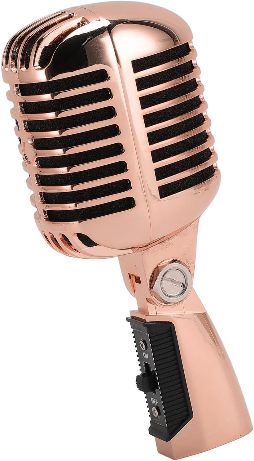 [Design classico] Il microfono dinamico retrò dona un tocco vintage con prestazioni moderne, ideale per KTV e canto sul palco. [Modello cardioide] Presenta un design direzionale cardioide per un'eccellente cattura del suono in ambienti rumorosi, migliorando la chiarezza vocale. [Materiale durevole] Costruito in resistente lega di zinco, questo microfono è resistente all'usura per un uso affidabile a lungo termine. [Posizionamento flessibile] Dotato di un rack girevole autotensionante che consente una regolazione di 45 gradi in avanti e di 80 gradi all'indietro. [Ampia risposta in frequenza] Offre prestazioni eccezionali con una risposta in frequenza di 50-18 KHz e una sensibilità di -50,50 ± 1 dB.