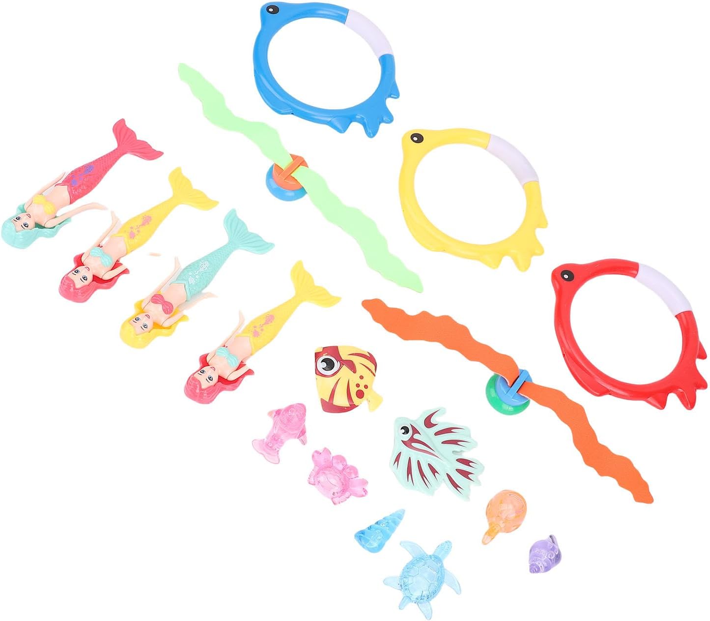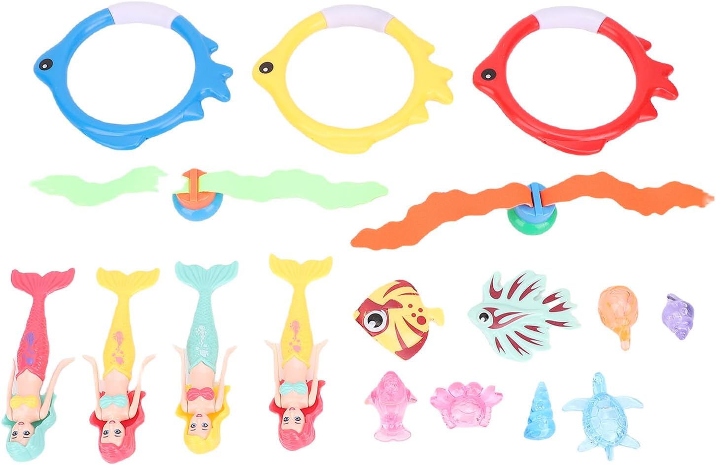 [EMOZIONANTE GIOCATTOLO SUBACQUEO] Immergiti nel divertimento con questo colorato kit di gioco subacqueo per bambini, progettato per piscine e spiagge. Incoraggia il gioco attivo e le capacità di coordinazione nelle piscine attraverso attività di cattura del pesce e raccolta degli anelli. Include anelli affondanti, pesci e accessori per molteplici varianti di gioco e sessioni estese in piscina. Ispira la creatività mentre i bambini cercano tesori sottomarini, migliorando le loro capacità di osservazione e pazienza. Realizzato in materiale plastico sicuro con angoli arrotondati per giocare senza preoccupazioni in piscine, spiagge e altre aree acquatiche.