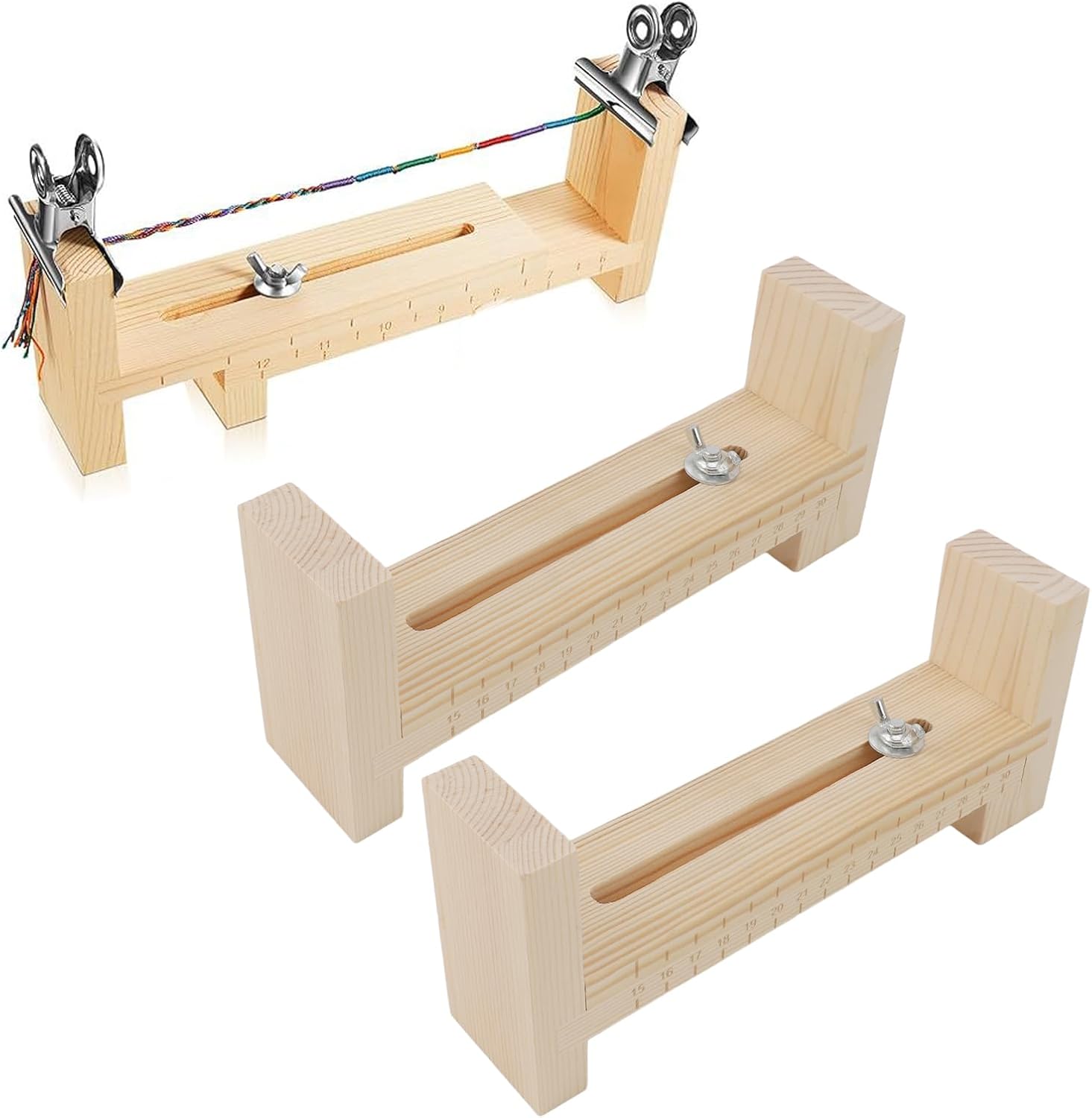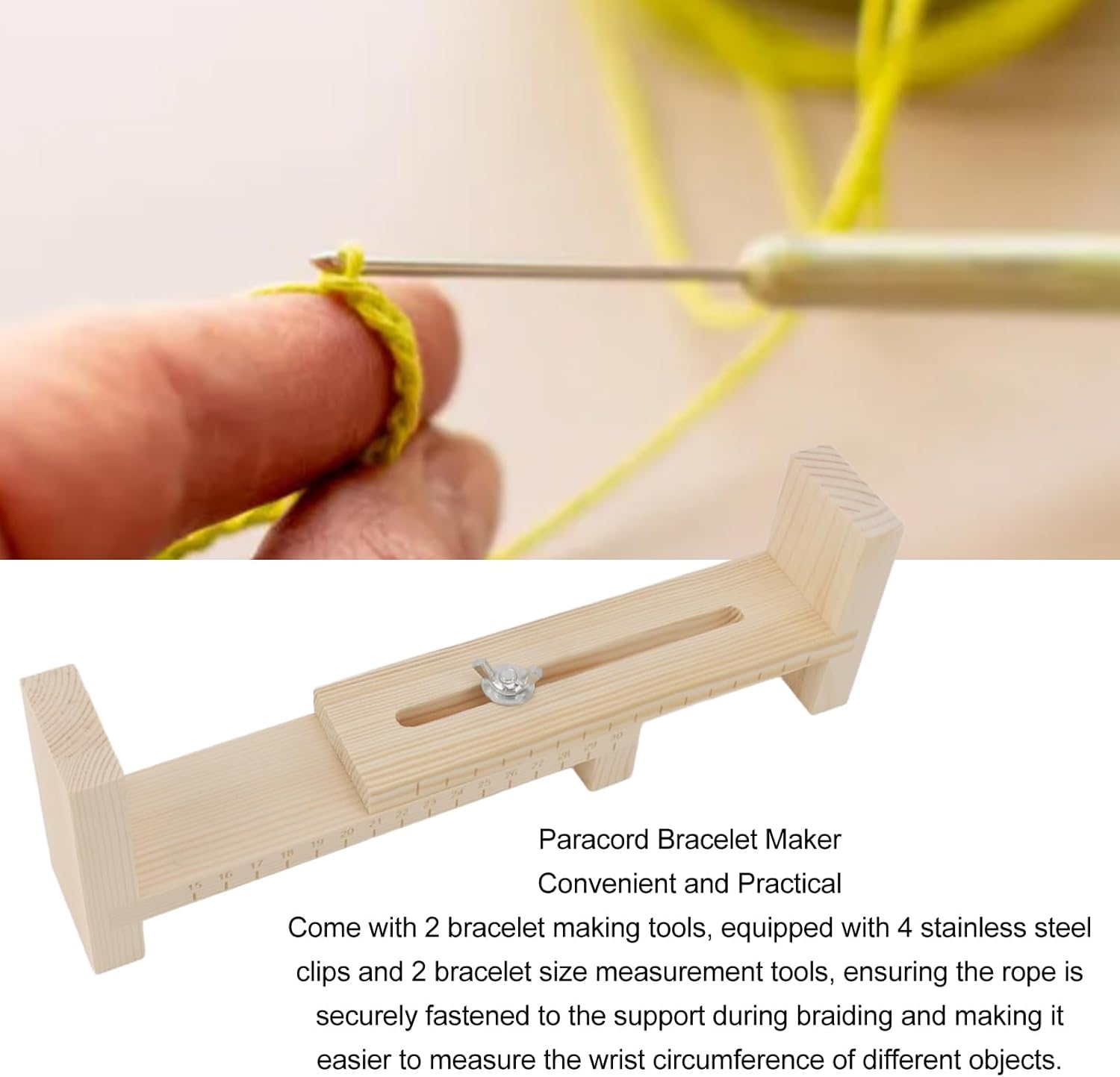 [DESIGN ROBUSTO] Realizzato in legno e acciaio inossidabile per affidabilità e durata, garantendo una presa salda sul braccialetto durante la lavorazione. [MISURA ACCURATA] Viene fornito con 2 strumenti per braccialetti e 2 strumenti di misurazione per tenere saldamente la corda e misurare la circonferenza del polso. [FACILE REGOLAZIONE] Le chiare indicazioni sulla scala consentono una facile regolazione della lunghezza del braccialetto per adattarsi a diverse dimensioni. [ANTISCIVOLO] La struttura stabile garantisce che lo strumento rimanga fermo sul tavolo anche quando è aperto per attività di bricolage senza problemi. [UTILIZZO VERSATILE] Ideale per realizzare braccialetti, cinture, cordini, portachiavi e altro per migliorare la creatività e le capacità artigianali.