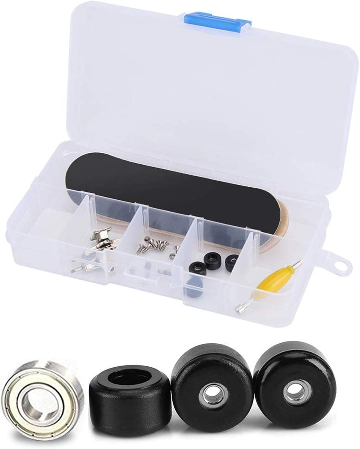 Contenuto: 1 kit fai da te per mini tastiera con scatola di immagazzinaggio, inclusa una copertura protettiva, un tappetino antiscivolo, 2 staffe, 4 ruote con cuscinetti, 4 dadi, 8 viti, 1 strumento per tastiera Mini tastiera: i pattini da dito professionali sono fissati alla scatola di immagazzinaggio e devono essere assemblati. In questo momento, devi creare la tua tavola unica, Materiali di qualità: la tavola è composta da 5 pezzi di legno di acero, che è più resistente di altre tavole di plastica. Suola antiscivolo in PU, supporto in lega di nichel e ruota di supporto professionale Dimensioni: 3,9 * 1,1 * 0,6 pollici / 10 * 2,8 * 1,5 cm, peso: 50 G. Regalo di Natale ideale: popolare tra gli skateboarder, è un regalo di Natale ideale per amici o bambini. D'ora in poi, allena le tue dita per coordinare e sviluppare il tuo cervello