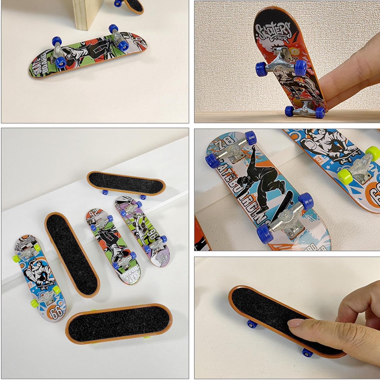 MIGLIORARE LA CREATIVITÀ: Vuoi migliorare la creatività e la destrezza di tuo figlio? Il nostro skateboard con dita è un giocattolo educativo, perfetto per lo sviluppo del tuo bambino. DESIGN ANTIDRATORE: skateboard con dita sono dotati di carta vetrata antiscivolo, che offre un migliore attrito per un maggiore controllo e precisione durante le figure, e maggiore fiducia nella presa. Metallo resistente: il nostro skateboard con dita è progettato con un robusto pannello in ABS e un supporto in lega, che può essere utilizzato per un lungo periodo senza deformazioni. FACILE DA USARE: Immergiti nel mondo dello skateboard con le dita con questo skateboard facile da usare con ruote e cuscinetti testurizzati. Ottimo regalo: che si tratti di Natale, festa del giorno o del Ringraziamento, il nostro skateboard con le dita è un'ottima opzione regalo per gli amici, gli amanti dello skate.