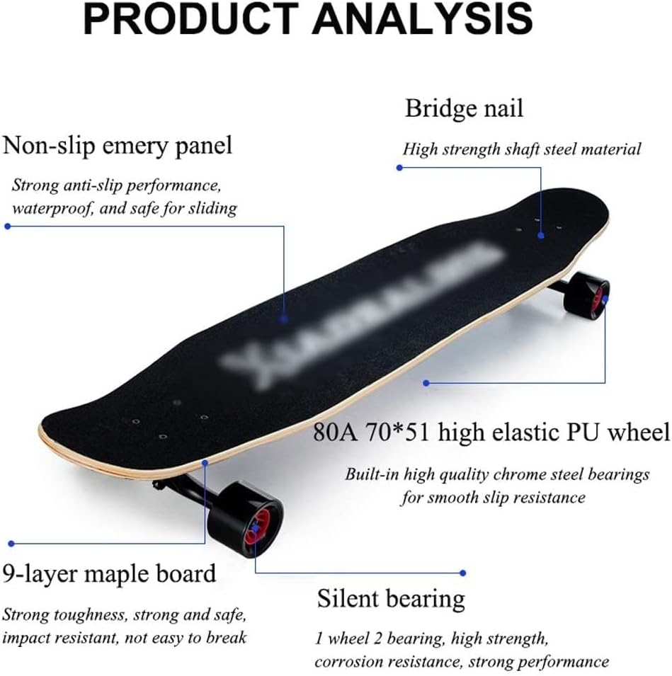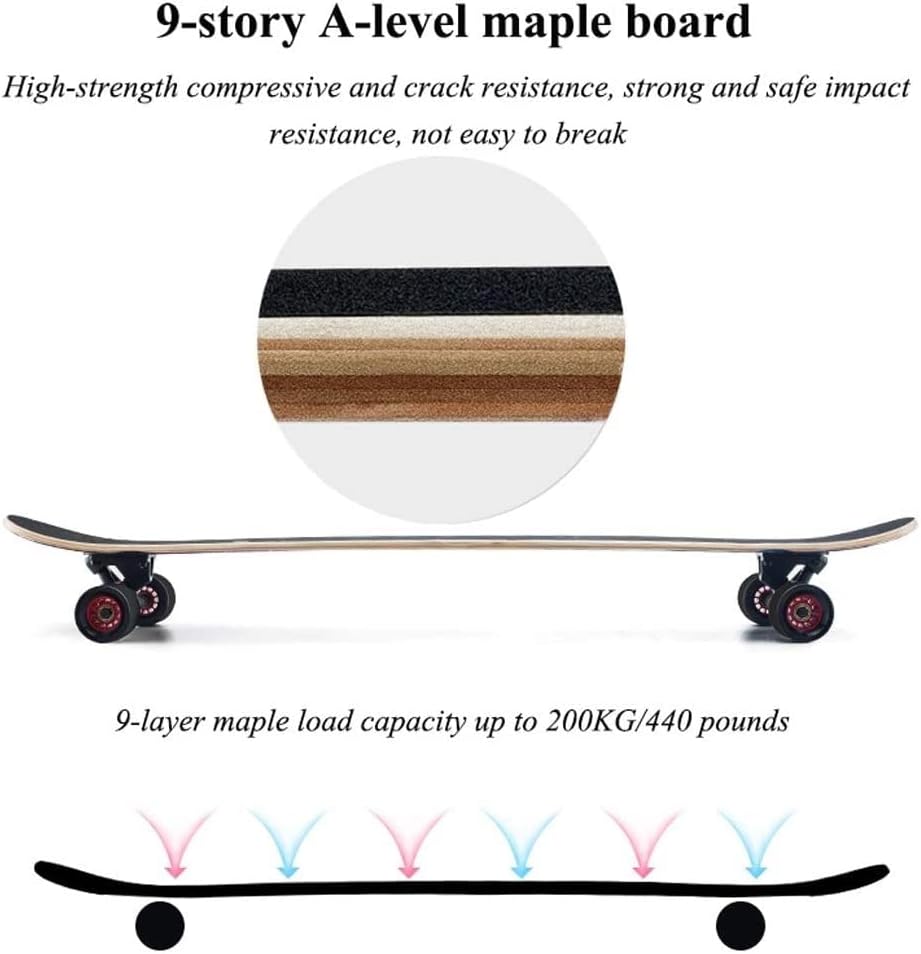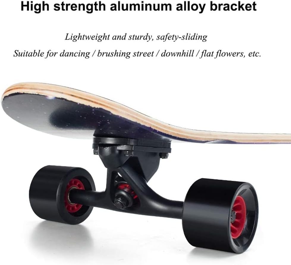 4. Assemblaggio completo con kit di riparazione All'apertura della confezione appariranno uno strumento completo di regolazione scorrevole e multifunzione e 2 cuscinetti. Quindi goditi lo skateboard senza dover assemblare, questo skateboard longboard è il regalo perfetto per ragazzi e ragazze. 5. Garantire la soddisfazione del cliente. Se hai domande su questo skateboard o non sei soddisfatto dei nostri prodotti, non esitare a contattarci e ti forniremo prima la soluzione migliore. Non devo nemmeno ordinare! Possiamo fornirti qualsiasi altra assistenza. 3. Quattro ruote in PU ultra-lisce e antiusura con cuscinetti di precisione ABEC-11 per un funzionamento molto fluido. Le staffe in alluminio di alta qualità supportano un peso maggiore e velocità più elevate, fornendo una presa costante e potente durante il pattinaggio di ragazzi e ragazze o adulti, rendendo la guida più sicura. 1. La superficie concava da 47 "x 9,6" e una superficie concava a doppio taglio molto liscia sono perfette per i principianti per eseguire l'allenamento di base e offrono eccellenti prestazioni acrobatiche e un migliore controllo per lo skateboard. Questo skateboard è perfetto per principianti e professionisti con alcune acrobazie di base e altri trucchi. 2. Il ponte in acero a 9 strati ad alta densità è robusto e durevole, con un perfetto equilibrio tra robustezza e peso. Ha una superficie antiscivolo in corindone che fornisce una presa stabile e potente mentre si pattina con un carico massimo di 440 libbre. Adatto per sport estremi e sport all'aria aperta.