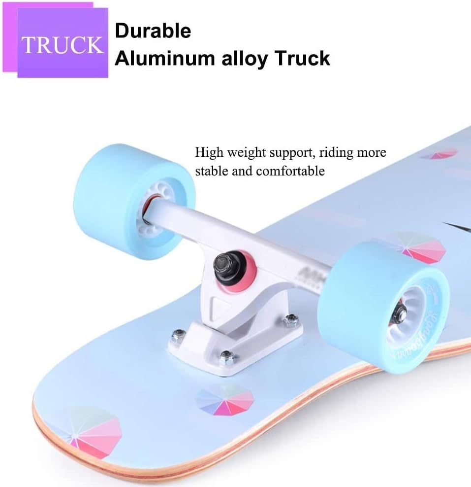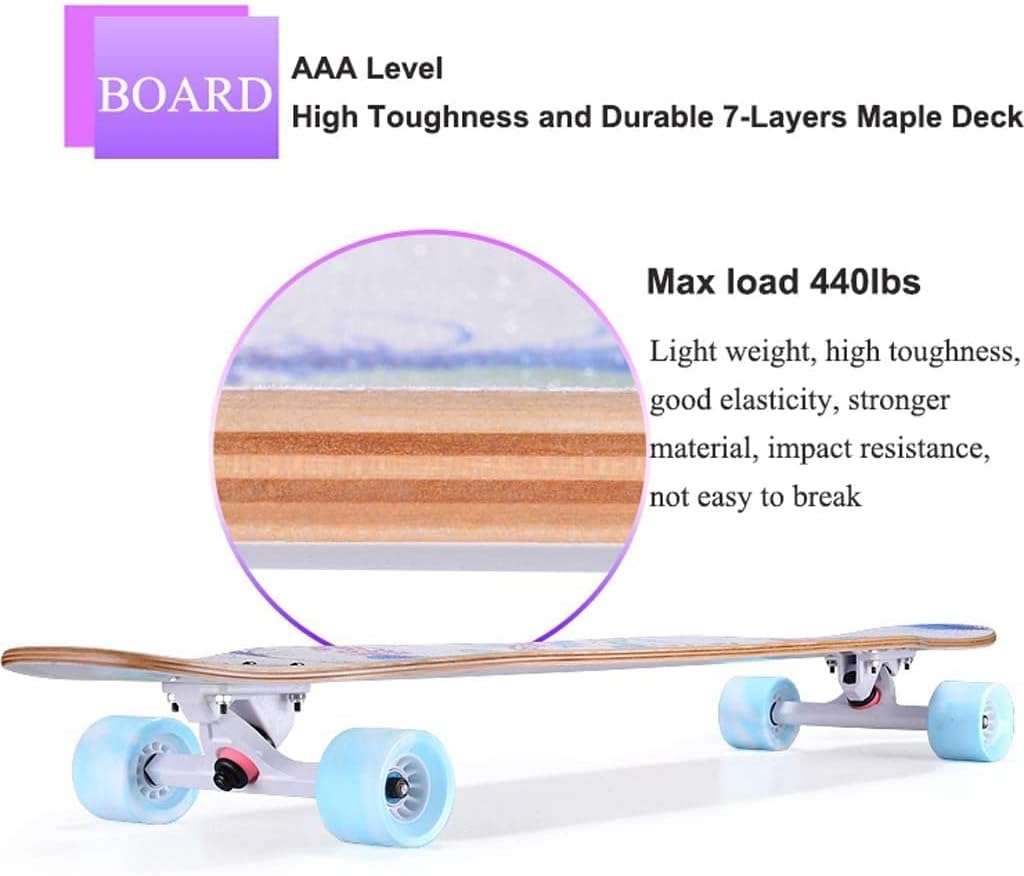 4. Dal momento che sappiamo quanto i bambini entusiasmano i giocattoli, li assembliamo. Il suo design ultra-leggero rende lo skateboard per principianti facile da trasportare e può essere utilizzato immediatamente! Lo skateboarding è l'ideale per praticare abilità o costruire la fiducia dei bambini. È perfetto per la scuola, il lavoro o i brevi pendolari. 1. Lo skateboard completo da 43 pollici è realizzato con 7 strati di legno di acero, che è forte e ha una buona elasticità. Può offrirti flessibilità e forza per ottenere un'esperienza di guida stabile e di alta qualità. Lo skateboard con un carico massimo di 440 libbre è adatto per adulti, bambini, principianti e professionisti. 5. Lo skateboard standard è adatto per sport estremi e sport all'aperto. È un regalo ideale per ragazzi, ragazze, familiari e amici per compleanni, Natale, Ringraziamento, San Valentino e altre occasioni. Adatto per gli appassionati di skateboard su strade di pattinaggio, piste di ghiaccio, rampe, piscine e altre superfici lisce o addirittura ruvide. 3. 4 ruote PU 80A resistenti agli urti ultra-lisci e resistenti all'abrasione, dotate di cuscinetti in acciaio cromata ad alta velocità ABEC-11 e boccole PU, possono fornire una guida molto fluida. I camion in lega forniscono una presa stabile e potente durante il pattinaggio per ragazzi e ragazze o adulti. 2. Il design concavo professionale e completo nel mezzo dello skateboard lo rende una scelta ideale per principianti e cavalieri professionisti. Il ponte non slip largo 9 pollici può offrirti una maggiore stabilità e sicurezza. L'Emery non slip e impermeabile sopra il mazzo non è facile cadere, offrendoti un'esperienza di guida sicura.