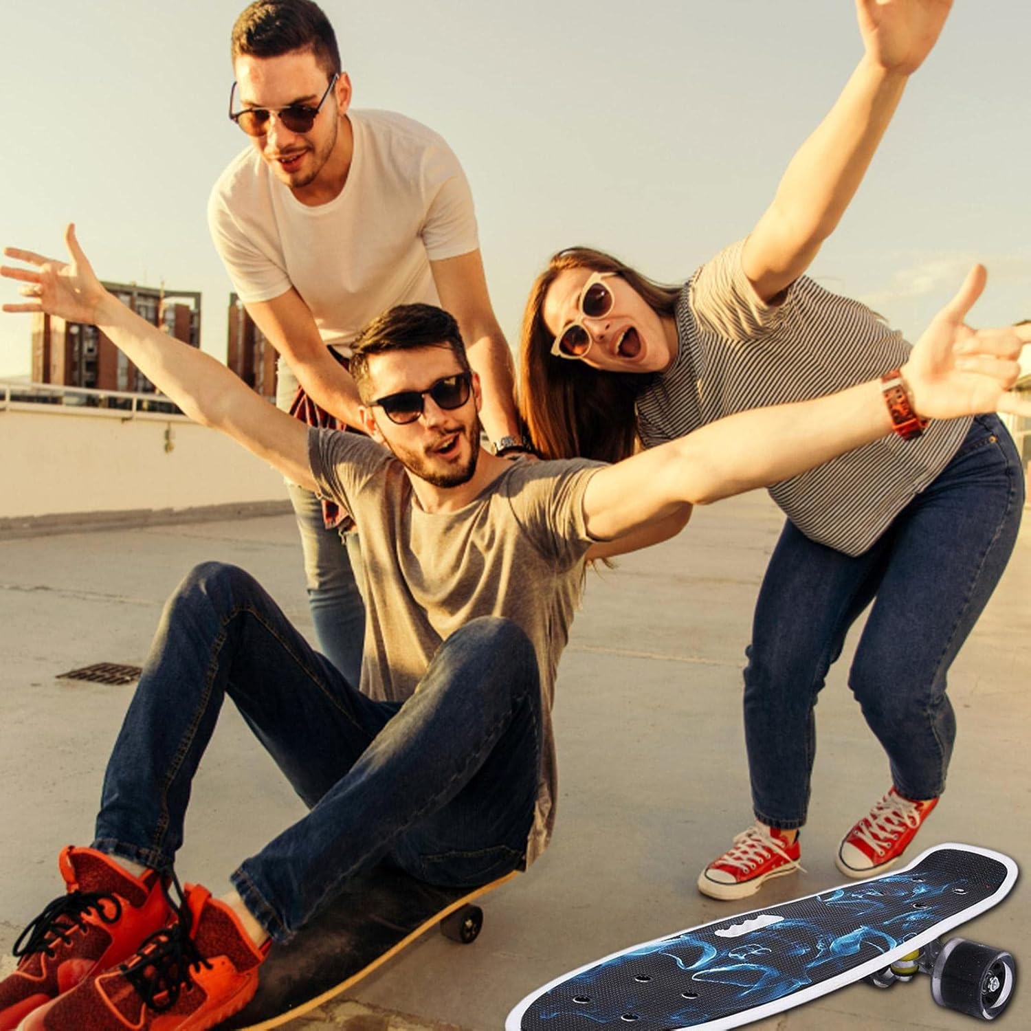 Materiali di alta qualità: ha un'elevata resistenza e capacità di carico, gli skateboard per principianti offrono una presa forte e affidabile, la capacità massima di carico può raggiungere i 150 kg, realizzato in poliuretano di alta qualità. Ampia gamma di utilizzi: ha eccellenti proprietà di assorbimento degli urti, gli skateboard per adolescenti sono dotati di ruote in PU e ammortizzatori in poliuretano per offrire un'esperienza di guida fluida. Ampiamente utilizzato: lo skateboard per ragazzi viene fornito con tutti gli accessori necessari ed è ideale per pendolarismo, rampe, skatepark, strade, piscine e altro ancora. Rendi facile per i principianti imparare più abilità. Ampia compatibilità: adatto sia per principianti che esperti, lo skateboard per bambini è adatto a ragazze, ragazzi, adolescenti, adulti, può fare viaggi di base o fare alcuni trucchi. Ottima idea regalo: lo skateboard per bambini può essere regalato ai vostri cari bambini, familiari o amici, è un ottimo regalo sportivo e può portarvi il divertimento di intrattenimento all'aperto.