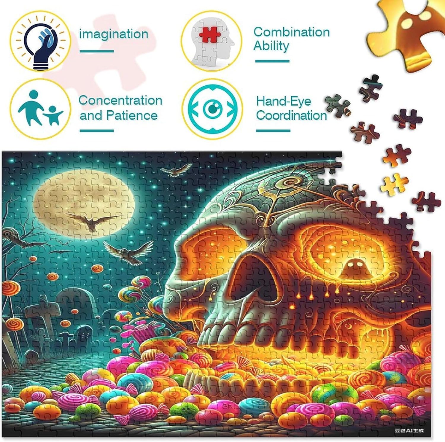 🌸GIOCHI PER ADULTI: una sfida emozionante da regalare a tutti li appassionati di puzzle e amanti dell'arte, ideale per uomo, donna o ragazzi; i puzzle aiutano a esercitare la memoria, migliorano la concentrazione e stimolano l'intuizione 🌸QUALITÀ PREMIUM: il massimo del divertimento con prodotti di altissima qualità in termini di materiali, motivi e design; realizzati in legno tagliati con fustelle fatte a mano, per un risultato impeccabile 🌸Buon regalo: il Halloween Skeleton puzzle finito misura 38x26cm/1000pcs una volta completato. I migliori regali per ragazzi e ragazze dai 14 anni in su per compleanni o festività (Natale, Halloween, Ringraziamento, ecc.) 🌸Concediti una piacevole pausa relax! La nostra linea di puzzle da Skeleton 1000 pezzi è il regalo perfetto per chi ama ritagliarsi un momento di svago e di relax mettendo alla prova le proprie abilità logiche e di concentrazione 🌸I nostri Puzzle ti offrono un'ampia scelta d'immagini capace di soddisfare i gusti di tutti: grazie alla qualità dei materiali riciclati, la robustezza e resistenza dei singoli pezzi insieme alla brillantezza dei colori, ti garantiamo un risultato impeccabile e privo di riflessi