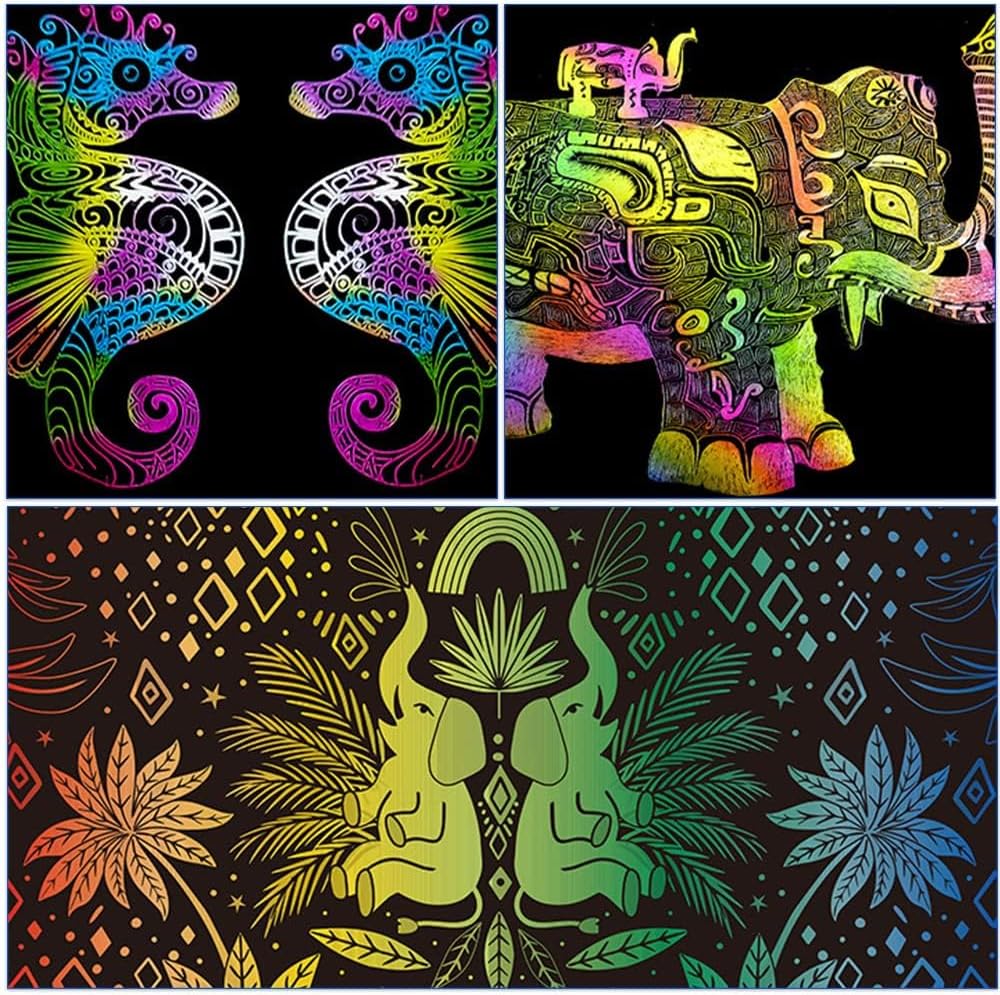 Intaglio di Colori Magici: La Sketch Art Paper è ampiamente compatibile con macchine per incisione e marcatura laser e aggiunge colori vivaci ai tuoi motivi di incisione. Si consiglia di impostare i parametri della macchina per incisione laser (velocità 4500-5000, potenza 10%-15%). Diversi Modi per Giocare: Ogni confezione di Scratch Art Paper include una penna per grattare e scrivere, oppure puoi usare i motivi nel software della macchina per incisione per creazioni fantasiose. Puoi anche tagliarla in diverse forme. 6 Tipi Disponibili: Creatorally ha preparato 6 tipi di Scratch Carta Regalo, che possono mostrarti diverse sensazioni di colore, vale a dire: arcobaleno, 5 colori (tra cui verde fluorescente, rosso, blu, giallo brillante e bianco), arcobaleno laser, argento laser, brillante e oro + argento. Formato A4 Grande: 28 x 20,8 cm (11 x 8,2 pollici) è relativamente più comodo, contiene fogli di Sketch Art Paper formato A4 sufficienti, che possono essere tagliati in base alle proprie esigenze, più convenienti. Regalo Unico Artigianale: La carta da grattare è un regalo artigianale divertente e creativo per chiunque, adatto per compleanni, bomboniere, Halloween, Natale, Pasqua, Ringraziamento, festa del papà, festa della mamma, eventi scolastici e gite all'aperto, ecc.
