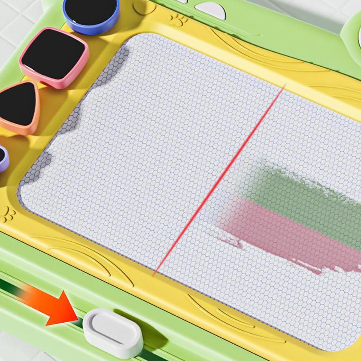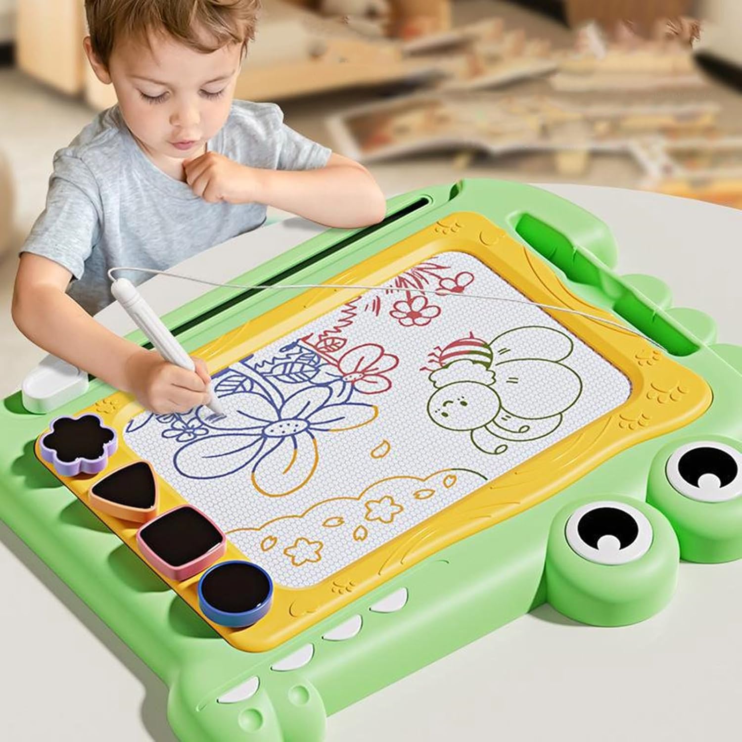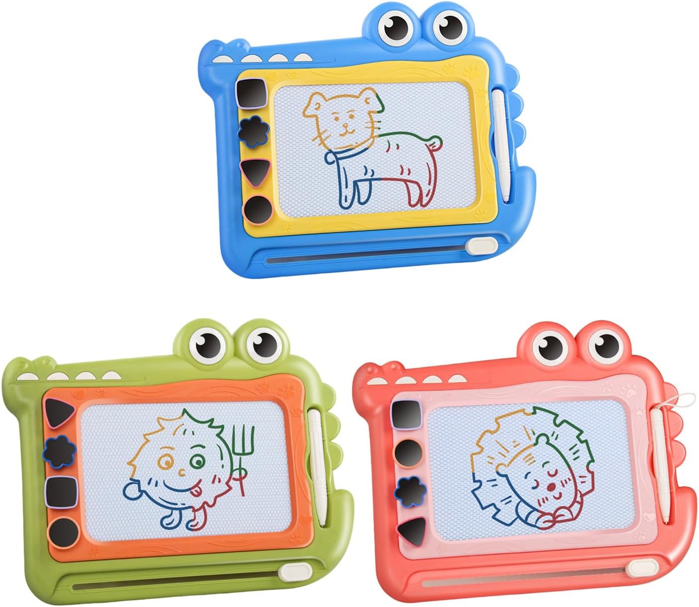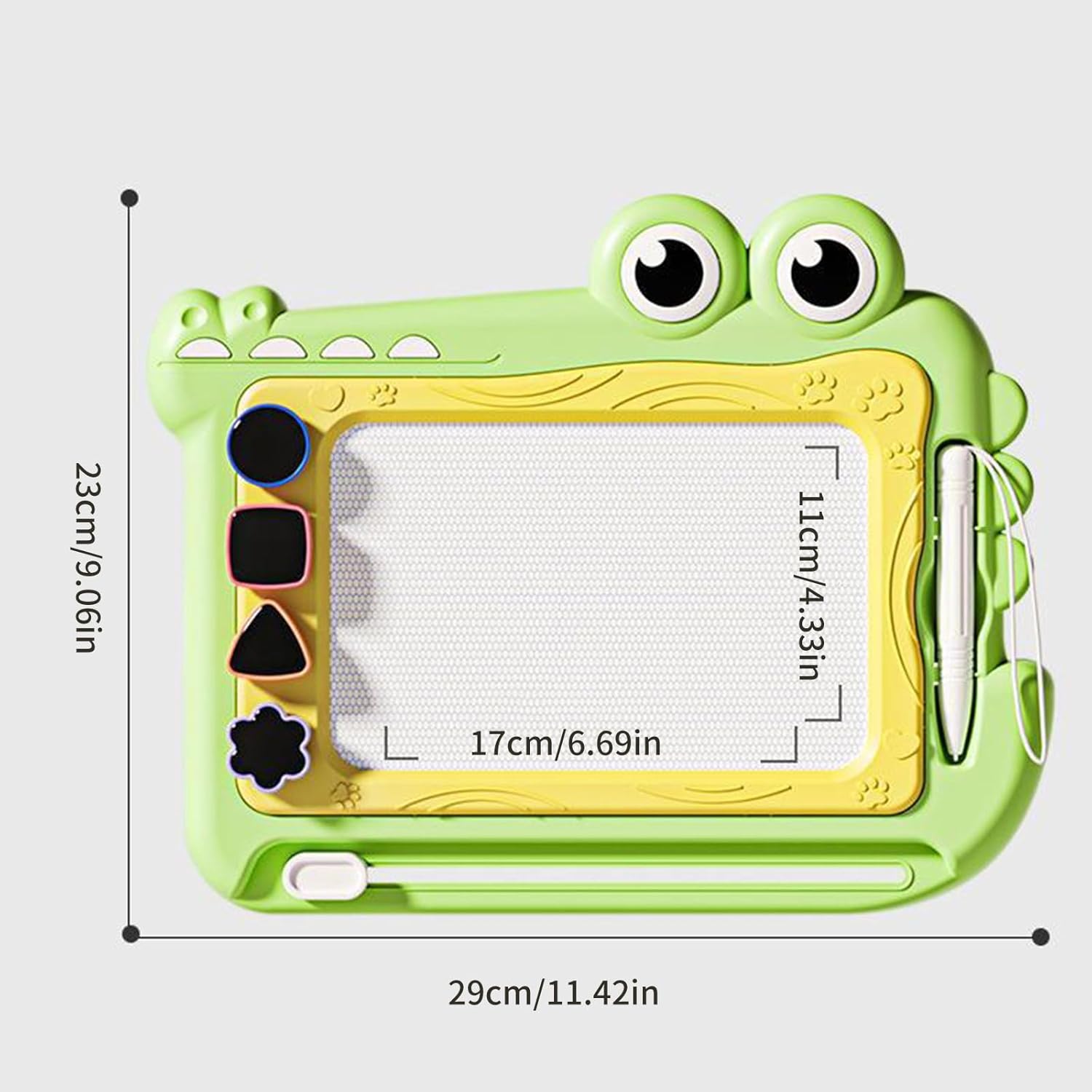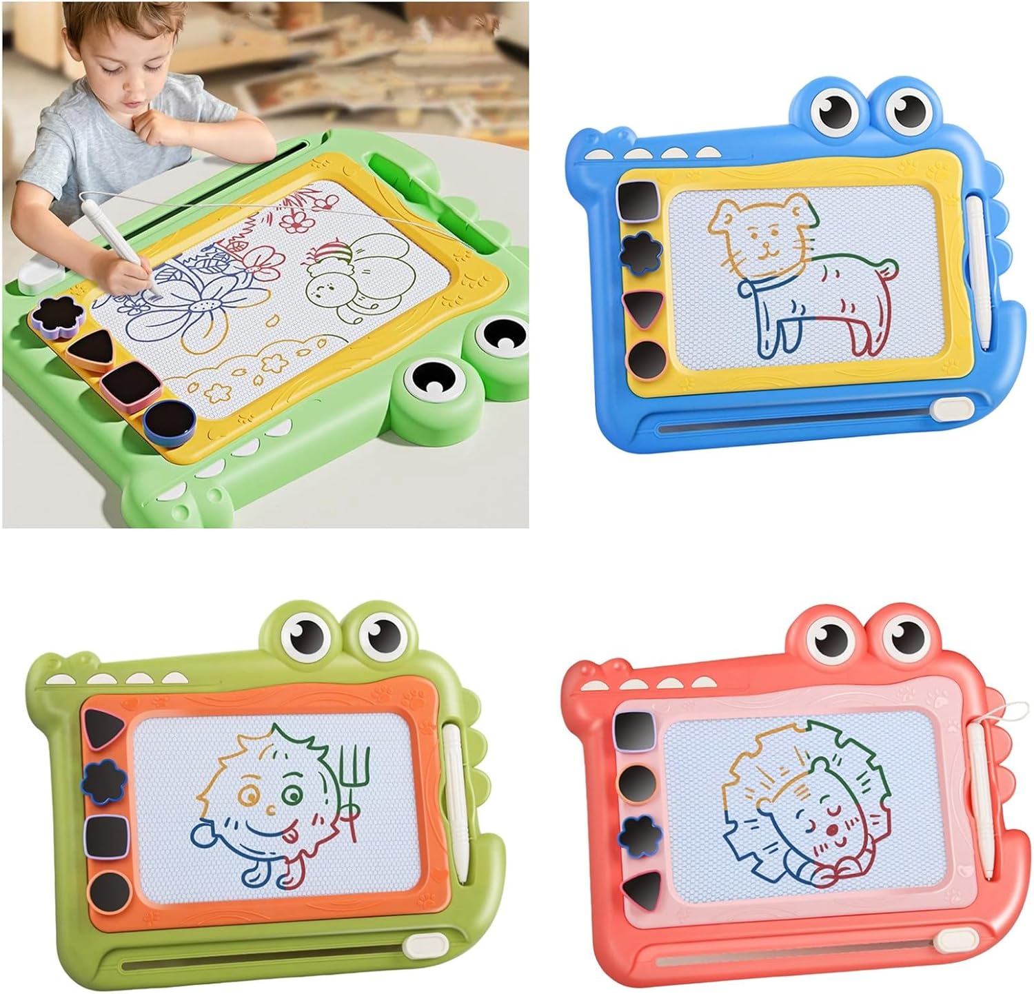 Questo colorato tavolo da disegno magnetico presenta un vivace design a dinosauro e una superficie liscia cancellabile, in modo che i bambini dai 2 ai 7 anni possano esplorare la creatività attraverso la scrittura/disegno riutilizzabili e allo stesso tempo soddisfare gli standard di sicurezza dei bambini Plastica con memoria magnetica della penna e leggera dimensione da viaggio consente un'espressione artistica infinita con quattro opzioni di colore brillante utilizzando la tecnologia di disegno magnetico Promuove lo sviluppo delle capacità motorie con disegno magnetico sensibile alla pressione e offre un gioco senza carta che riduce gli sprechi attraverso migliaia di attività artistiche riutilizzabili Giocattolo di sviluppo perfetto per ragazze e ragazzi in età prescolare (2-5 anni) Lettera educativa/forme e bambini (6-7 anni) praticano espressione creativa attraverso attività artistiche portatili Ideale per viaggi in auto, viaggi aerei, ristoranti e aule. Compact Drawing Tablet si adatta facilmente agli zaini per l'intrattenimento Go e pratica educativa