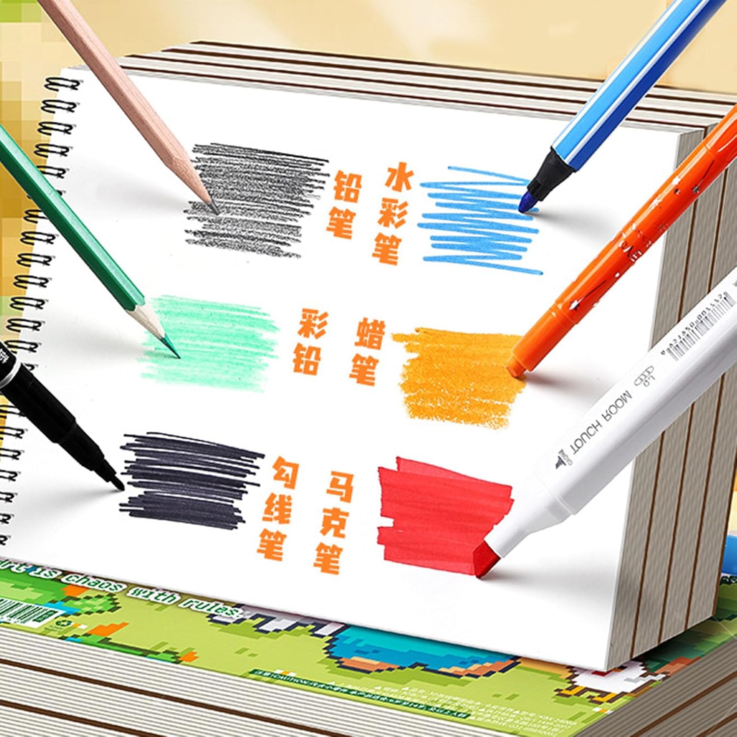 Perfetto per artisti, progetti scolastici e illustratori professionisti che cercano album da disegno affidabili per compiti in classe, studi domestici o arte Ogni blocco da disegno amichevole utilizza carta sicura per i bambini con rilegatura a spirale rinforzata e pagine vuote che offrono superfici lisce per una creatività senza restrizioni Abbastanza compatto per viaggiare ma resistente per avventure di schizzi all'aperto, queste forniture artistiche in caffè, parchi o durante laboratori creativi che richiedono portatile Il set premium da 50 fogli a prova di sbavatura presenta carta spessa, non trasparente, ideale per acquerelli, pennarelli e forniture artistiche miste, eliminando le frustrazioni di infiltrazioni di colore Il peso della carta resistente agli strappi (120 g/m²) e il design piatto ospitano tecniche di colorazione vigorose preservando la finitura in blocco da disegno professionale