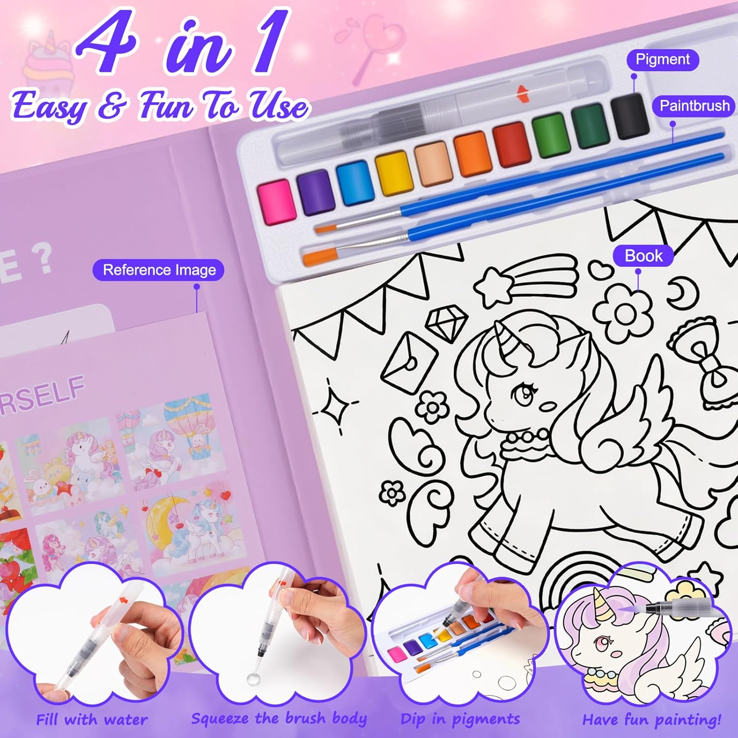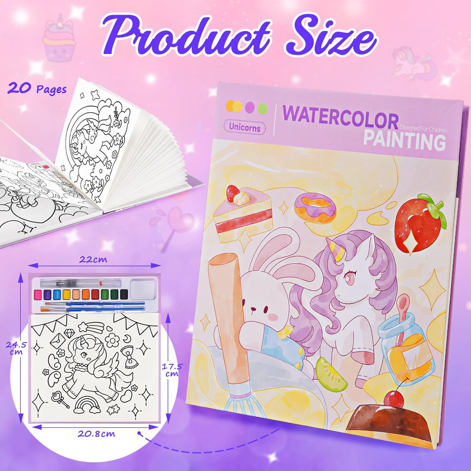 🎨 Creativo Libro da Colorare ad Acqua Bambini - L'innovativo design 4 in 1 combina colori, pennelli, stencil e un libro da colorare in un unico pacchetto. È chiaramente etichettato "Designed For Children" ed è specificamente pensato per i bambini in termini di contenuti e difficoltà. È facile da usare, quindi i bambini possono iniziare a dipingere facilmente seguendo i stencil da colorare inclusi, oppure possono scegliere i propri colori e dare libero sfogo alla loro creatività! 🎨 Tema Unicorn Fantasy - SKYYUE libro da colorare con colori ad acqua contengono 20 pagine con gli unicorno preferiti dai bambini come tema principale, abbinati a simpatici coniglietti e deliziosi dessert (torte, ciambelle, frutta, ecc.). Le immagini sono piene di infanzia e sogni, riflettendo l'amore dei bambini per la fantasia e le cose belle! I più piccoli possono creare il loro paradiso fantastico e raccontare le loro storie uniche! 🎨 Libro di Pittura ad Acqua di Alta Qualità - Questo libro di pittura ad acqua per bambini con pennello è realizzato in carta extra spessa, tre volte più spessa della carta normale, impedendo efficacemente la penetrazione dei pigmenti. Questo prodotto è composto da 10 robusti blocchi di acquerello, ciascuno del peso di 2,6 grammi, sono più spessi e più grandi di altri prodotti. I pennelli per acquerello di alta qualità sono progettati per le manine dei più piccoli e sono facili da impugnare, così ogni bambino può diventare un piccolo artista dell'acquerello! 🎨 Educativo e Divertente - Praticare la libri da colorare con acqua può coltivare la sensibilità dei bambini verso il colore e la forma, aprire la strada all'illuminazione nella creazione artistica e stimolare il loro interesse per la pittura. Allo stesso tempo, può sviluppare le capacità motorie fini e la coordinazione occhio-mano, l'immaginazione, la creatività e la concentrazione in modo interessante. Rendi l'apprendimento più divertente e di' addio al tempo trascorso davanti allo schermo! 🎨 Regalo Perfetto - Questo squisito libri di pittura ad acquerello con pennello per bambini piccoli misura 220 * 245 * 17 mm / 8,66 * 9,65 * 0,67 pollici, il che lo rende la dimensione perfetta per viaggiare o andare in campeggio, permettendo al tuo bambino di creare opere d'arte sempre e ovunque. I nostri libri ad acquerello per bambini sono regali perfetti per bambini di 3, 4, 5, 6, 7, 8 anni come regali di compleanno, regali di Natale, regali del Ringraziamento, premi di classe, giocattoli da viaggio, ecc. I tuoi bambini lo adoreranno!