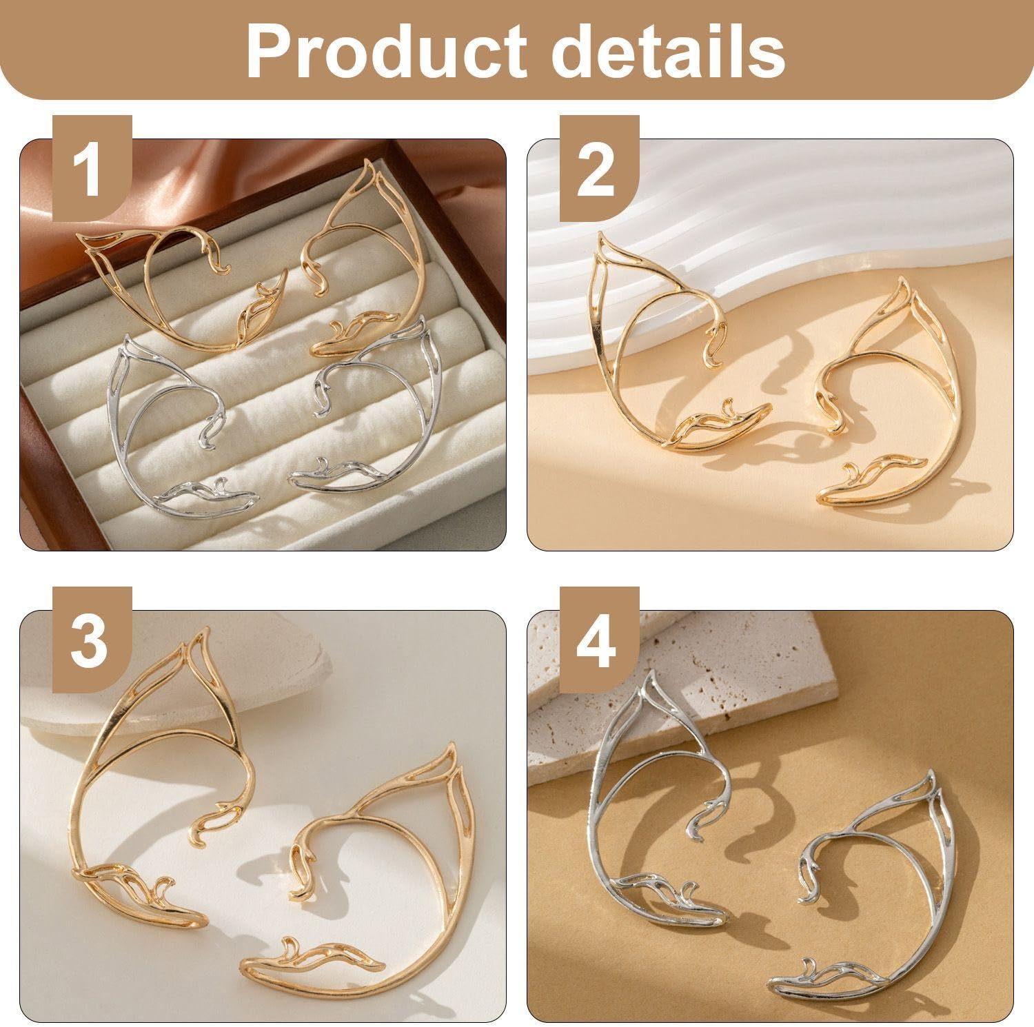 Descrizione prodotto Caratteristiche Dettagliate Fili Per Orecchie Da Elfo Bicolore Materiale: Lega Colore: Argento, Oro Dimensioni: 7 X 4, 3 Cm Quantità: 2 Paia Caratteristiche 1. Questi Orecchini Sono Progettati In Stile Elfo, Aggiungendo Moda E Personalità. 2. Design Senza Unghie, Comodo Da Indossare, Non Facile Da Sfilare, Adatto A Diverse Forme Di Orecchie E All'Uso A Lungo Termine. Avviso di sicurezza No