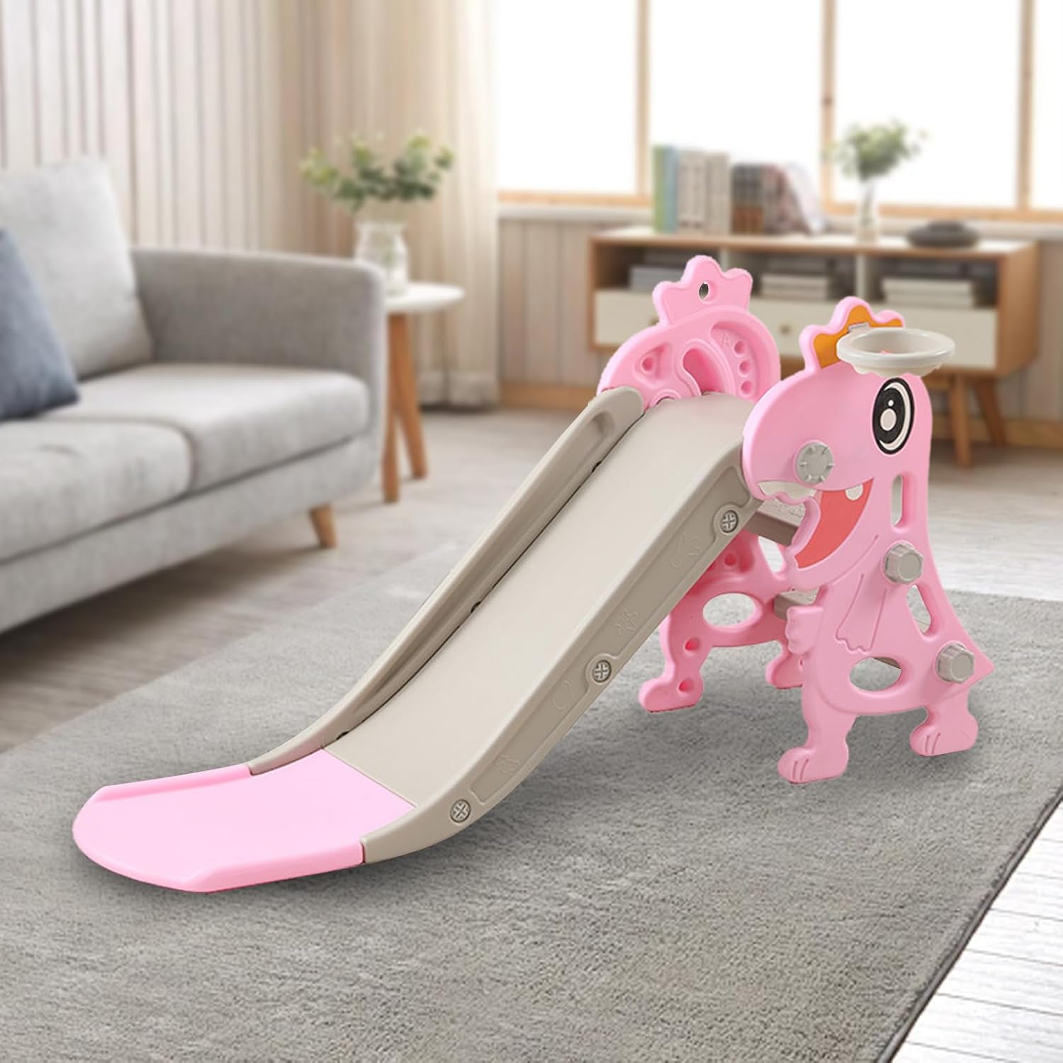 [Sturdy & Safe Construction] realizzato con materiale PE ecologico premium, questa diapositiva per bambini garantisce una durata e sicurezza eccezionali per giochi di gioco. Il design robusto resiste a un uso attivo fornendo un ambiente sicuro per i bambini di età compresa tra 1 e 8 anni. I genitori possono fidarsi dei materiali non tossici e sicuri per bambini che soddisfano rigorosi standard di sicurezza per il gioco senza preoccupazioni. [Centro di gioco multifunzionale] Questo entusiasmante gioco di gioco combina una diapositiva, scalatore e un cerchio da basket per il massimo valore di intrattenimento. I bambini godono di varie attività dal scivolare giù per la rampa a forma di dinosauro per sparare a cerchi e arrampicarsi sulle robuste scale. Il design integrato promuove ore di gioco attivo incoraggiando lo sviluppo fisico e le avventure fantasiose. [Ultimate Stability Design] Ingegnerizzato con un'ampia base e una costruzione anti-punta, questo diapositivo rimane saldamente in posizione durante il gioco vigoroso. Le scale non slittate e le rotaie di guardia sicure forniscono ulteriori misure di sicurezza, consentendo ai bambini di giocare con fiducia. Il design ponderato impedisce il vacione o il mutevole, garantendo una superficie di gioco stabile per bambini energici. [Assemblaggio rapido e archiviazione] Progettato per comodità, questa diapositiva interna si assembla senza sforzo con istruzioni chiare e tutto l'hardware necessario incluso. Il design pieghevole a risparmio spaziale rende semplice l'archiviazione quando non in uso. Trasforma qualsiasi stanza in un parco giochi istantaneo senza installazione permanente - per case, giorni o sala giochi. [Benefici per il gioco dello sviluppo] Questa diapositiva innovativa promuove capacità di sviluppo infantile cruciali tra cui equilibrio, coordinamento e capacità motorie. Le azioni di arrampicata e scorrevole rafforzano i muscoli mentre il cerchio di basket migliora la coordinazione occhio-mano. I bambini acquisiscono fiducia attraverso sfide fisiche mentre si impegnano in un gioco sano e attivo.