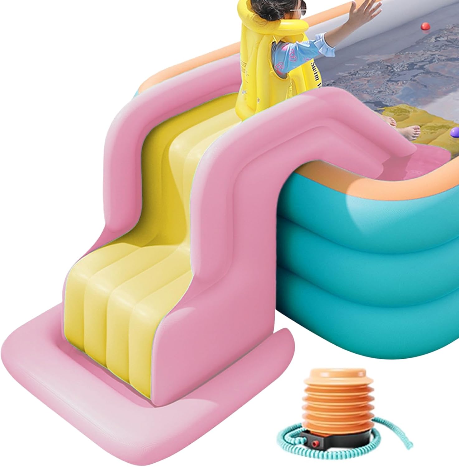 Studio robusto: la base di questo scivolo gonfiabile per i bambini è ispessita e l'area è ampliata per la stabilità. Non si ribalterà facilmente. Le vetrini sono allungate per un maggiore divertimento scorrevole. Nessun problema: lo scivolo d'acqua gonfiabile per i bambini ha una base vuota che può essere riempita con acqua o aria per un supporto stabile. Puoi gonfiare facilmente la diapositiva con una pompa e goderti il divertimento. Migliora il gioco 'acqua: questo scivolo gonfiabile è un modo semplice e conveniente per trasformare la tua piscina di terra in un acquatico pieno di divertimento, lasciando che i tuoi bambini si divertano a scivolare e schizzare in casa o all'aperto. Adatto a qualsiasi tipo di piscina: puoi usare questo diapositiva d'acqua con qualsiasi piscina che hai, che si tratti di una piscina gonfiabile, una piscina interrata o una piscina a terra, portandoti molto divertimento Durevole e resistente all'usura: questo scivolo gonfiabile è progettato per fornire ai tuoi bambini ore di divertimento ed eccitazione. È realizzato con materiali in PVC di alta qualità che sono lisci, resistenti ai graffi, inodore e sicuri.