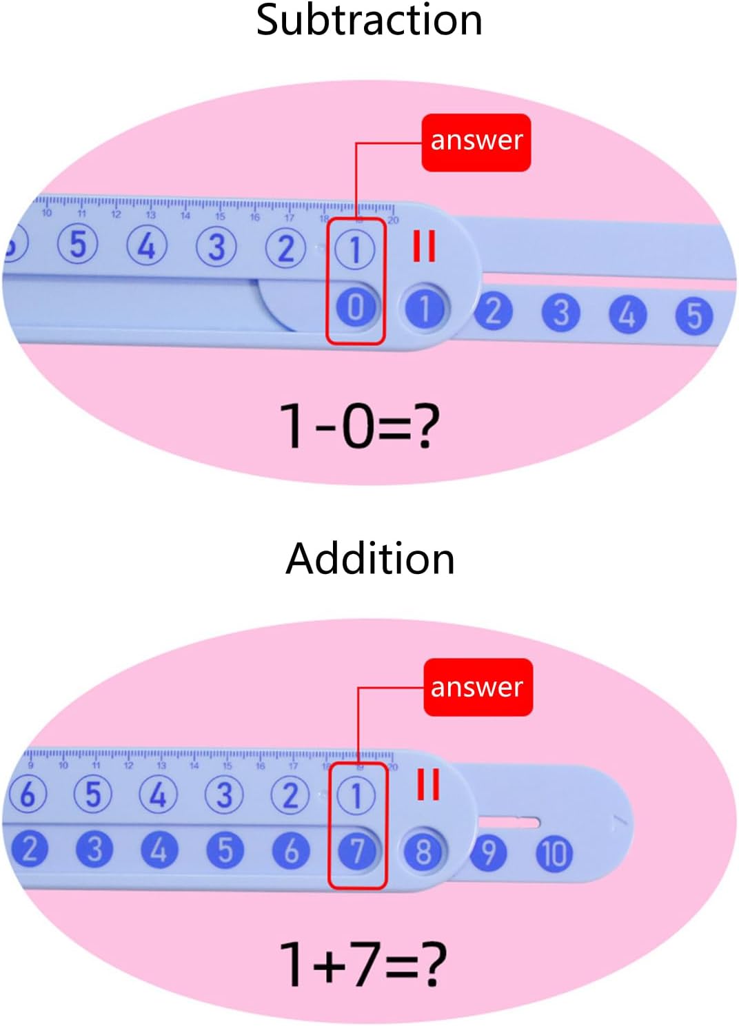 Ideale per insegnanti, genitori e studenti. Ognuno migliora le proprie abilità matematiche da questo pratico strumento. Questo strumento è perfetto per gli studenti visivi e offre un modo tattile per comprendere i concetti matematici. La sua funzionalità 2 consente un insegnamento più efficiente ed efficace. Usa questo strumento in classe oa casa per insegnare concetti matematici in modo eccitante. La dimensione compatta facilita facile immagazzinare e trasportare. Uno strumento versatile per la formazione matematica! Questo aiuto didattico 2 in 1 fornisce un sovrano scorrevole e una ripartizione dei numeri perfetti per i bambini e la sottrazione. Questo strumento di plastica sicuro e durevole e dotato di bordi arrotondati e caratteri chiari e non inclinabili. spessore assicura che le aule o la casa resistano ad un uso frequente.
