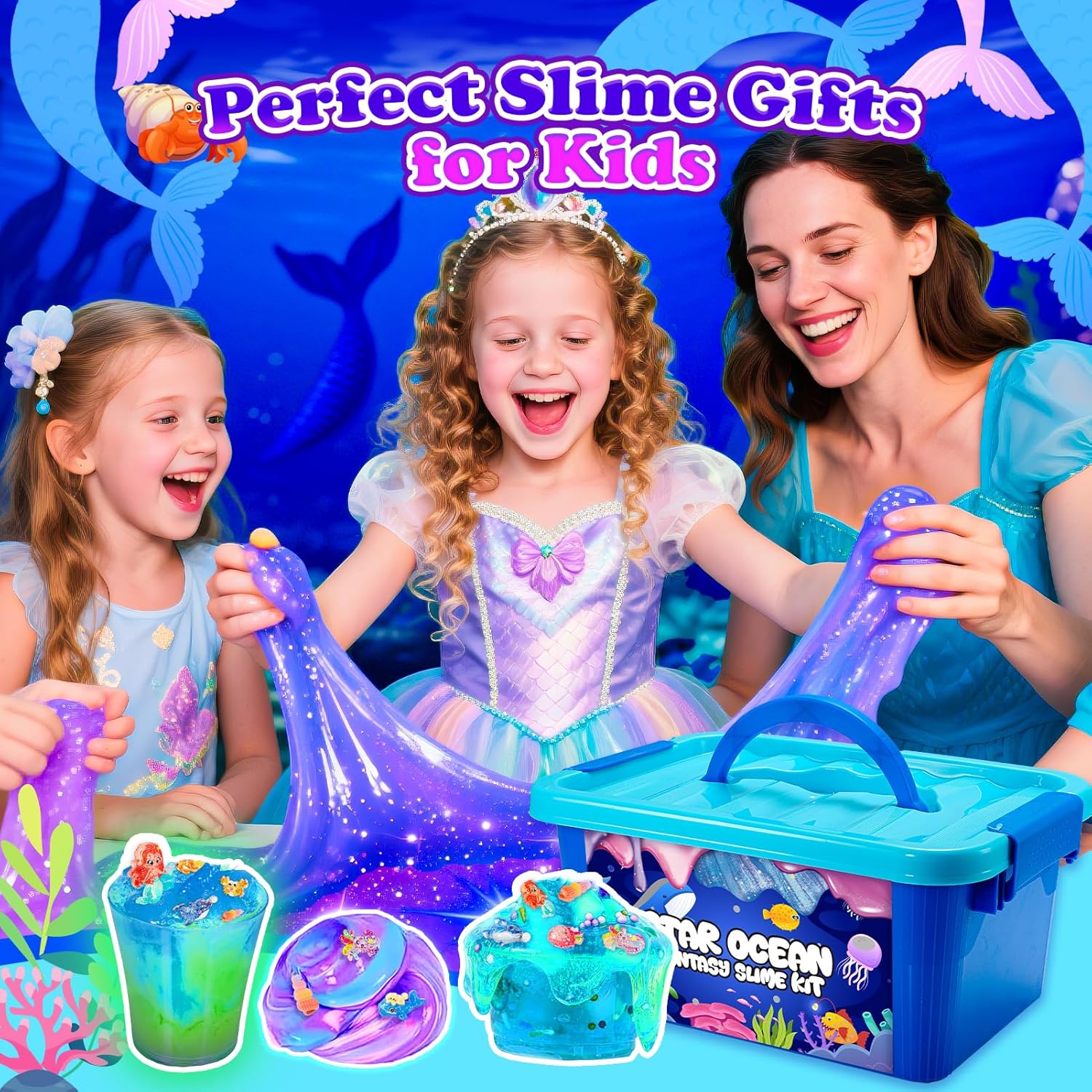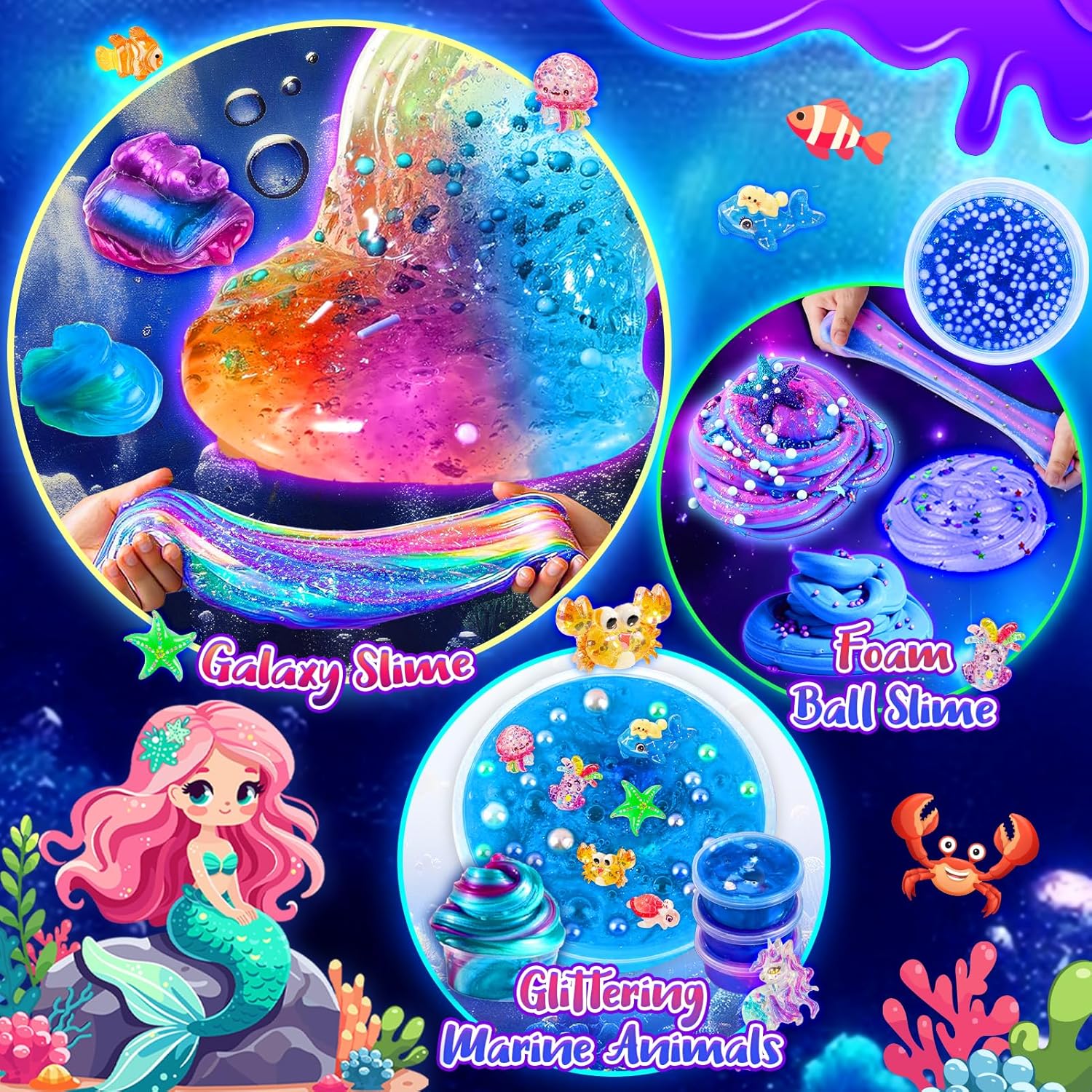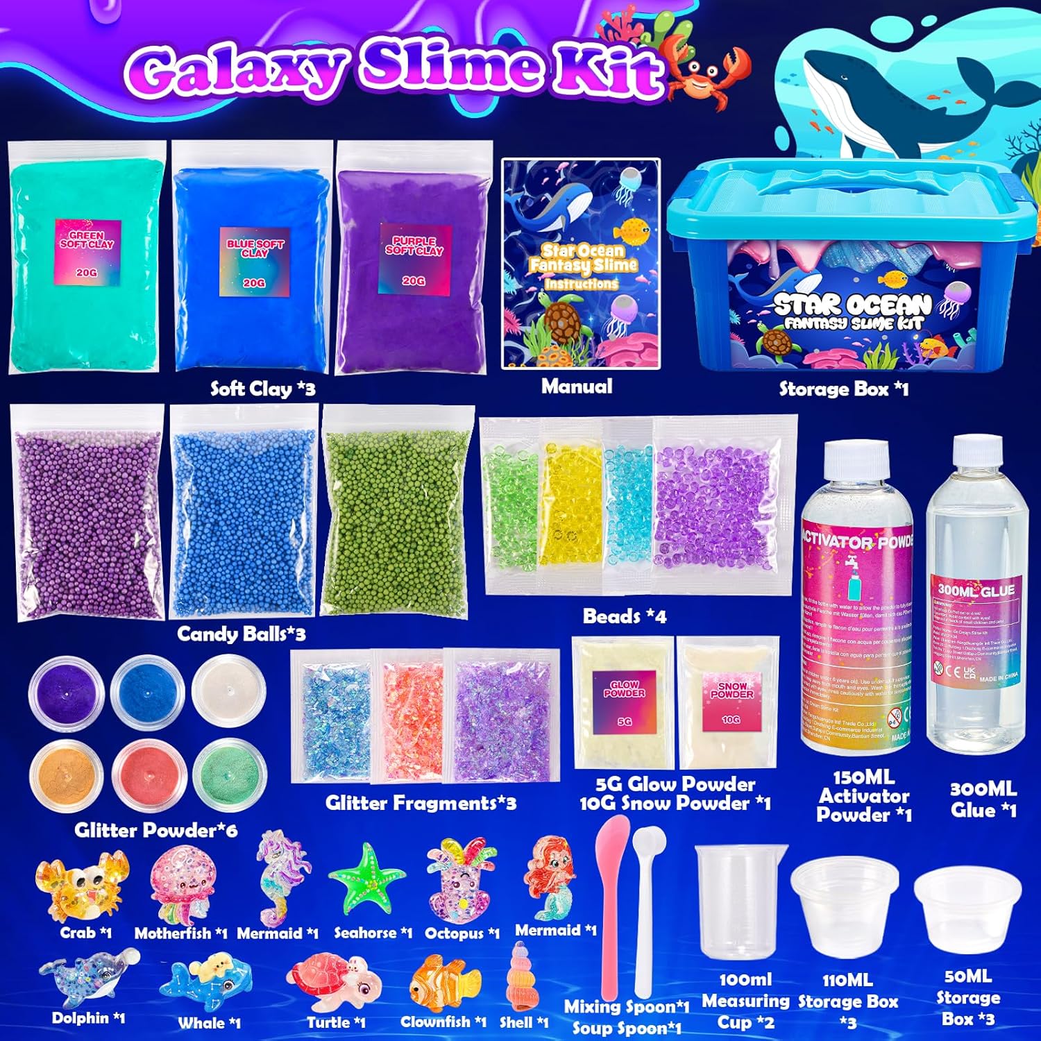 Kit per slime oceanico: questo set Galaxy Slime è a tema con elementi oceanici. Il set di slime contiene: 1 polvere di attivazione, 1 colla, 3 palline di schiuma colorate, 3 palline di carta sminuzzata lucida, 4 perline colorate, 5 g, polvere di neve, 10 g, 6 glitter, 11 graziose decorazioni con animali dell'oceano. I bambini possono usare la loro immaginazione per creare più di 100 tipi di forme fantastiche, colorate e uniche di Ocean-Galaxy Slime, che daranno ai bambini una sensazione sognante Oceano-Galassia. Centinaia di combinazioni di slime: questo set di slime a tema Galaxy Ocean ti consente di creare tutti i tipi di slime per divertimento, come soffice melma burro, melma lucida, melma fluorescente, melma perla, melma oceanica, melma galattica e molto altro ancora. Centinaia di combinazioni di Slime da esplorare. Questo set include un sacchetto di polvere fosforescente, basta aggiungere polvere allo slime e lo slime si illuminerà di verde al buio, è incredibile! Meraviglioso tempo di incollaggio familiare: incoraggiamo genitori e bambini a creare bellissime melme insieme. Genitori e bambini sentiranno gioia e orgoglio quando un bellissimo gelato Slime sarà finito. Quindi questo giocattolo fai da te può migliorare l'interazione e la comunicazione tra genitori e bambini e avvicinarli. Facile e divertente da realizzare: il set di slime a tema galassia oceanica può portare infinito divertimento fai da te al tuo bambino. Gli slime realizzati sono super morbidi e flessibili. Scegli glitter colorati e varie aggiunte per creare slime scintillanti. Quindi decorare con simpatici animali marini e ornamenti a sirena per rendere la melma ancora più sognante e bella. Regalo perfetto per le ragazze: questo set Galaxy Slime è adatto per ragazze di 6, 7, 8, 9, 10, 11, 12 anni, è una scelta regalo perfetta. Adatto per ogni occasione, come regalarlo al tuo bambino come festa di compleanno, Natale, Pasqua, regalo per la festa dei bambini o anche come premio per la scuola o il carnevale, ecc. Se c'è qualche problema di qualità, non esitate a contattarci, lo risolveremo per voi. Divertenti giocattoli antistress: le melme sono morbide e malleabili, puoi spremerle, piegarle, strofinare e allungarle ripetutamente, super antistress e rilassante. Incoraggia i tuoi bambini a fare slime con i loro amici, costruire una profonda amicizia e godersi una divertente festa a tema sirena. Questo è un giocattolo molto divertente per alleviare lo stress. Sicuro, atossico, riutilizzabile: questo slime e accessori per bambini sono realizzati con materiali di alta qualità, sicuri e atossici, più facili da modellare. Il kit per slime è certificato ASTM CE ed è assolutamente sicuro per bambini e adulti! Non consentito mangiato!!! Quando Fluffy Slime non è in uso, rimetti lo Slime nel contenitore ermetico. (Se la melma diventa secca, aggiungere un po 'd'acqua calda) Elegante confezione regalo: il nostro set per slime a tema oceano e galassia è splendidamente confezionato e comodamente conservato con una maniglia per un facile trasporto. Perfetto per bambini e bambine di 6, 7, 8, 9, 10, 11, 12 anni.