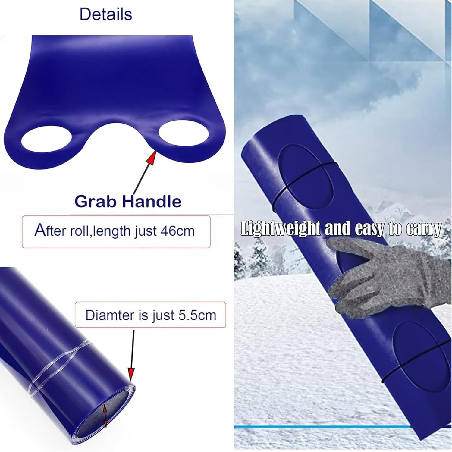 Materiale di alta qualità: realizzato in robusto PE e PP, la nostra slitta arrotolabile garantisce una buona durata e resistenza all'usura, perfetta per un divertimento invernale senza fine Semplice da usare: aprire e regolare la posizione seduta della nostra slitta arrotolabile è un gioco da ragazzi, grazie alle sue maniglie rotonde e al design semplice. Lo troverai facile da impugnare e controllare, senza passaggi complicati Design portatile: con il design leggero e facile da arrotolare della nostra slitta arrotolabile, avrai un'esperienza di slitta stabile. La slitta può essere facilmente riposta e trasportata, rendendola il compagno di viaggio perfetto Molteplici applicazioni: la nostra slitta Roll U p è perfetta per famiglie avventurose. Che si tratti di una giornata in spiaggia o di una collina innevata, questa slitta è progettata per garantire il massimo comfort e sicurezza per i bambini di tutte le età Regalo creativo: regalo ideale: migliora il divertimento invernale della tua famiglia e degli amici con la nostra slitta arrotolabile. Regalo perfetto per compleanni e vacanze, crea un'esperienza unica ed esilarante che non dimenticheranno