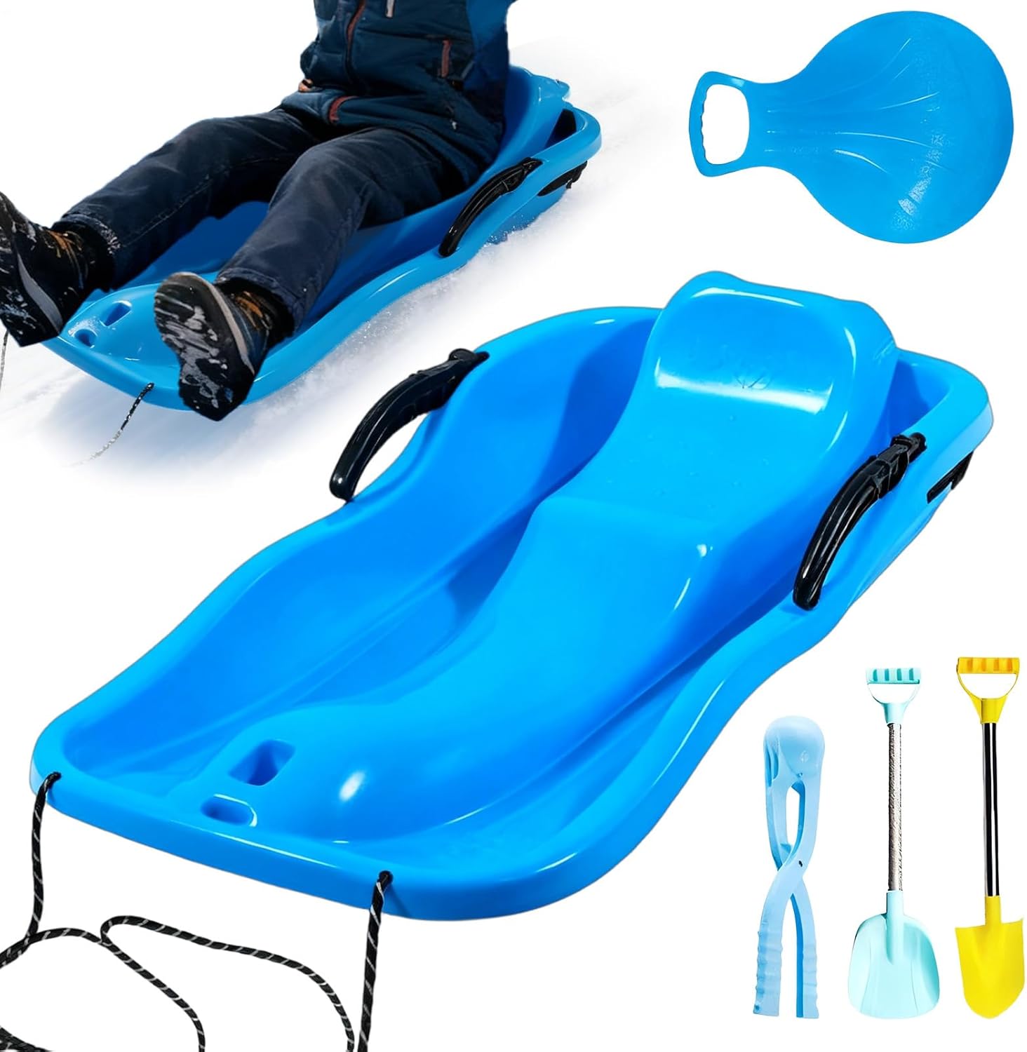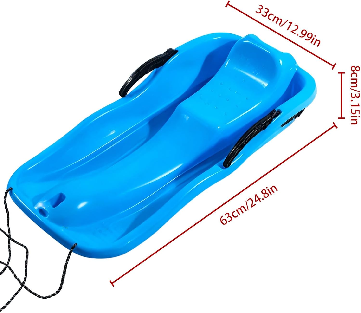 Esperienza versatile con lo slittino: lo slittino consente di scivolare dolcemente su neve, erba e sabbia, migliorando il divertimento all'aria aperta con emozionanti esperienze di velocità nei parchi o nelle spiagge, apprezzate da tutte le età e che ne evidenziano l'adattabilità e l'entusiasmo. Sicurezza e scorrevolezza migliorate: con bordi leggermente arrotondati, questa slitta con maniglia previene graffi e lesioni durante l'uso. Il fondo liscio garantisce un attrito minimo sulle superfici ghiacciate e un'esperienza di scivolamento fluida. Ciò lo rende affidabile e divertente per tutte le età in ambienti innevati e garantisce un divertimento sicuro sullo slittino. Esperienza di guida sicura: dotato di corde di trazione affidabili e maniglie antiscivolo, lo slittino offre maggiore sicurezza per genitori e bambini, rendendo i viaggi sulla neve più piacevoli e senza preoccupazioni. I componenti di alta qualità garantiscono una guida stabile e sicura che consente alle famiglie di esplorare e godersi il paesaggio invernale in tutta sicurezza, mentre le maniglie antiscivolo e le corde da tirare offrono ulteriore comfort. Slitte leggere per il comfort: Le slitte per bambini sono realizzate in materiale particolarmente leggero e compatto, che permette sia ai genitori che ai bambini di trasportarle facilmente e comodamente. Questa funzionalità garantisce un facile stoccaggio nel bagagliaio dell'auto o nelle borse da campeggio ed è ideale per viaggi di famiglia e attività invernali all'aperto. Le dimensioni pratiche e il peso ridotto supportano un trasporto senza problemi e massimizzano il divertimento in ogni avventura sulla neve. Tirare la neve senza sforzo: progettati per il comfort, questi slittini per bambini e adulti sono dotati di una fune di lunghezza ottimale che consente una facile trazione. Abbinati alla forma aerodinamica e al bordo anteriore curvo verso l'alto, garantiscono uno scivolamento stabile e attività all'aperto sicure per tutte le età.