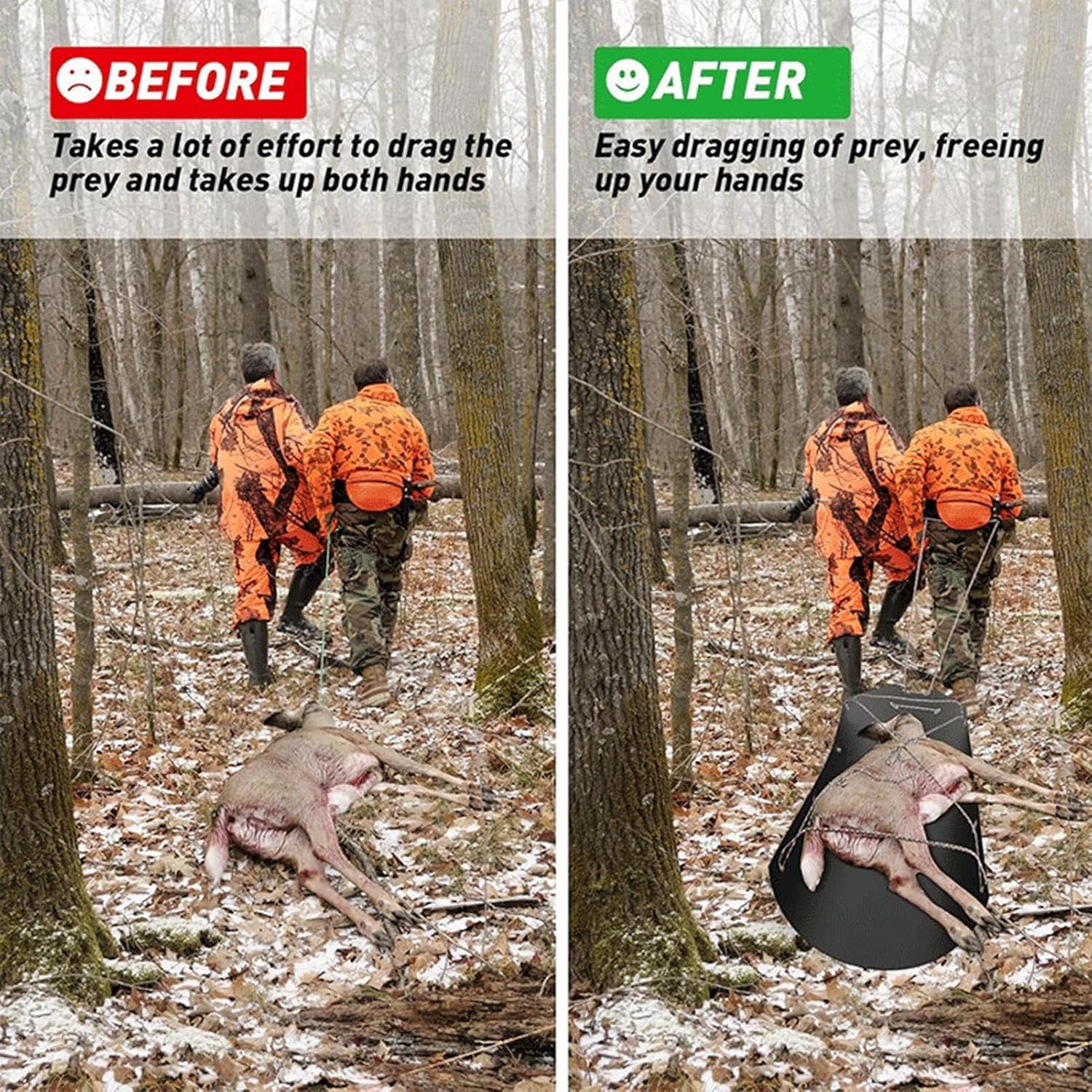 ALTAMENTE DUREVOLE: progettata con polietilene ad alta densità resistente e durevole, questa slitta trainata da cervi ha una capacità di carico superiore per affrontare qualsiasi terreno con facilità. Movimento fluido: con la nostra slitta trainata da cervi, puoi trasportare il tuo gioco senza sforzo su qualsiasi terreno, inclusi neve, ghiaccio e montagne aspre, grazie al suo movimento stabile e senza sforzo. Pulizia intuitiva: Deer Drag Sled ti consente di caricare e scaricare facilmente i giochi. L'aspetto liscio ti consente di scivolare senza sforzo su terreni accidentati e previene intoppi e strappi. Pulire i fili è facile, basta pulirli o asciugarli. MOLTEPLICI FUNZIONI: porta il tuo gioco di trasporto all'aperto al livello successivo con questa versatile slitta. Che tu stia trasportando cervi, alci, legna da ardere, articoli per il giardinaggio o altro, questa slitta per carichi pesanti è in grado di gestire tutto. Di' addio ai trasporti faticosi e ora puoi muoverti senza fatica su qualsiasi terreno. Ampia applicazione: trascinare alci, cervi e altri animali selvatici non è mai stato così facile con questa slitta trainata da cervi. Ampiamente utilizzato per la pesca sul ghiaccio e come attrezzatura da pesca, è ideale anche per il trasporto di legna da ardere e altri attrezzi da esterno. È un articolo indispensabile per le attività all'aperto in quanto può essere utilizzato per molti scopi.