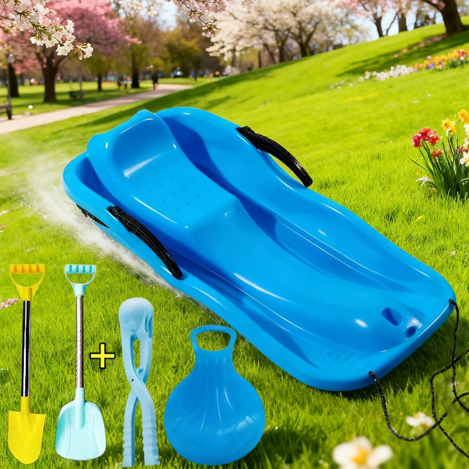 Emozionante flessibilità del terreno: progettata per neve, erba e sabbia, la tavola da slitta garantisce una corsa veloce e divertente che migliora il divertimento all'aria aperta e crea momenti indimenticabili, sia scivolando attraverso i sentieri del parco o accelerando sui pendii sabbiosi della spiaggia. Sicurezza e prestazioni di scivolamento migliorate: questa slitta con maniglia presenta bordi arrotondati che prevengono graffi durante l'uso e una base liscia che garantisce un attrito minimo sulle superfici ghiacciate. Offre un'esperienza di slittino affidabile e divertente per tutte le età in ambienti innevati. Esperienza di guida sicura: dotato di corde di trazione affidabili e maniglie antiscivolo, lo slittino offre maggiore sicurezza per genitori e bambini, rendendo i viaggi sulla neve più piacevoli e senza preoccupazioni. I componenti di alta qualità garantiscono una guida stabile e sicura che consente alle famiglie di esplorare e godersi il paesaggio invernale in tutta sicurezza, mentre le maniglie antiscivolo e le corde da tirare offrono ulteriore comfort. Slitte compatte e portatili: queste slitte per bambini sono appositamente progettate per essere leggere e poco ingombranti, quindi si adattano facilmente a qualsiasi bagagliaio, armadietto o zaino da campeggio. La facilità di trasporto e stoccaggio è supportata in modo ottimale dal peso ridotto e dal design compatto. La loro eccellente portabilità consente alle famiglie di portare facilmente le slitte con sé durante i viaggi invernali, i picnic in campeggio o altre avventure all'aria aperta che richiedono divertimento e comfort. Tirare la neve senza sforzo: progettata per comodità, la slitta per bambini e adulti è dotata di un cordino di lunghezza ottimale per una facile trazione. Abbinato alla forma aerodinamica e al bordo anteriore curvo, garantisce uno scorrimento stabile e attività all'aperto sicure per tutte le età.
