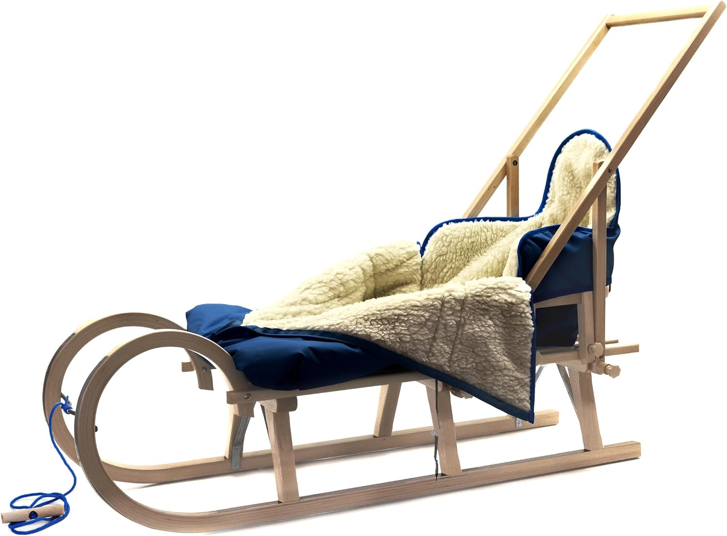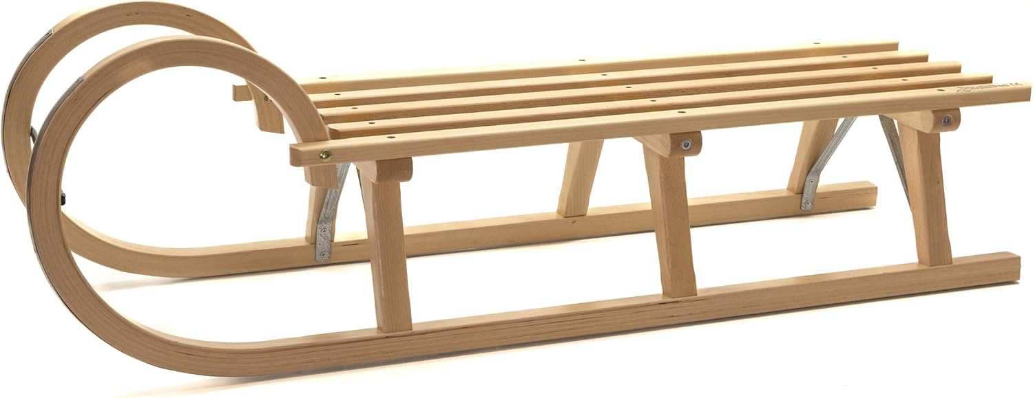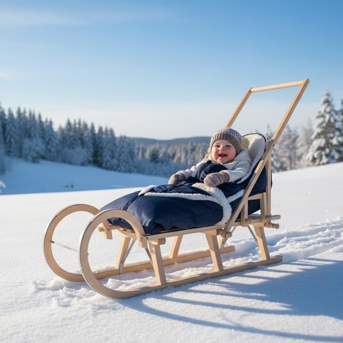 Slitta per il tempo libero per neonati, bambini e famiglie Lunghezza del sistema: 120 cm Pattini in compensato di faggio / doghe in legno duro di faggio verniciato Incluso nel set: morbido coprigambe, modello Alaska, prezzo secondo le specifiche del preventivo. Schienale speciale in legno di faggio per coprigambe Alaska. Spingitore in legno di faggio con regolazione in altezza a stadio singolo per spingere la carrozzina, come un passeggino. È incluso anche un guinzaglio per tirare. Dimensioni della slitta, senza accessori: lunghezza 118 cm / larghezza 33,5 cm / altezza 36 cm