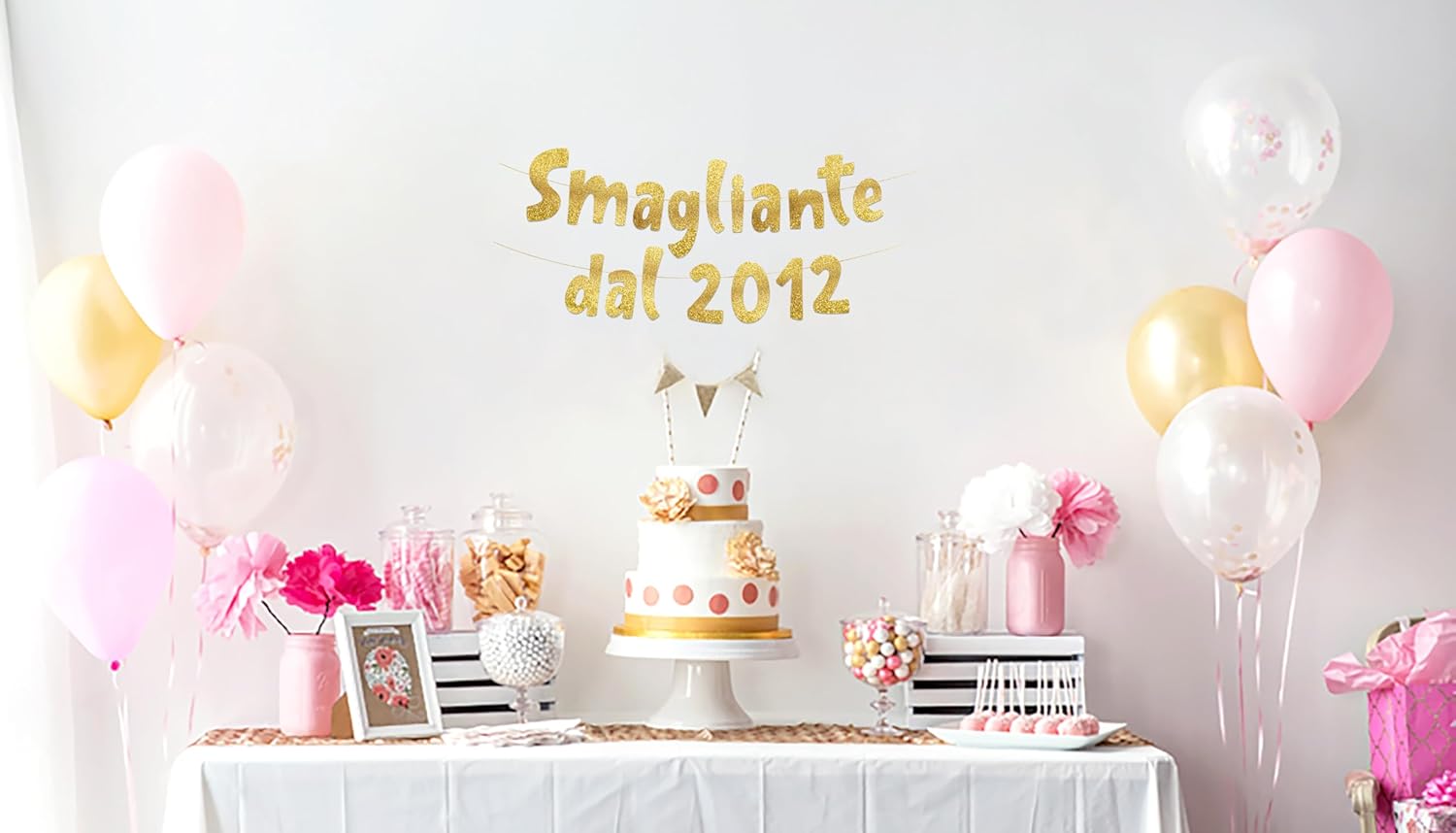 STRISCIONE PRE-INCORDATO Congratulazioni per i 40 anni di eccellenza! Questo striscione con glitter dorati è la decorazione perfetta per aggiungere un tocco di classe e dare il benvenuto ai tuoi ospiti per l'occasione. DIMENSIONI: Lo striscione è piccolo e misura circa 1,3 m. Ottimo da appendere sopra un tavolo da dessert o una mensola del camino. QUALITÀ: Questo striscione è robusto ma non pesante e può essere riutilizzato.