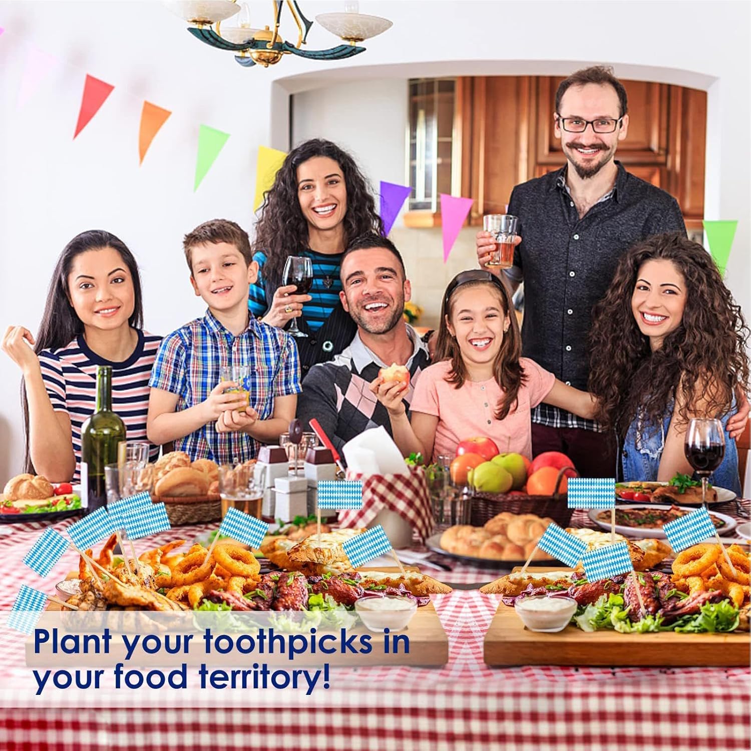 Festive Oktoberfest Theme: These mini toothpick flags feature classic Bavarian designs perfect for adding a festive touch to your Oktoberfest parties, enhancing the look of cupcakes, appetizers, cocktails, and charcuterie boards with authentic seasonal 100 Pieces Included: This set includes 100 paper toothpick flags, providing ample quantity for parties, events, and gatherings, ensuring you have plenty of decorative toppers to add charm to your food and drink presentation during autumn celebrations Compact & Lightweight: Measuring about 6.5x2.5x3.5cm, each toothpick flag is perfectly sized to fit cupcakes, appetizers, and cocktail garnishes without overpowering your dishes while adding a subtle decorative accent that guests will appreciate Versatile Usage: These mini flags are ideal for a variety of uses including cupcake toppers, cocktail garnishes, party appetizers, and charcuterie boards, making them perfect for Oktoberfest, fall parties, yard gatherings, and dining events Quality Paper Material: Made from paper, these toothpick flags are sturdy enough to hold up during parties while being lightweight and easy to insert into various foods and drinks, providing a hassle-free decoration solution